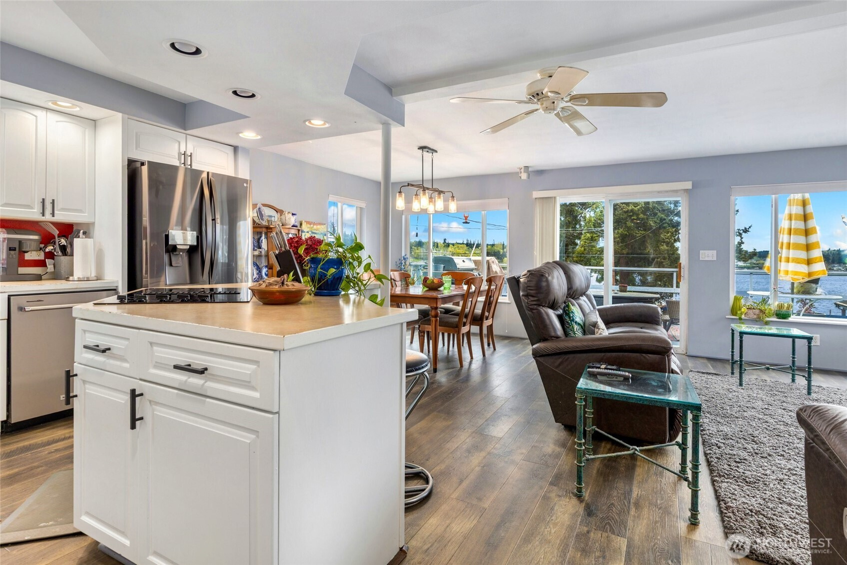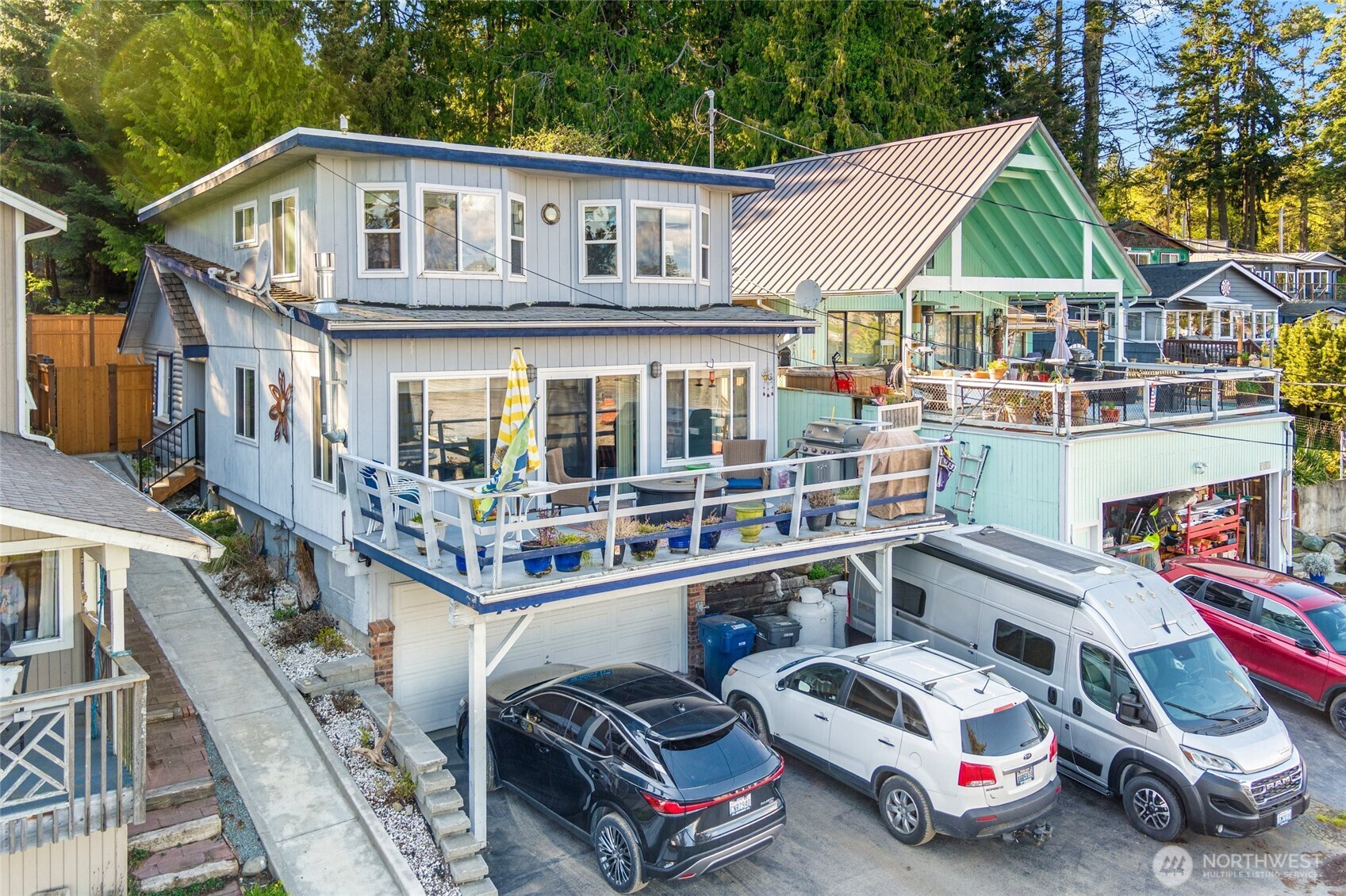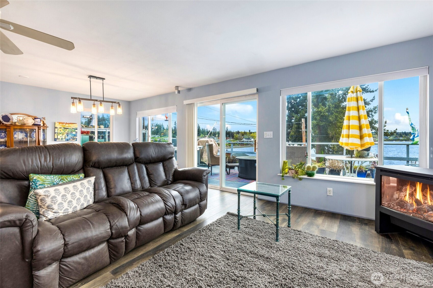 Experience refined coastal living, without the waterfront price. Located on Tulalip Tribes' leased land with a desirable Fryberg lease, this beautifully maintained 3-bed, 2-bath home captures sweeping water and mountain views in a sought-after waterfront community. Beaches are just steps away, offering effortless access to sunset strolls and the relaxed rhythm of PNW waterfront living. An expansive deck invites you to unwind or entertain while taking in the views, or head to your reserved private dock space (up to a 24’ boat) for just $300/year, perfect for boating, fishing, and making the most of summer on the water. Inside, the home features a light-filled open layout with a refreshed kitchen, updated appliances, new laminate wood flooring, new carpet, and a cozy propane fireplace. A main-level bedroom offers flexibility, while two additional upstairs bedrooms showcase stunning views, all complemented by the home's seamless indoor-outdoor living. Additional highlights include a 2-car garage with shop space and a ½ bath, ideal for hobbies or cleaning your catch of the day! Thoughtful exterior updates include new poured concrete walkways, a back patio, and low-maintenance turf lawn.Current lease is just $3,875/year, offering a rare opportunity to enjoy a water-focused lifestyle at an approachable price point. Buyer will typically receive a new 25-year lease with a 25-year renewal option (rate to be determined). Cash purchase required.