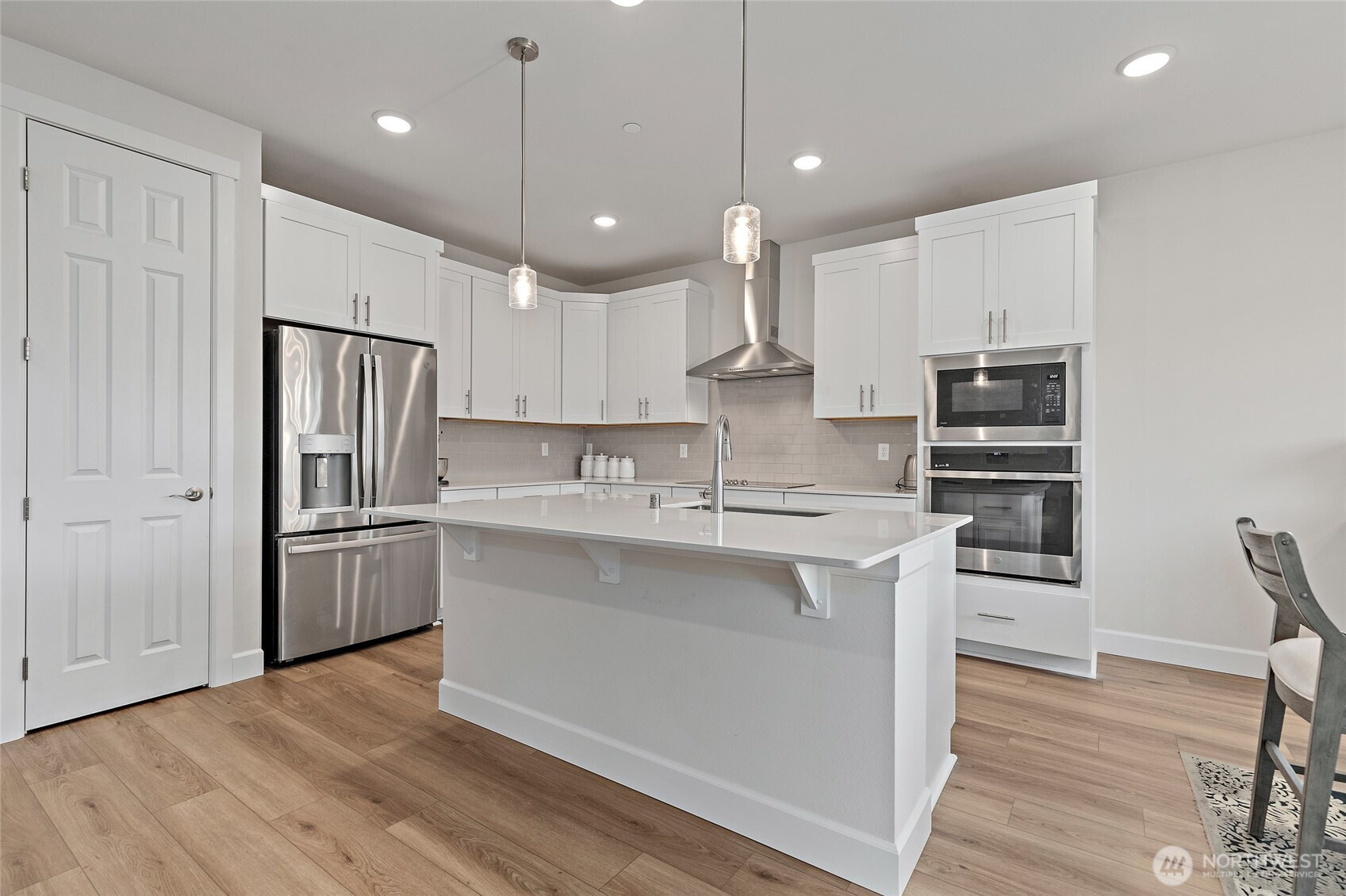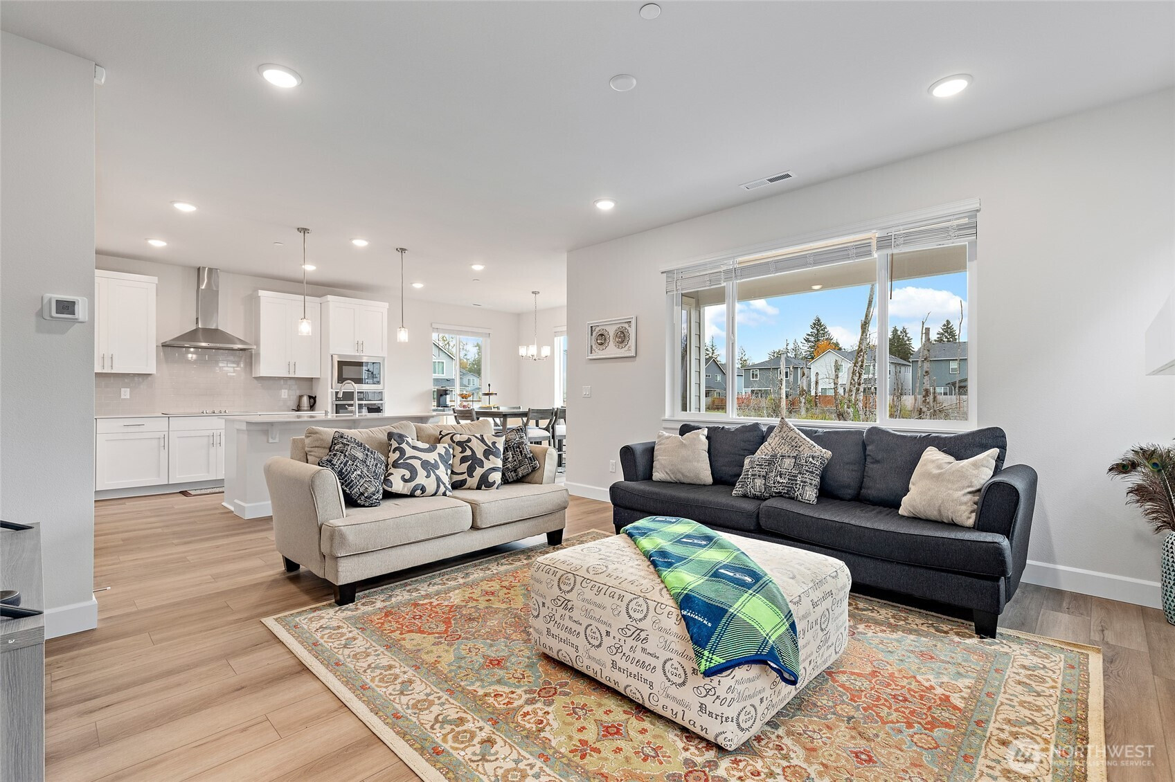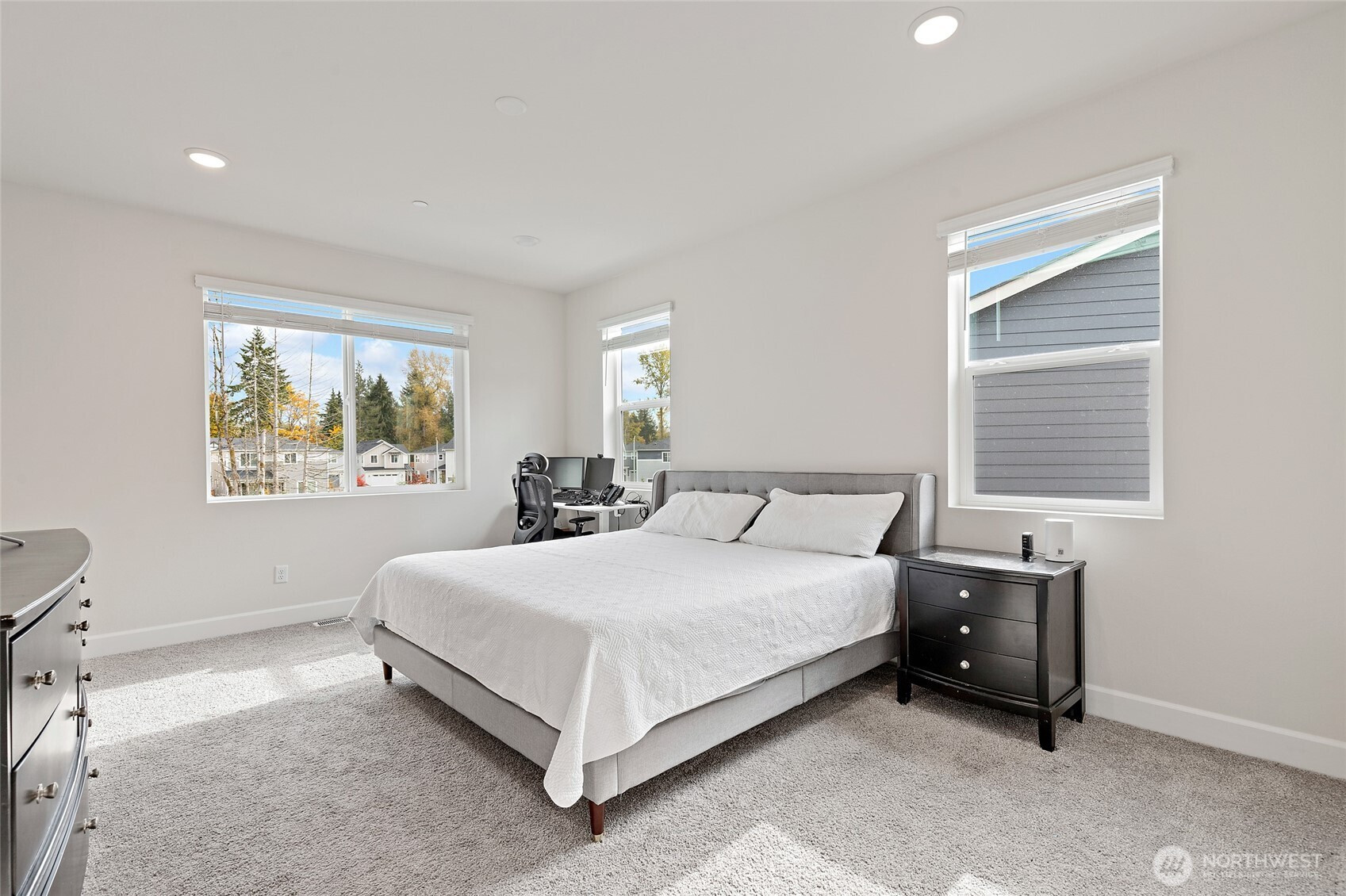 Discover the perfect blend of sophistication and comfort in this beautifully designed Alderview home. The open-concept main level showcases soaring 10-foot ceilings and 9-foot doors, creating an airy, modern feel. A chef’s kitchen flows into a bright great room and dining area—perfect for entertaining. A main-floor bedroom with ¾ bath adds flexibility for guests or a home office. Upstairs, unwind in the luxurious primary suite with spa-like bath and walk-in closet, alongside spacious secondary bedrooms—one with its own ensuite. Overlooking the open green space in front, this home offers privacy, curb appeal, and tranquility.