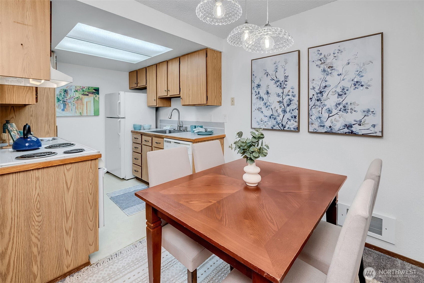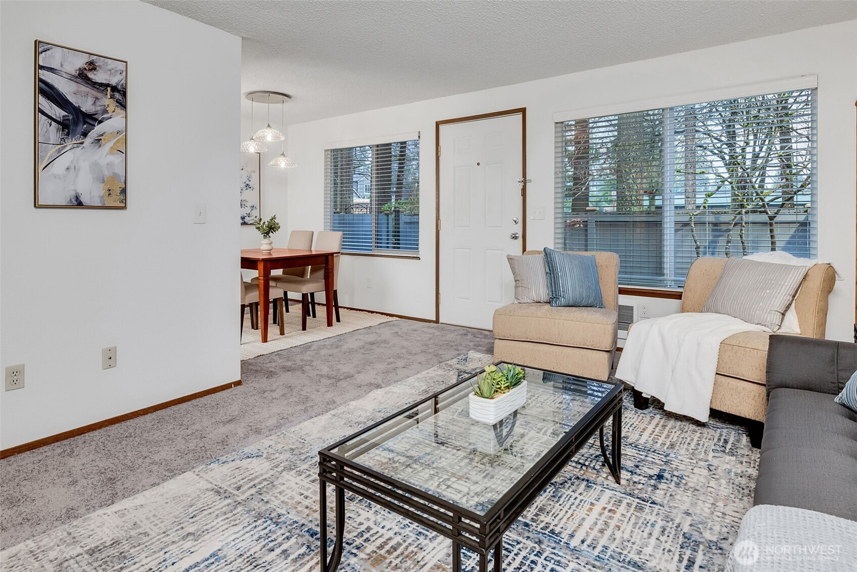 Move-in ready ground-floor end-unit condo in Edmonds! This well-designed 1-bedroom, 1-bath home offers exceptional storage with two walk-in closets plus an additional broom/storage closet. Fresh interior paint and brand-new carpet! The open dining area flows seamlessly into the living room, creating a comfortable and functional layout ideal for everyday living or entertaining. Enjoy easy front-door access with just two steps, a private patio garden area for outdoor relaxation, and conveniently located reserved parking, with visitor parking available. The well-maintained community features a newer roof, low HOA dues, and no special assessments. Prime location just minutes from Edmonds’ vibrant downtown waterfront, Kingston Ferry, Edmonds College, local golf course, and an abundance of nearby grocery stores, restaurants, and bars—everything you need right at your doorstep.
