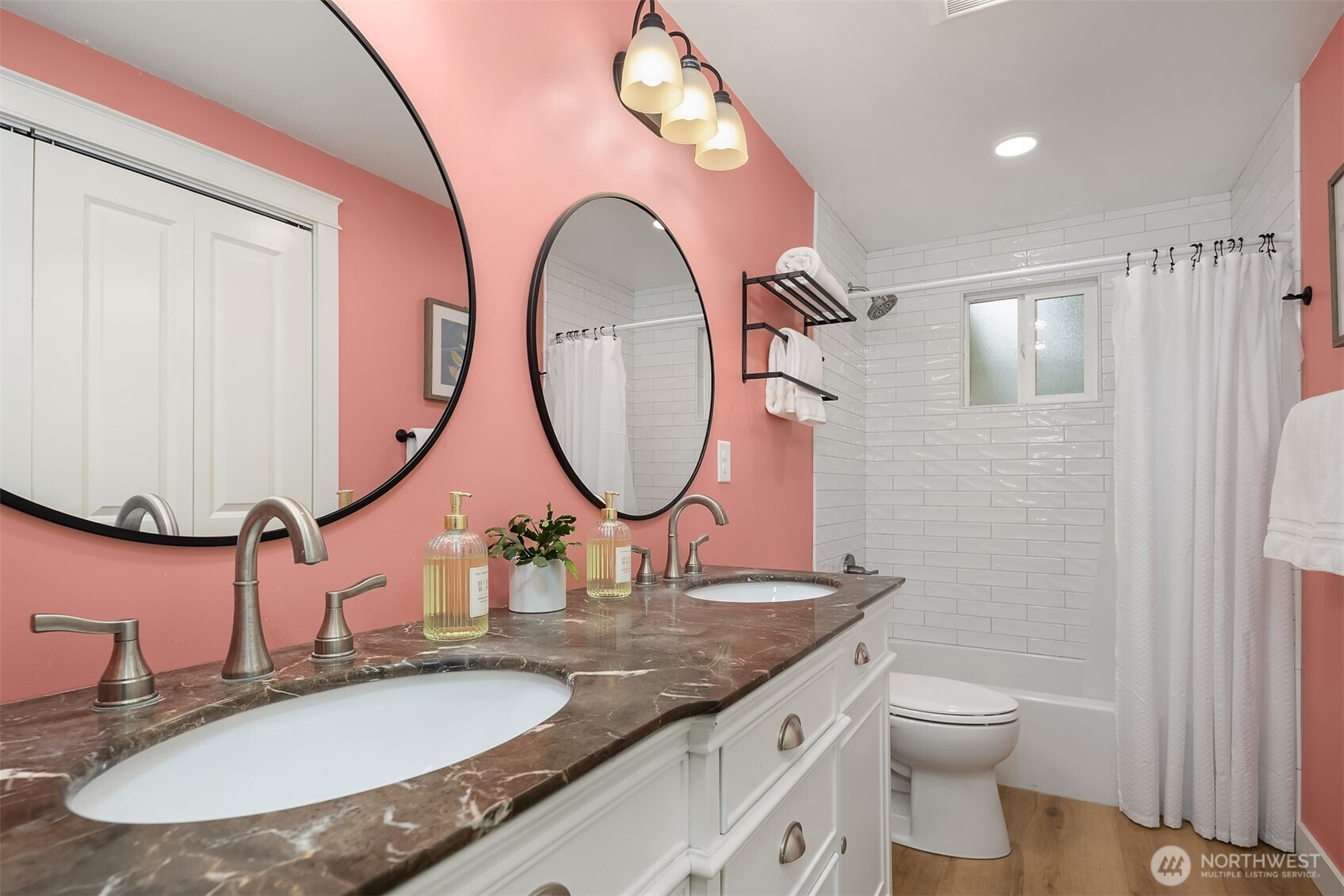 Finally, a home that's ready to move right in! The sellers put $230K into the remodel completed in 2024. The Edmonds Way Getaway is a peaceful retreat near all the waterfront town has to offer. Ideal single level layout: primary suite on one end, large gathering spaces, & another 3 beds, full bath on the other. Great southwest light with fully fenced backyard that's a PNW dream. Makes a great full-time residence and is zoned BP, which opens commercial opportunities. A circle driveway makes access easy & the double lot offers room for an entire parking lot. Want a space to build a large shop or DADU? This level lot is the perfect spot. Convenient location a mile from the waterfront/ferries. Short walk to PCC, restaurants, & bus lines.