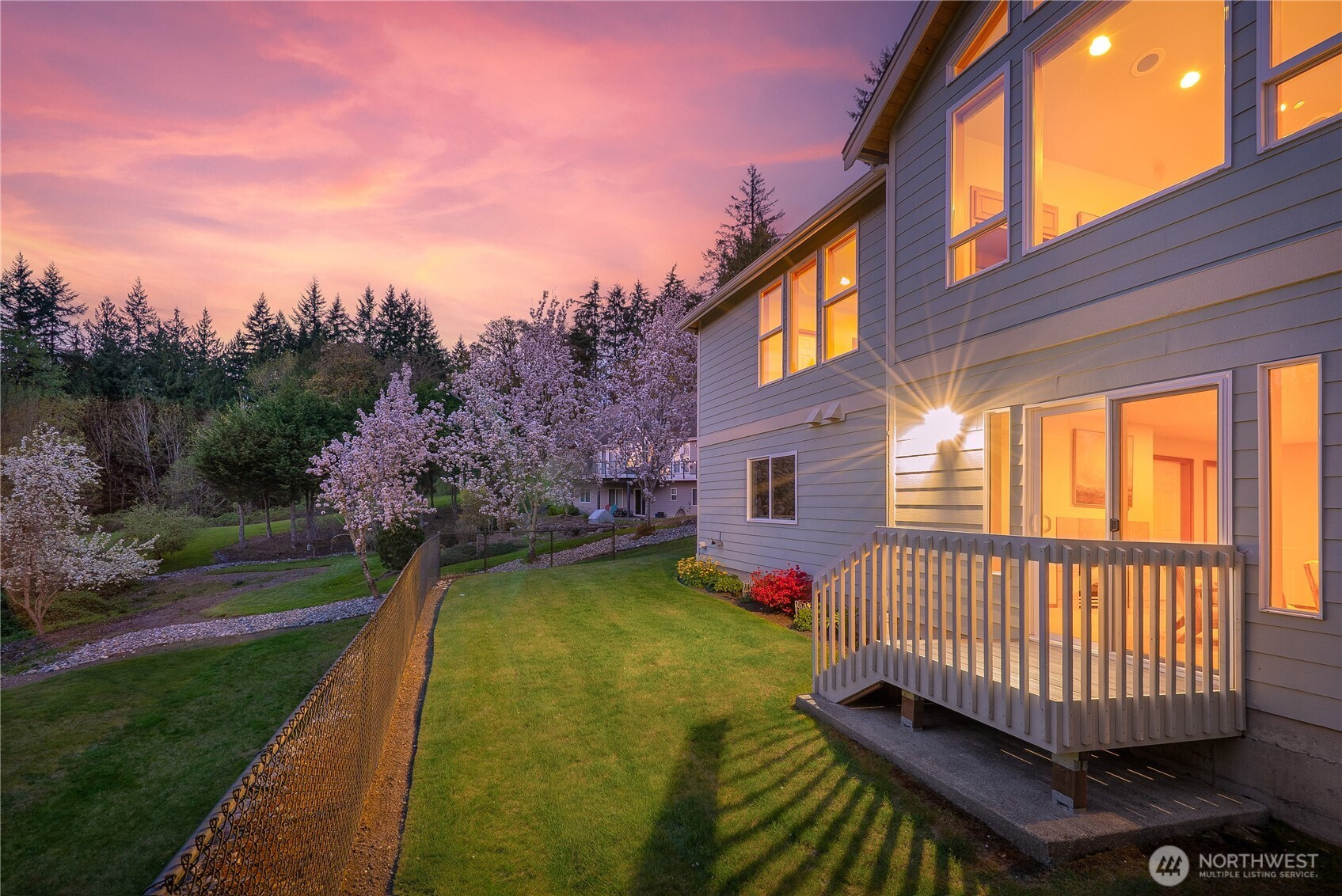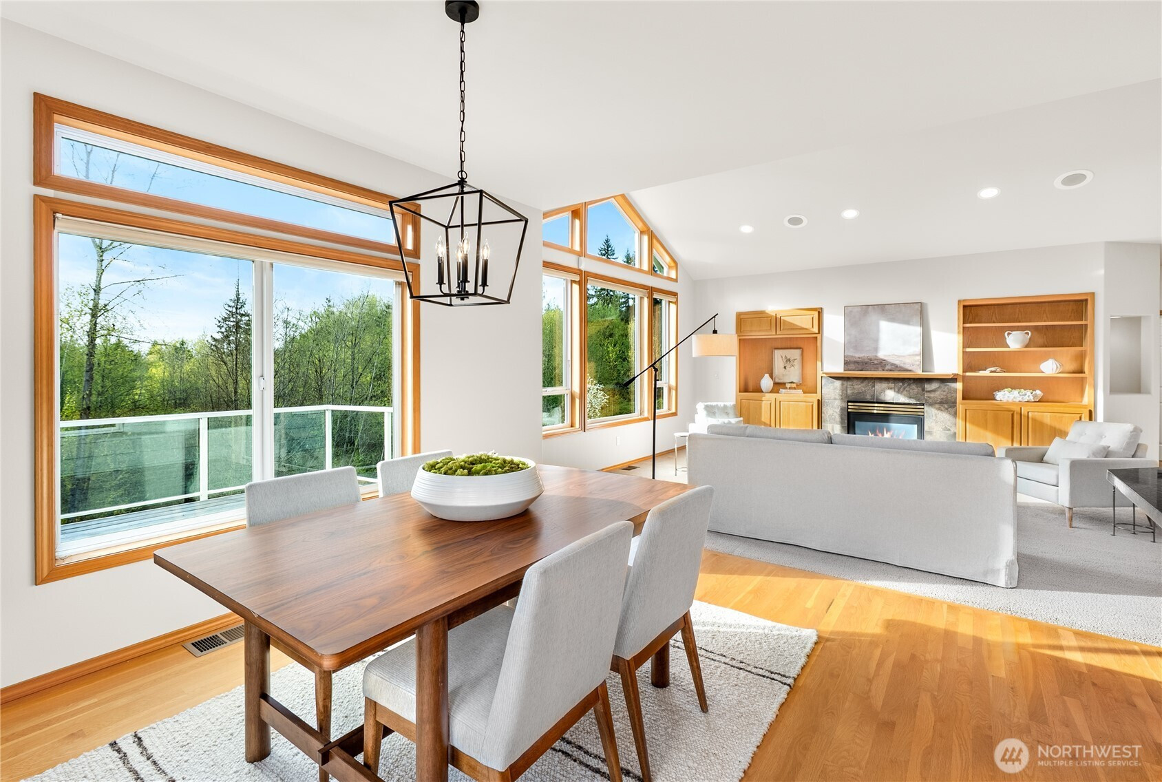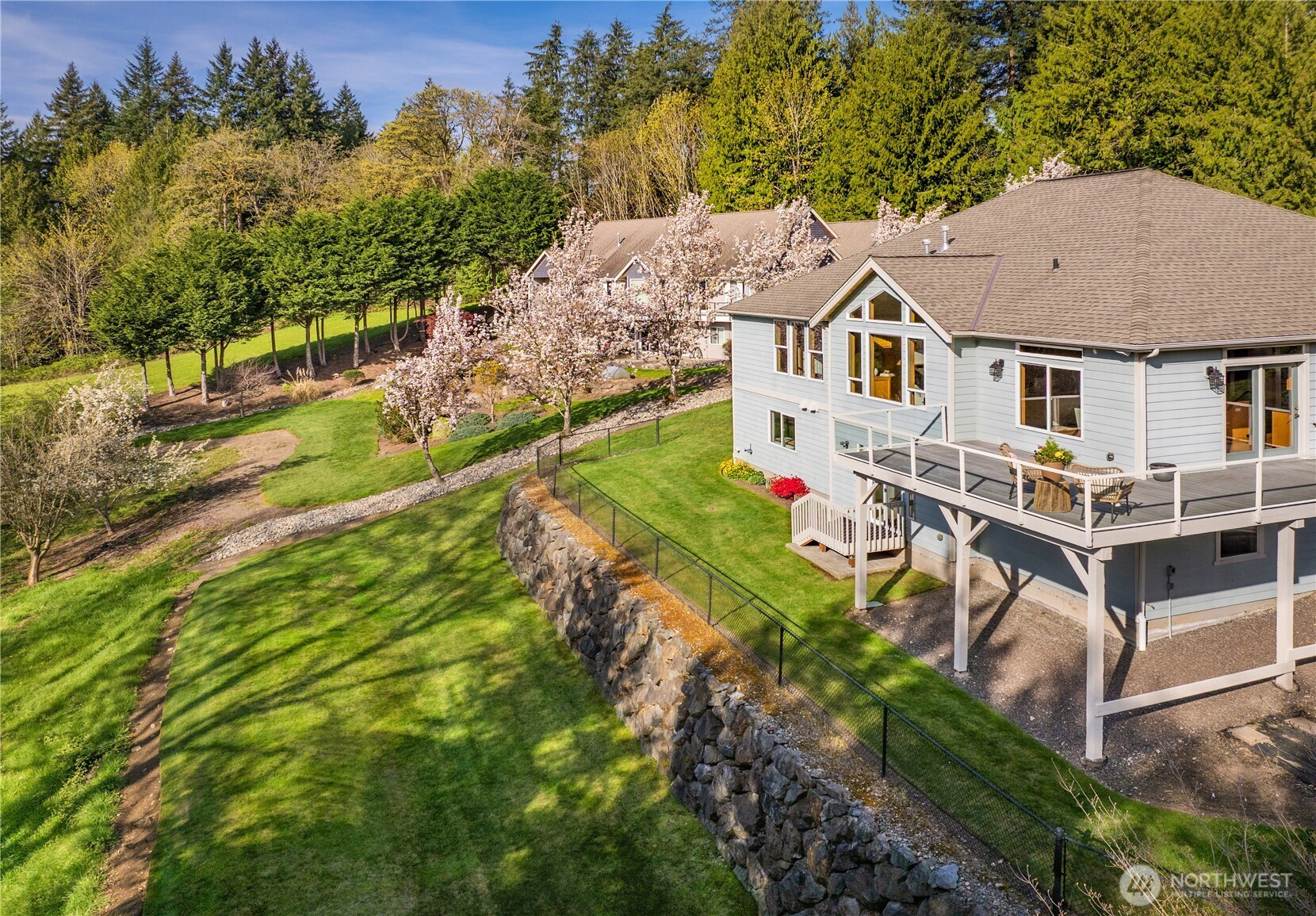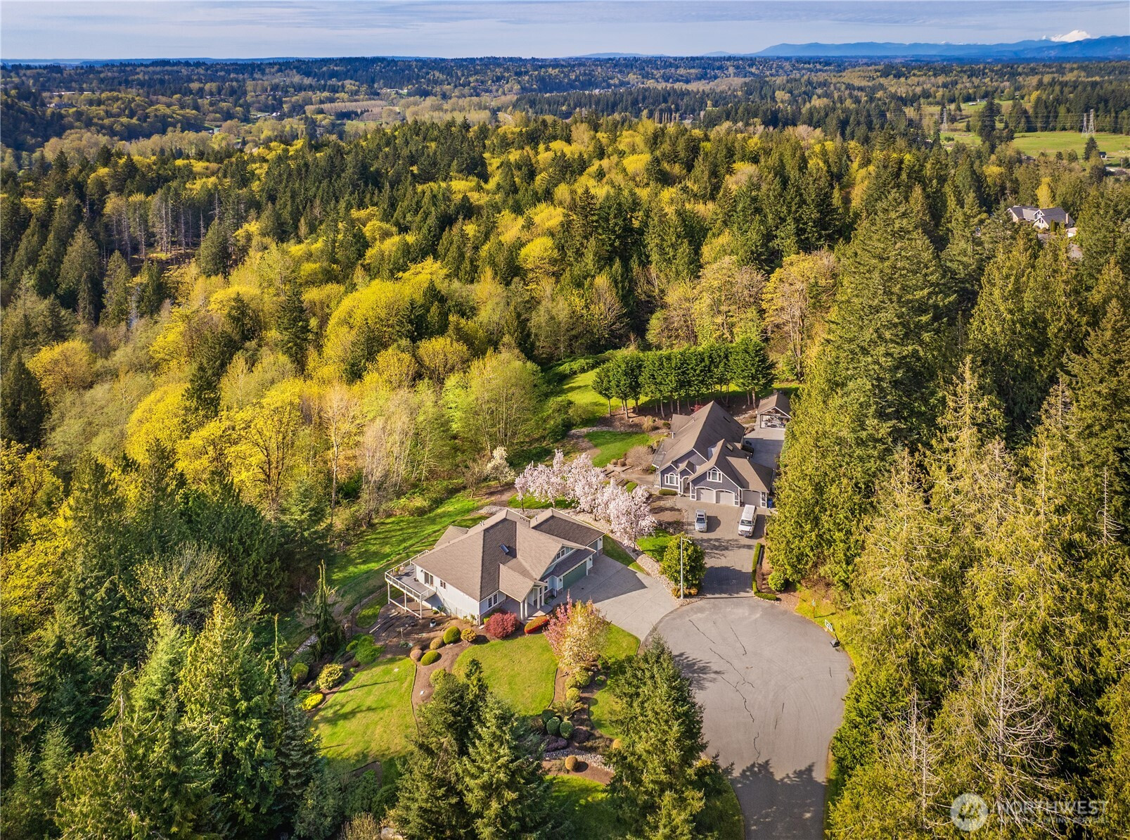 [SNOHOMISH'S BEST KEPT SECRET] Perched at the private end of a quiet cul-de-sac in coveted Lobo Ridge, this impeccably maintained, one-owner rambler with daylight basement is a rare find. Mature landscaping, a pristine yard, and a greenbelt backdrop set the tone for the privacy and serenity that define this home. Inside, soaring vaulted ceilings, rich hardwood floors, and generous natural light frame breathtaking territorial views. The open-concept kitchen, dining, and living flow effortlessly to an expansive deck — perfect for entertaining. The primary suite is spacious and complete with a luxurious bathroom retreat. A dedicated office adds flexibility. The daylight lower level offers a sprawling family room with fireplace, full bathroom, and large bedroom — an ideal multi-generational setup. The oversized three-car garage is impressive on its own, but an additional attached garage with lower level access delivers the ultimate bonus: A workshop, private gym, or the perfect home for your collector car. Minutes from Hwy 2, downtown Snohomish, and top-rated Snohomish schools. Central A/C, sprinkler system, and ample parking complete this exceptional offering. [SEE IT FIRST]