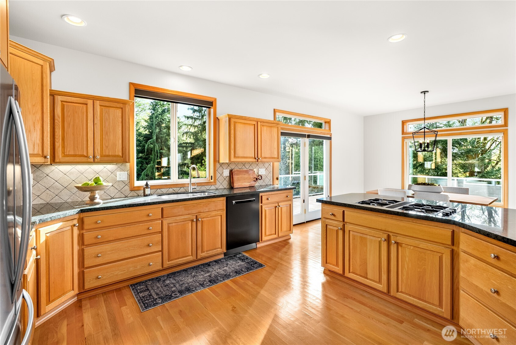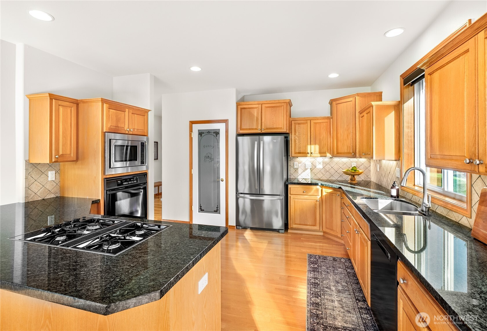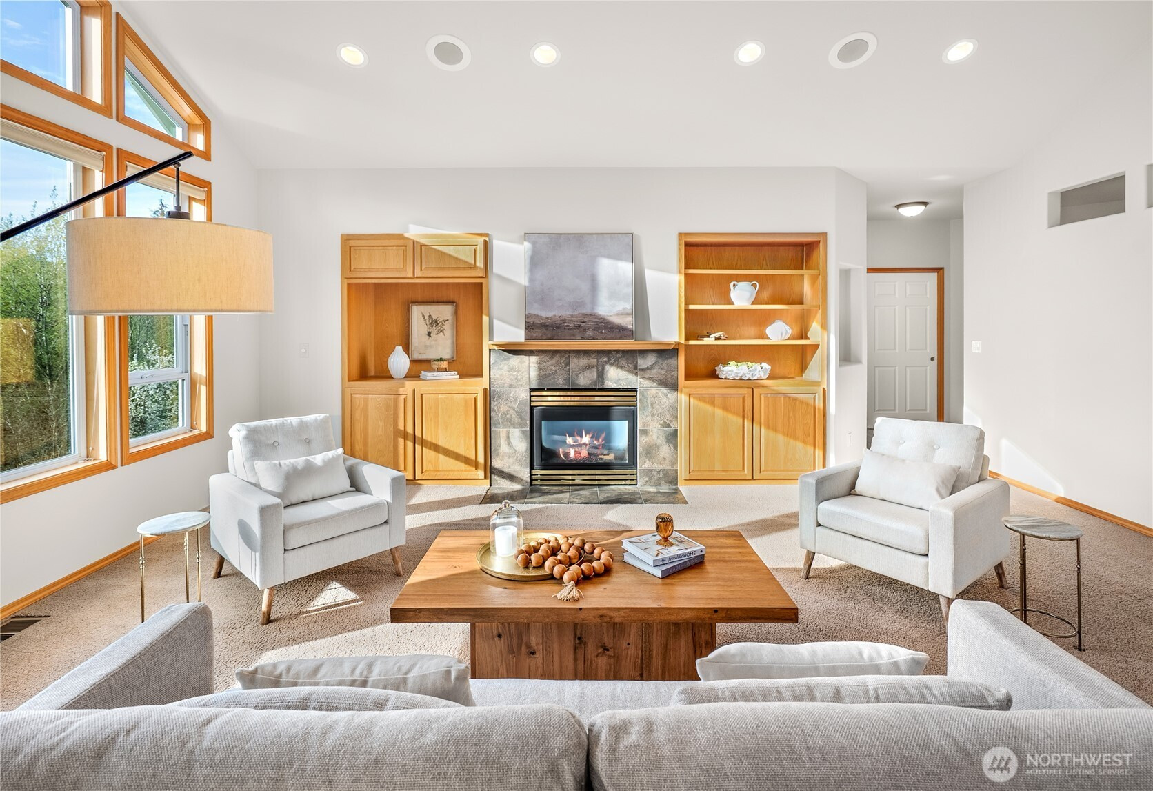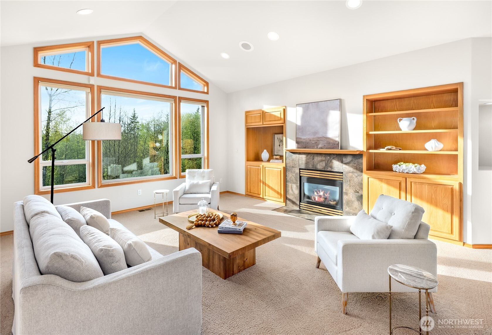 [SNOHOMISH'S BEST KEPT SECRET] Perched at the private end of a quiet cul-de-sac in coveted Lobo Ridge, this impeccably maintained, one-owner rambler with daylight basement is a rare find. Mature landscaping, a pristine yard, and a greenbelt backdrop set the tone for the privacy and serenity that define this home. Inside, soaring vaulted ceilings, rich hardwood floors, and generous natural light frame breathtaking territorial views. The open-concept kitchen, dining, and living flow effortlessly to an expansive deck — perfect for entertaining. The primary suite is spacious and complete with a luxurious bathroom retreat. A dedicated office adds flexibility. The daylight lower level offers a sprawling family room with fireplace, full bathroom, and large bedroom — an ideal multi-generational setup. The oversized three-car garage is impressive on its own, but an additional attached garage with lower level access delivers the ultimate bonus: A workshop, private gym, or the perfect home for your collector car. Minutes from Hwy 2, downtown Snohomish, and top-rated Snohomish schools. Central A/C, sprinkler system, and ample parking complete this exceptional offering. [SEE IT FIRST]