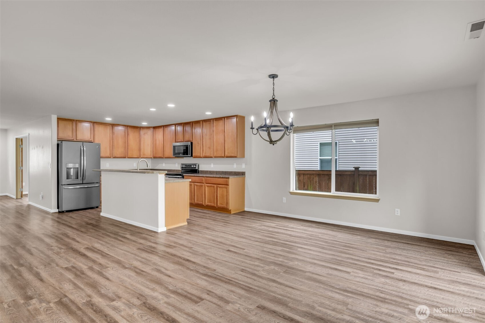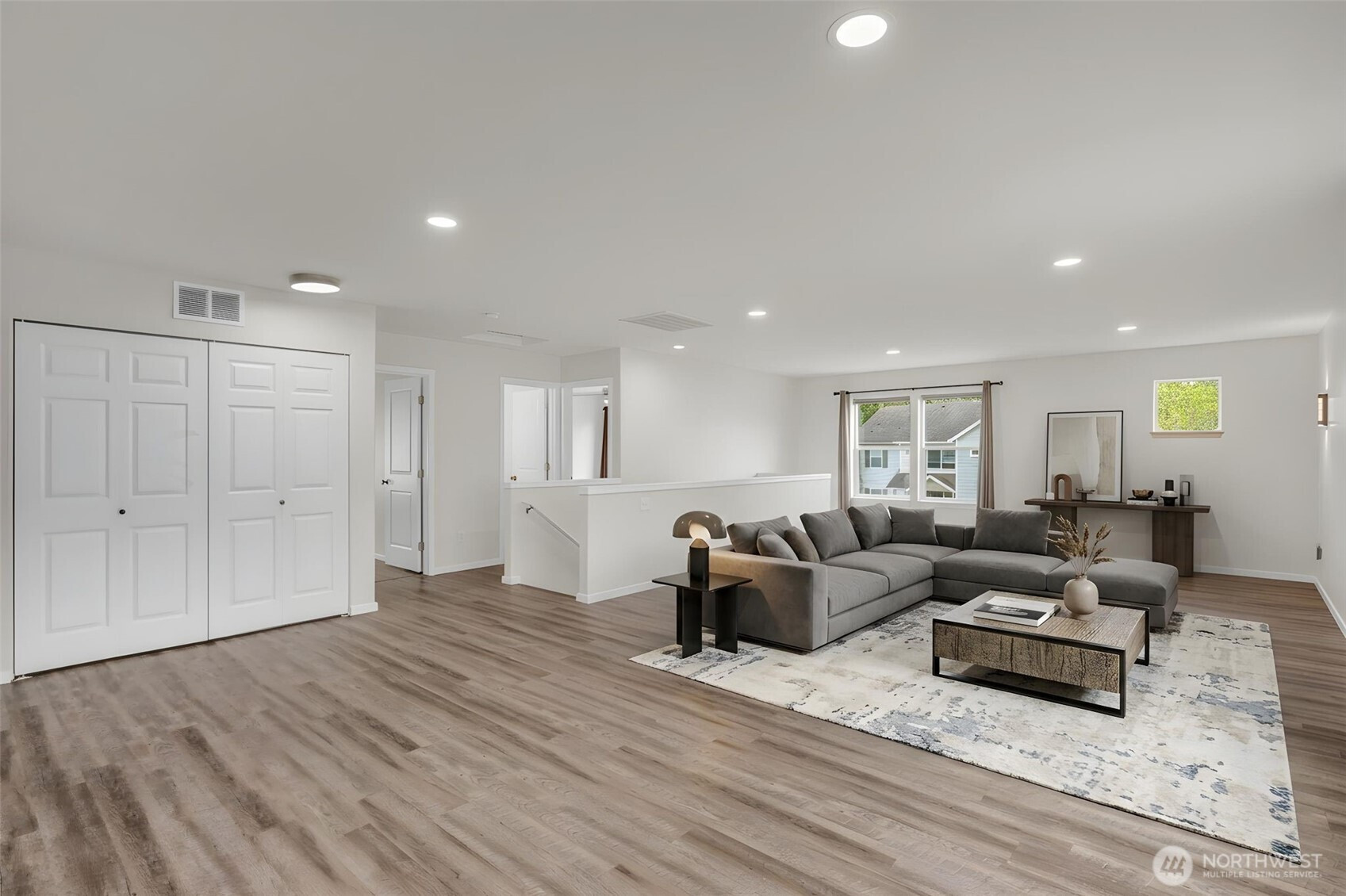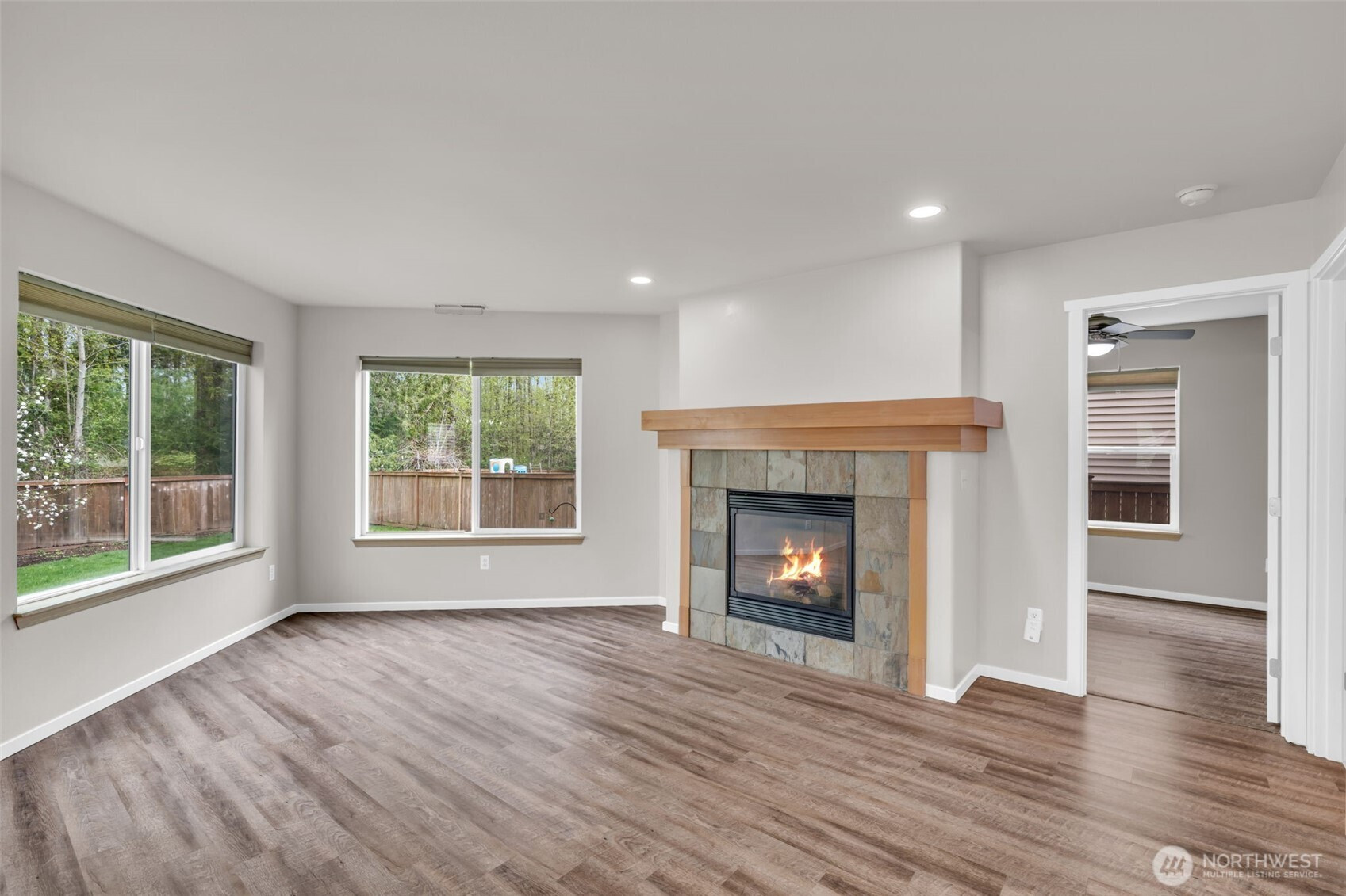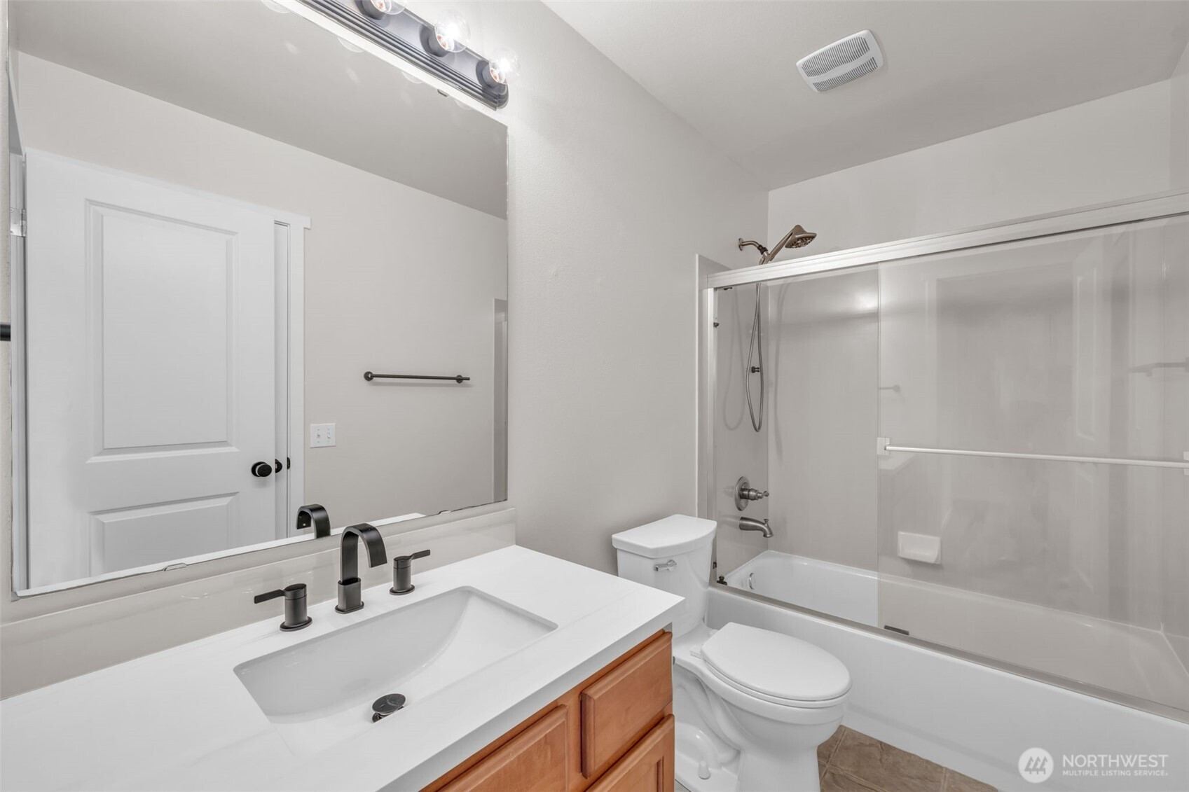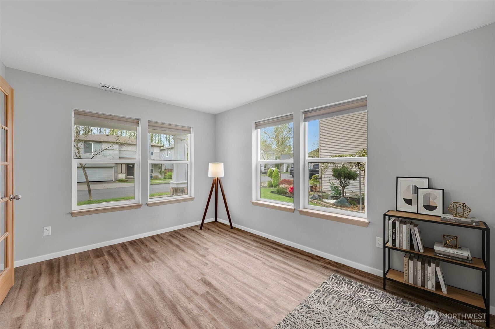 Graced with bright, open & functional spaces this home is sure to please. Covered porch greets guests entering the home w/LVP flooring throughout. Main level includes large kitchen with all appliances, bar-island & loads of counter space, open dining & great room with fireplace & slider access to a beautiful fully fenced backyard with patio, matured landscaping that backs to a greenspace. Main level also includes a bedroom with an attached bath & office with French doors. Upstairs offers a huge family room, spacious primary bedroom with sitting area, & large updated walk-in en-suite bath. 2 additional bedrooms, full bath & laundry room complete the package. All bedroom includes walkin closet. 2 car garage with storage. Brand new roof, easy commuting options, & nearby shopping. Embrace an active or relaxed lifestyle in a welcoming community that features a neighborhood park perfect for evening strolls, and easy bike access to the Centennial Trail. You will also enjoy ultimate comfort with schools, transit lines, golf courses, and dining mintues away.