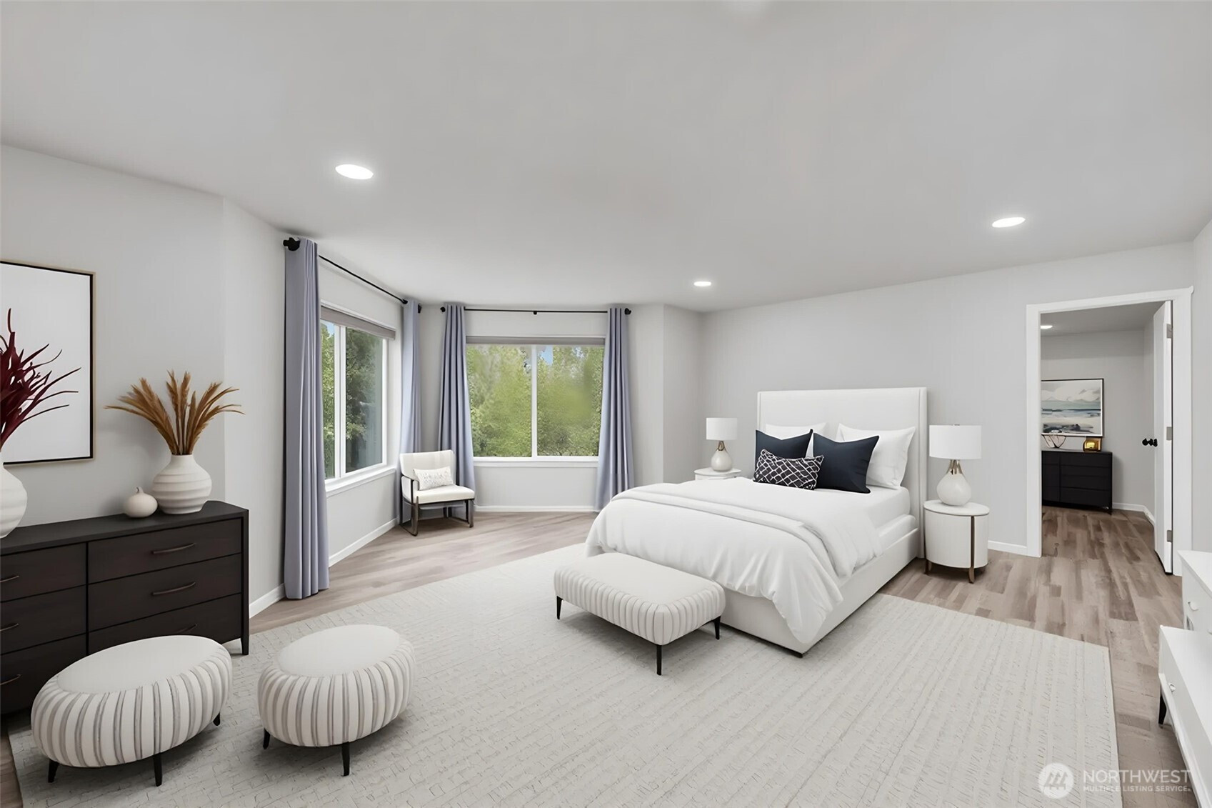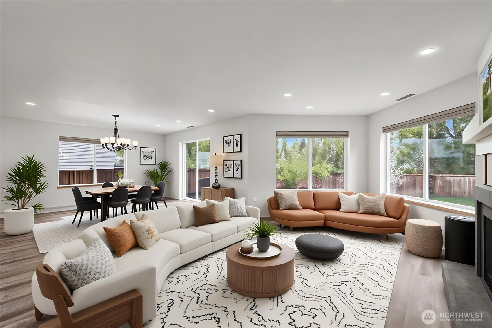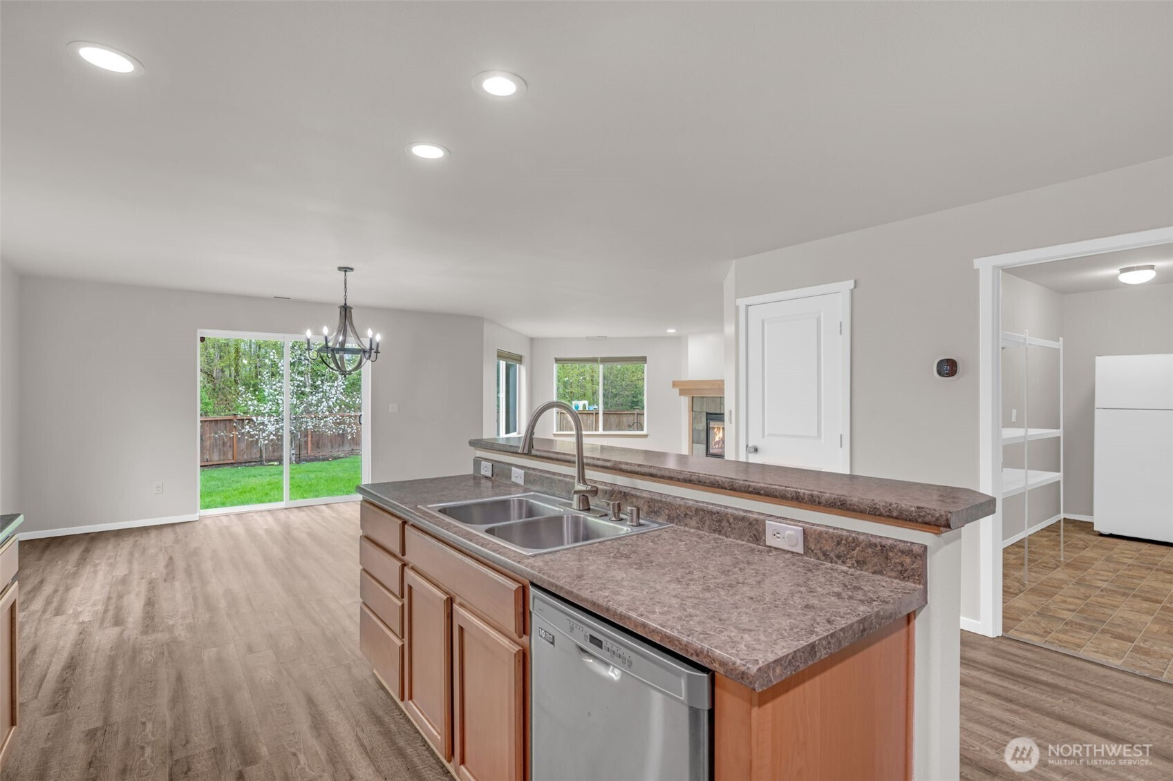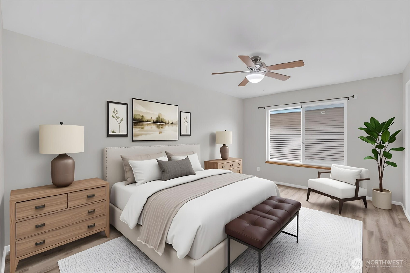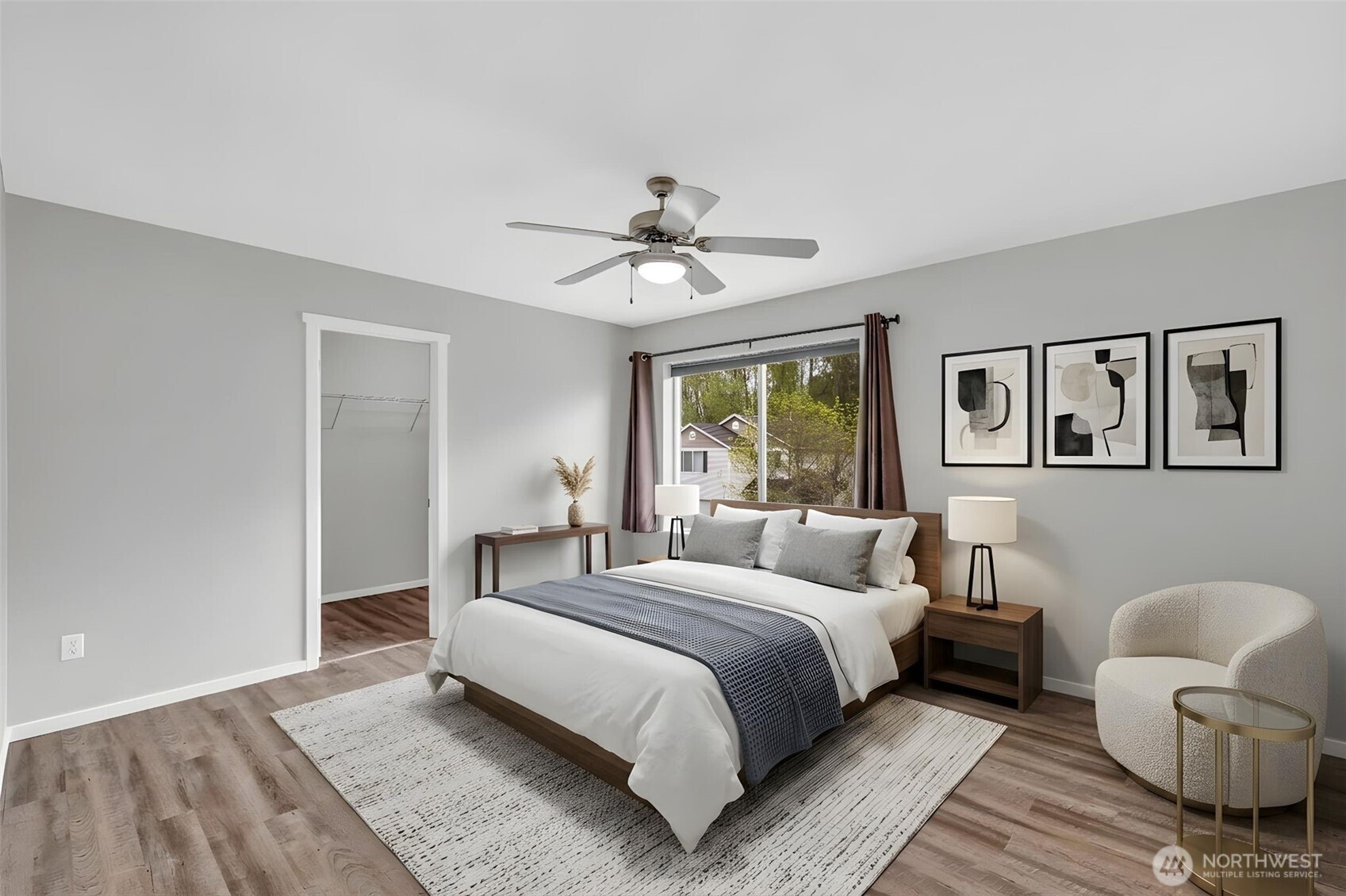 Graced with bright, open & functional spaces this home is sure to please. Covered porch greets guests entering the home w/LVP flooring throughout. Main level includes large kitchen with all appliances, bar-island & loads of counter space, open dining & great room with fireplace & slider access to a beautiful fully fenced backyard with patio, matured landscaping that backs to a greenspace. Main level also includes a bedroom with an attached bath & office with French doors. Upstairs offers a huge family room, spacious primary bedroom with sitting area, & large updated walk-in en-suite bath. 2 additional bedrooms, full bath & laundry room complete the package. All bedroom includes walkin closet. 2 car garage with storage. Brand new roof, easy commuting options, & nearby shopping. Embrace an active or relaxed lifestyle in a welcoming community that features a neighborhood park perfect for evening strolls, and easy bike access to the Centennial Trail. You will also enjoy ultimate comfort with schools, transit lines, golf courses, and dining mintues away.