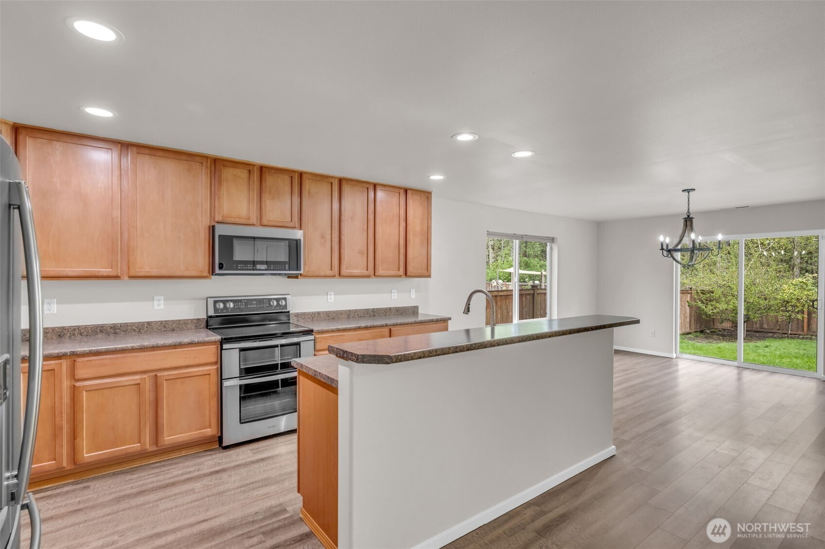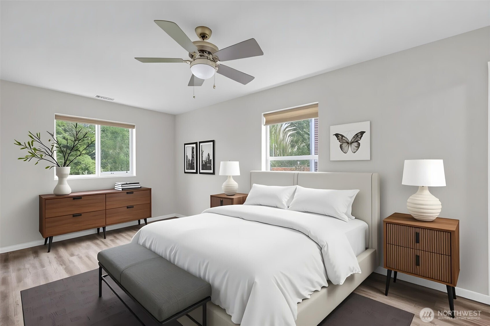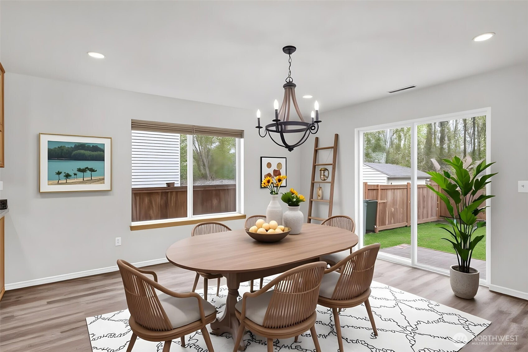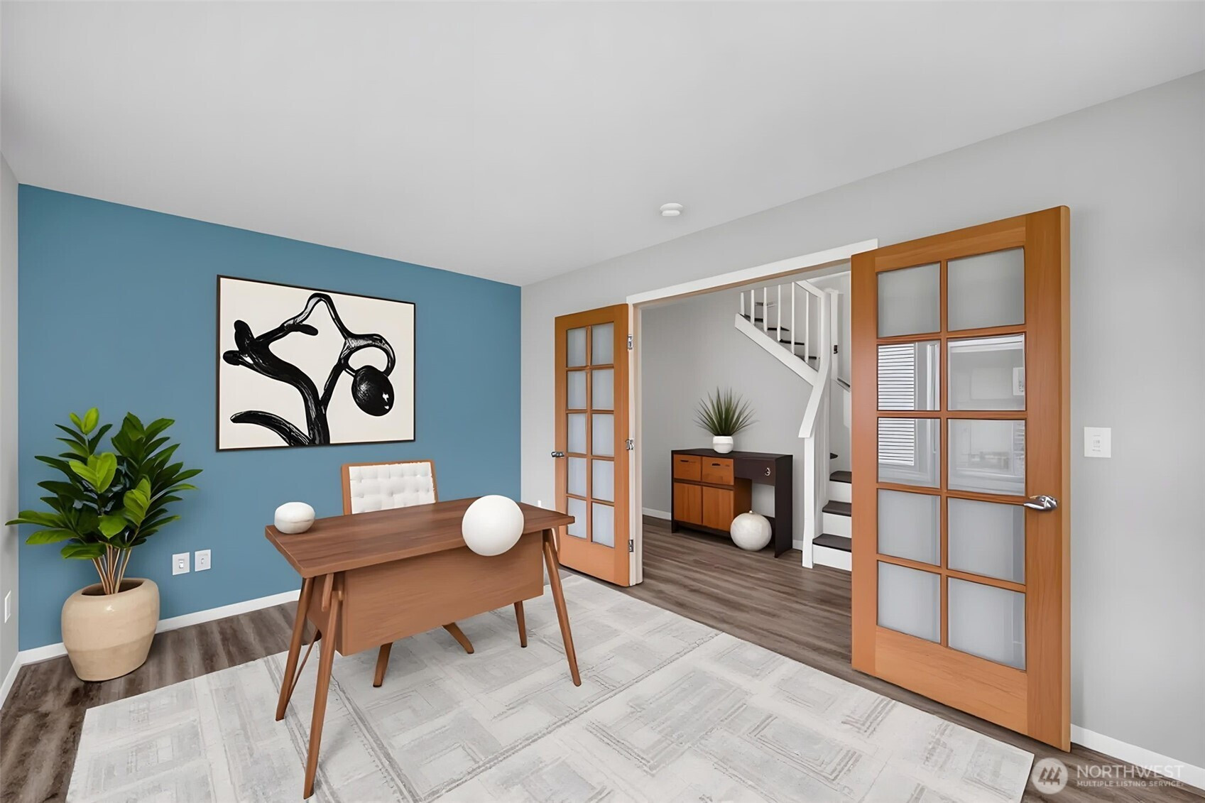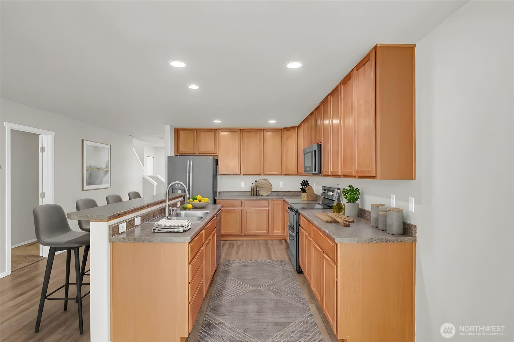 Graced with bright, open & functional spaces this home is sure to please. Covered porch greets guests entering the home w/LVP flooring throughout. Main level includes large kitchen with all appliances, bar-island & loads of counter space, open dining & great room with fireplace & slider access to a beautiful fully fenced backyard with patio, matured landscaping that backs to a greenspace. Main level also includes a bedroom with an attached bath & office with French doors. Upstairs offers a huge family room, spacious primary bedroom with sitting area, & large updated walk-in en-suite bath. 2 additional bedrooms, full bath & laundry room complete the package. All bedroom includes walkin closet. 2 car garage with storage. Brand new roof, easy commuting options, & nearby shopping. Embrace an active or relaxed lifestyle in a welcoming community that features a neighborhood park perfect for evening strolls, and easy bike access to the Centennial Trail. You will also enjoy ultimate comfort with schools, transit lines, golf courses, and dining mintues away.