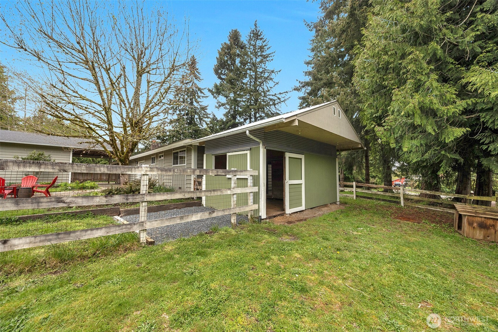 Rare Find!! This close-in Clearview horse property features a lovely 3 bedroom, 1.75 bath, 1584 sq. ft. rambler in move-in condition on over an acre. The park-like setting includes 2 fenced pastures, a 1-horse barn, a spacious garden/potting shed plus blueberries, raspberries and fruit trees. Detached 24x26 ft 2 car garage/shop plus additional covered parking. Off-street parking for RV or various toys. This fine home has a living room, family room and an office. Home includes all appliances and has been pre-inspected with relevant repairs completed and includes a One Year Home Warranty. In addition to horses this property could be ideal for goats, lamas or chickens. Or if you are looking for plenty of sunny space to garden, you've just found it! Priced to sell and includes FHA and VA terms.