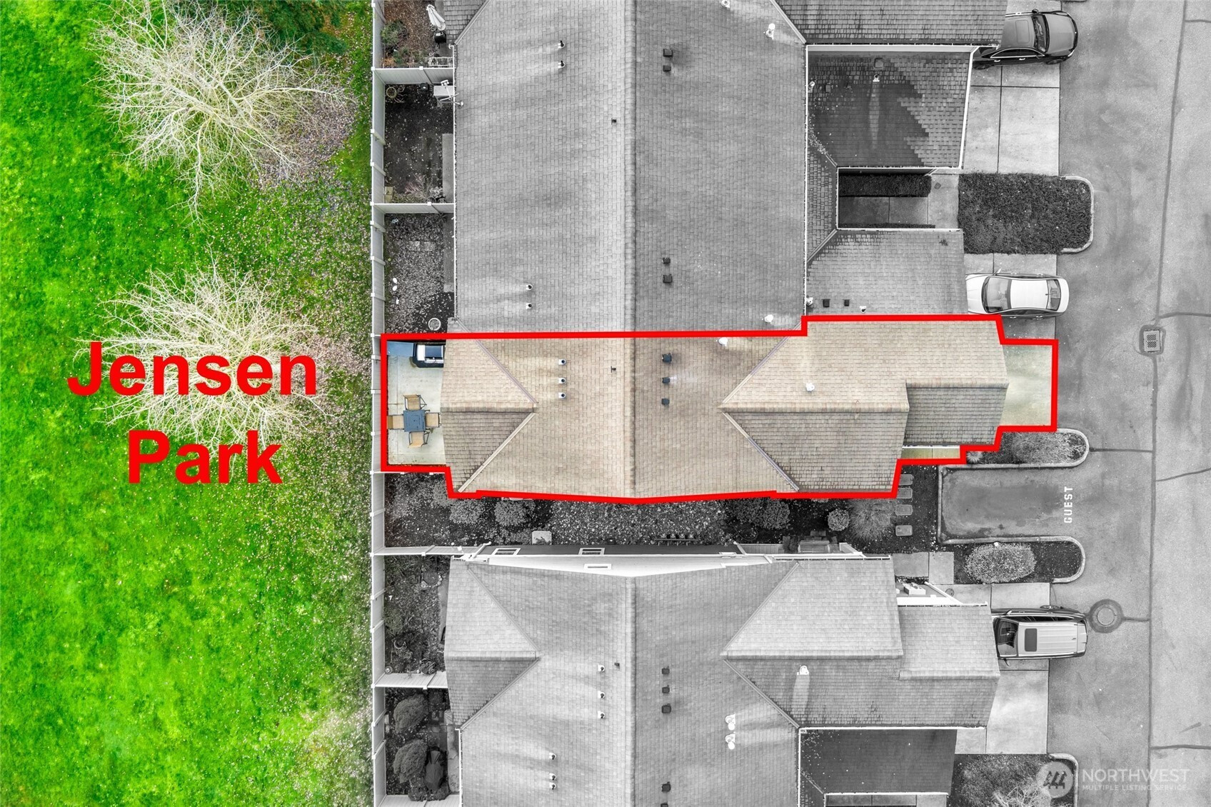 Experience refined living in this beautifully updated 3-bedroom, 2.5-bath Jensen Farm townhome. Bright, freshly painted interiors with new flooring and trim create a welcoming atmosphere. The custom kitchen is thoughtfully designed with soft-close cabinetry, reinforced pull-outs, and an upgraded pantry, perfect for everyday ease and entertaining. Retreat upstairs to the luxurious primary suite with a jetted tub, stand-alone shower, heated towel racks, and Apple TV. Step outside to a fully fenced patio with gas hookup and direct park access, ideal for relaxing or hosting. Enhanced with Nest zoning, A/C, air filtration, and abundant storage, this home blends comfort, elegance, and exceptional livability.