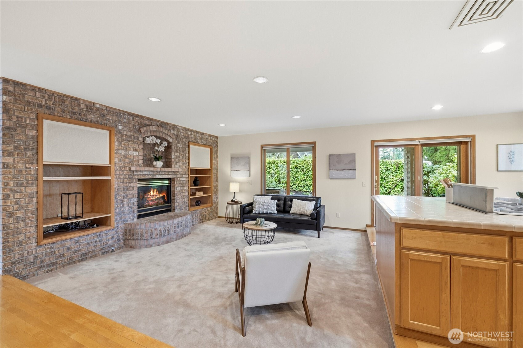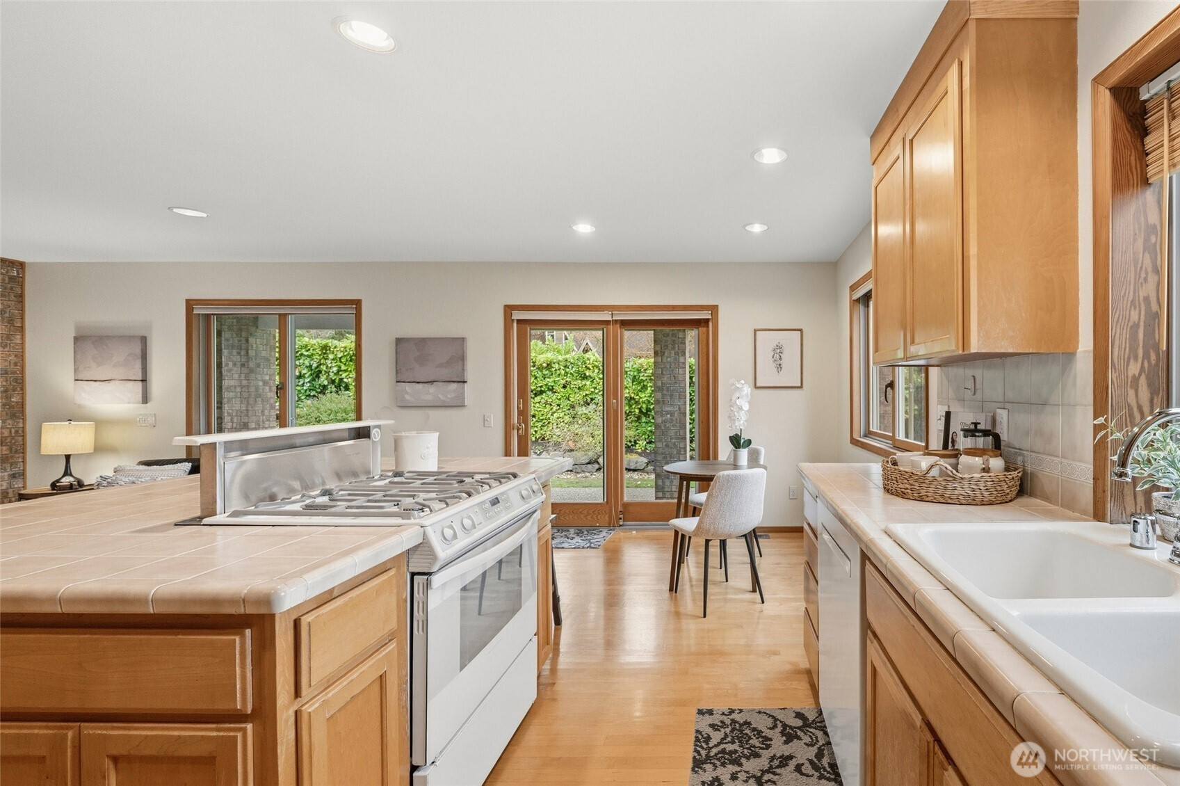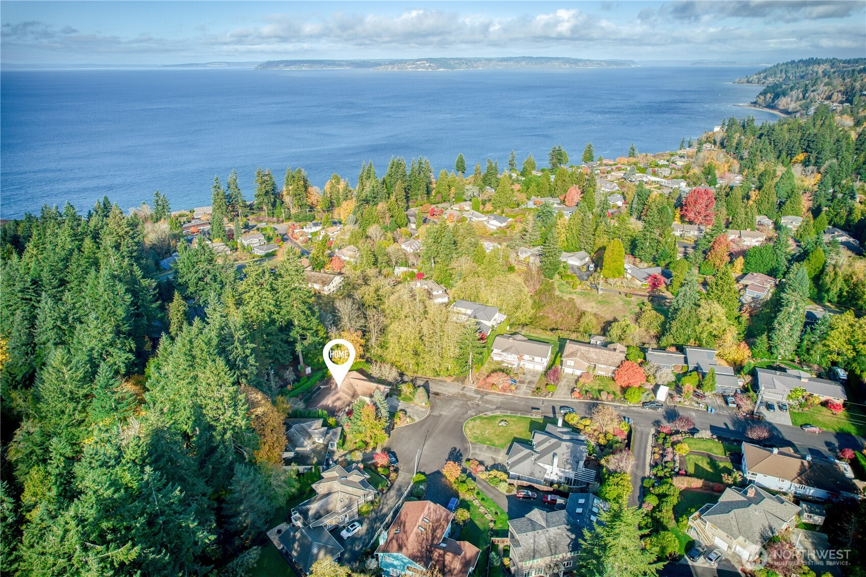 Stately and timeless brick upscale rambler design with more to offer! Enjoy over 1/4 acre of manicured grounds surrounded by nature on a quiet cul-de-sac moments from everything! East-facing windows draw in soft morning sun & fantastic natural light while trees all around provide dappled shade in the summertime. Life flows easily through the functional, open layout w/ maple hardwood floors, Andersen windows, efficient cellular shades & a cozy gas fireplace surrounded by built-ins & a custom brick mantle. Hosting & entertaining is a breeze between the formal dining room & the roomy kitchen, equipped w/ gas cooking, maple cabinetry, an island w/ bar seats & a spacious eating nook w/ a peekaboo Puget Sound view. Versatile layout w/ 4 large bedrooms, including a king-sized primary boasting dual closets & an en suite w/ heated floors & a jetted tub. Upstairs, a large & light-filled bonus room offers endless possibility: a home office, theater, 5th bedroom, play area, or whatever else you can imagine! The covered patio overlooks the lush, private backyard, mature fruit trees & ample space for pets, play & additional gardens (kept watered by a 7-zone sprinkler system). Attached 2-car garage w/ custom redwood doors includes a shop space & storage room for all your projects, gear & hobbies. Quiet & private, this house is located in an amazingly beautiful, peaceful, and walkable neighborhood that has expansive views of Puget Sound, parks, cafes, and shops within strolling distance.
