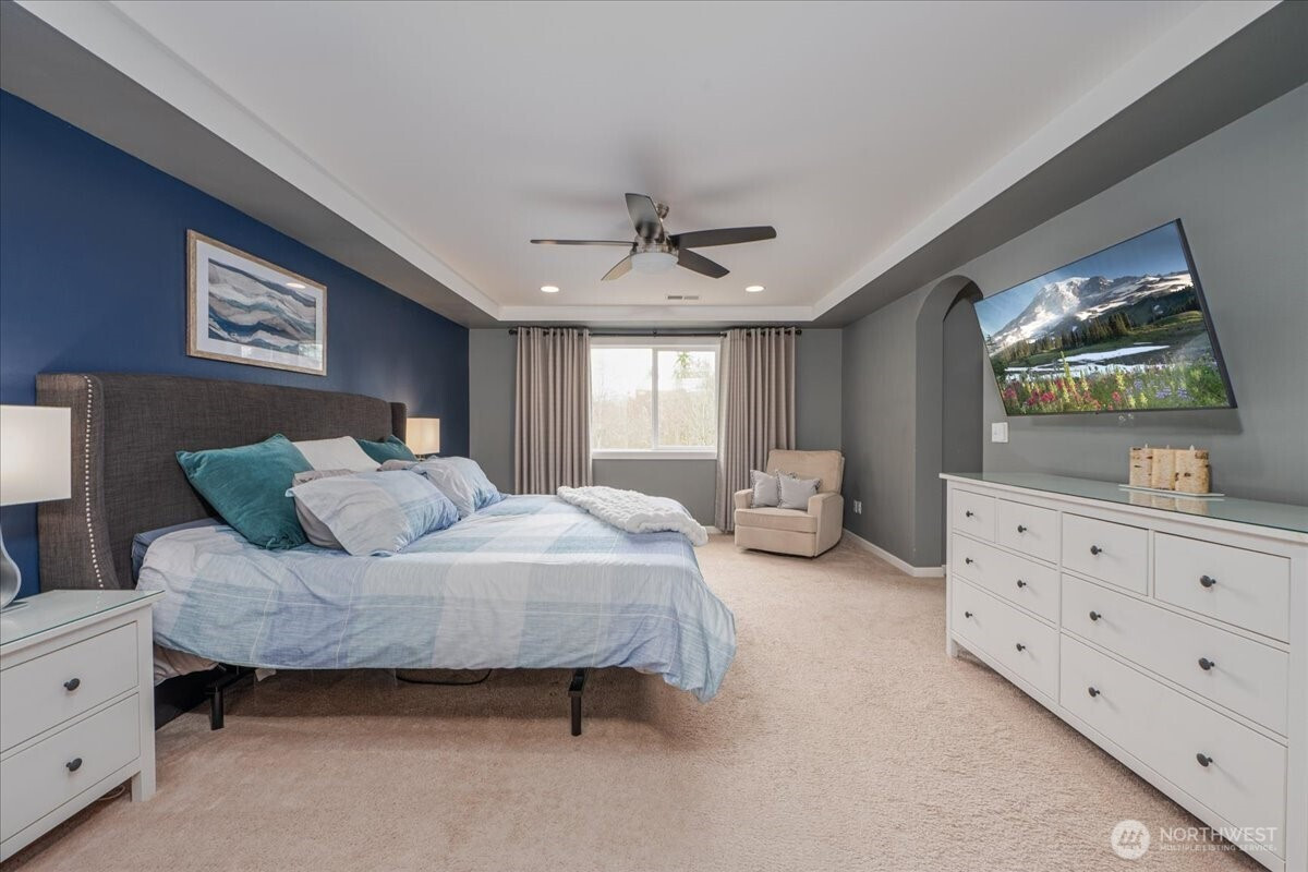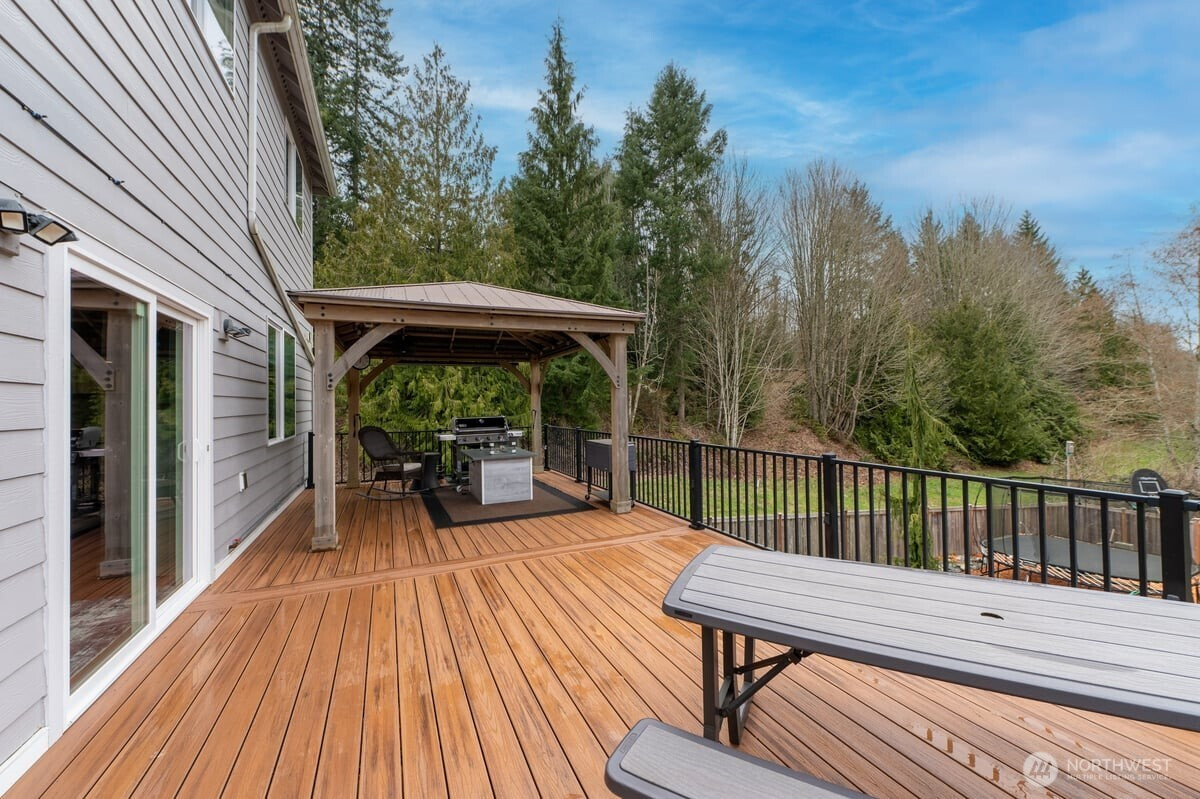 Welcome to this stunning Valtera View resale home in Lake Stevens! Situated on a picturesque greenbelt lot with a park-like backyard, this home has it all! A thoughtfully designed main level with an open floor plan offers a chef’s kitchen with extensive cabinets and walk-in pantry for ample storage and an oversized island overlooking the living and dining areas. Adjacent to the kitchen is a main floor bedroom and a sun-filled office. Upstairs includes 4 generous sized bedrooms including a spacious primary suite and an oversized bonus rec room! Head down to the fully finished basement that offers incredible flexibility for a home theatre, rec room, gym, and so much more! From the main floor, you’ll find a stunning custom deck with stairs leading down to your private fully fenced backyard with swim spa! Efficient AC and heating installed! Just moments away from restaurants, stores, parks, and highway access. Don't miss the 3 car garage! Don't wait!