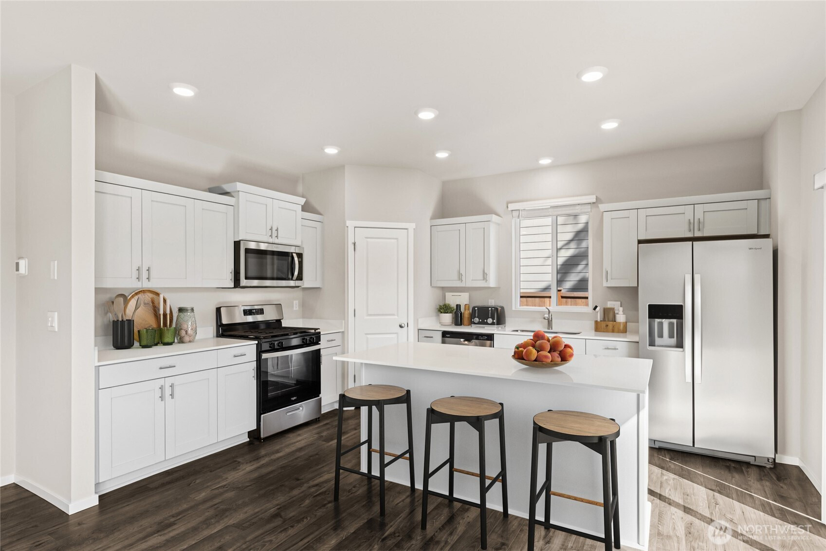 Welcome to the Ballard plan by D.R. Horton at Meadow Hawk. This new home Stanwood community features parks, playgrounds, picnic tables, trails, streetlights & tree lined sidewalks. The Ballard has all of the components that make this floorplan large enough to spread out but also defined & useable. This home is finished with light color painted cabinets and extended laminate flooring on the main. The desirable main floor bedroom and ¾ bath adds great value to this home. Home includes A/C, 240Volt outlet in the garage, home automation package & timeless kitchen appointments such as island, stainless appliances, slab quartz counters & more. 1-2-10 year warranty. Buyers must register their broker on site at first visit, including open houses.