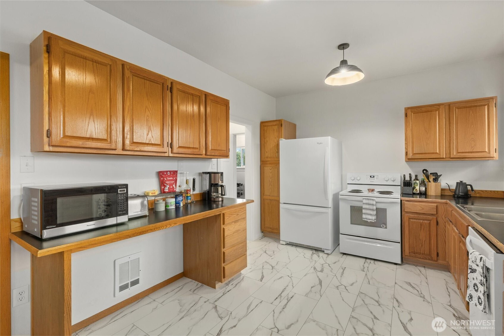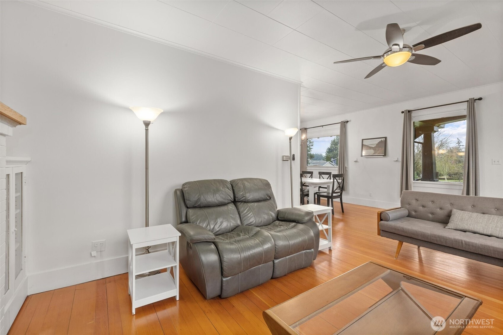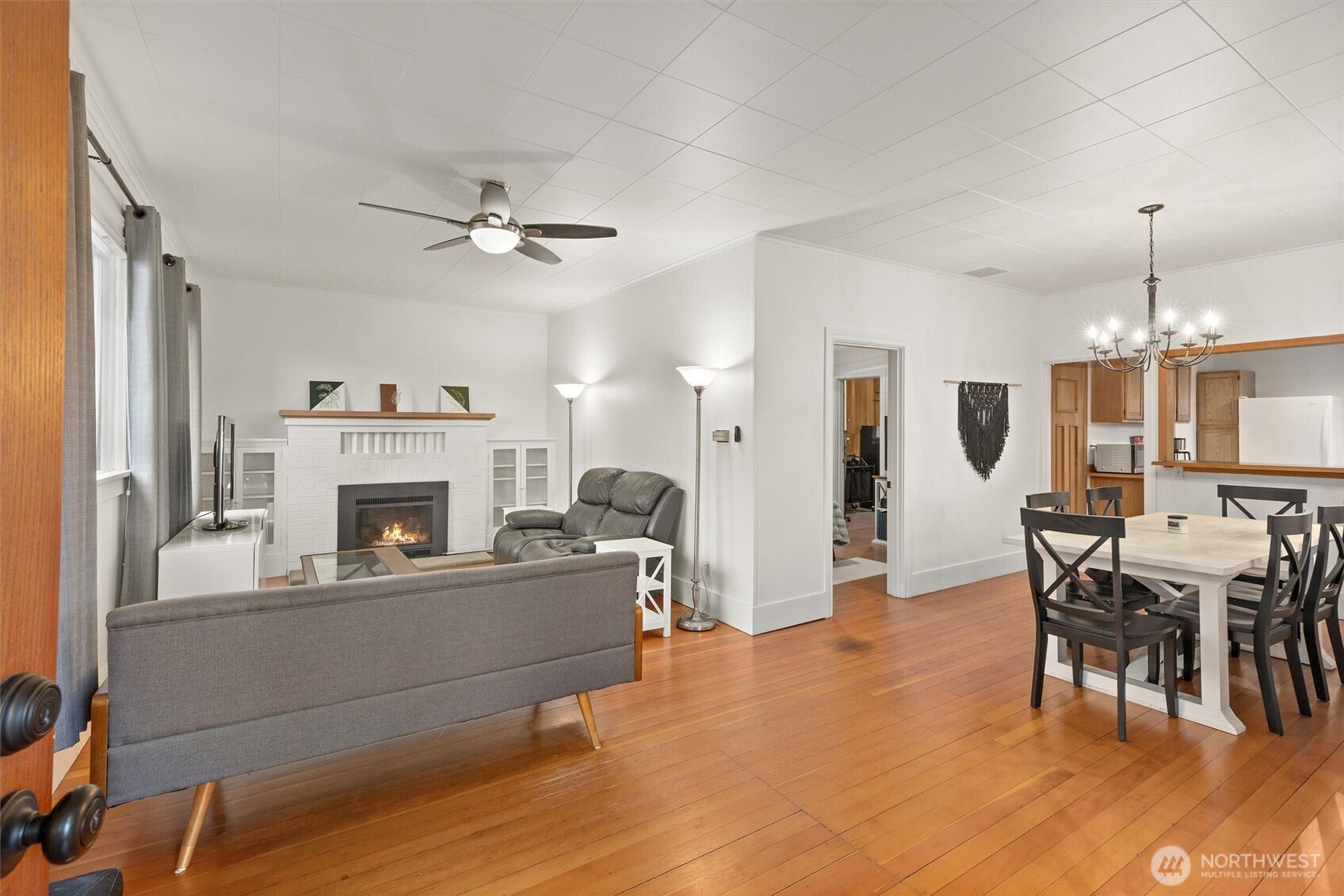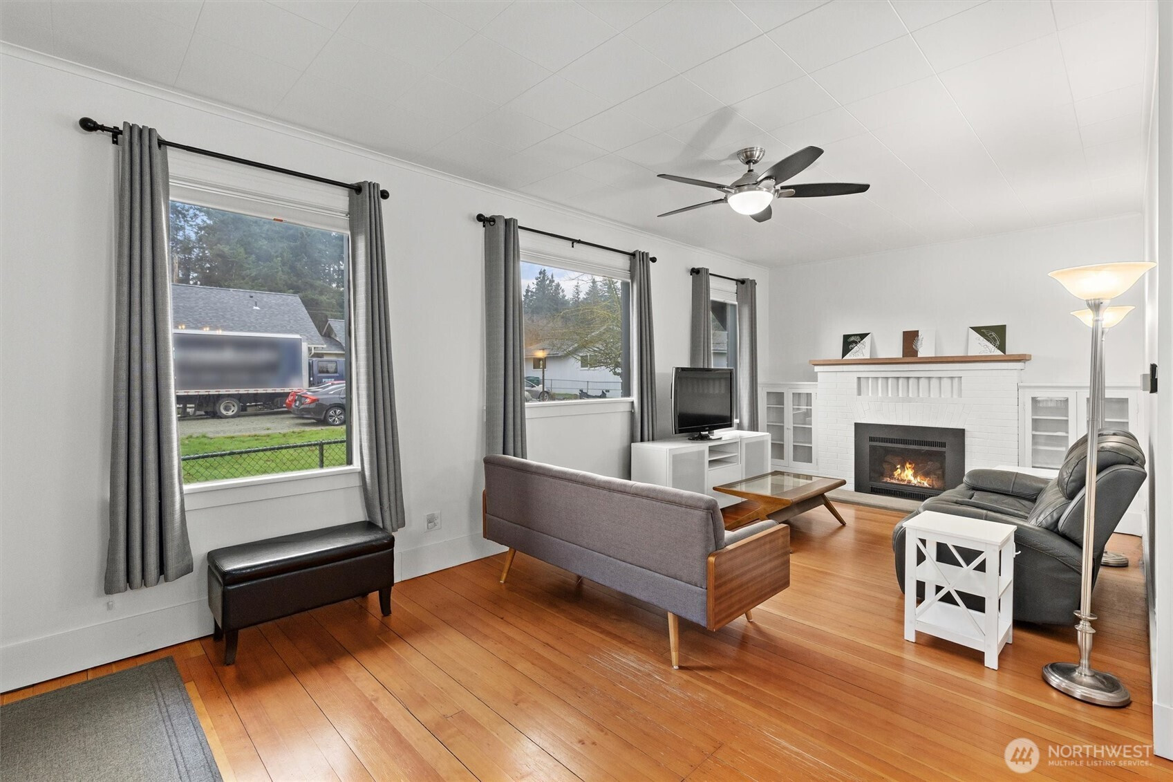 Welcome to this charming historic home with updated features. This beautiful brick craftsman sits on over 1/3 of an acre. Included is a two-car detached garage, studio, and workshop, huge potential for ADU. Inside you will see old world charm with real hardwood floors, updated kitchen, bathroom, and utility room. Primary bedroom on main floor, with walk-in closet and bathroom access. Two additional bedrooms upstairs with potential office/play space. Get cozy in the living room as you sit by the gas fireplace that's framed with custom built-ins. Totally fenced back yard for pets, with gated entry for private parking. Just minutes away from I-5, Amtrak, Airporter shuttle, and downtown Stanwood.