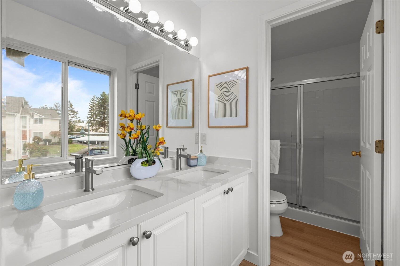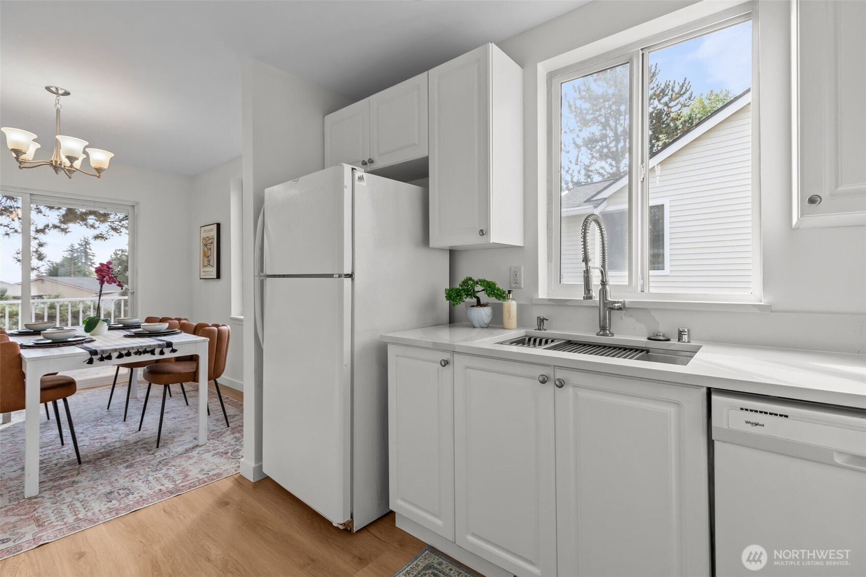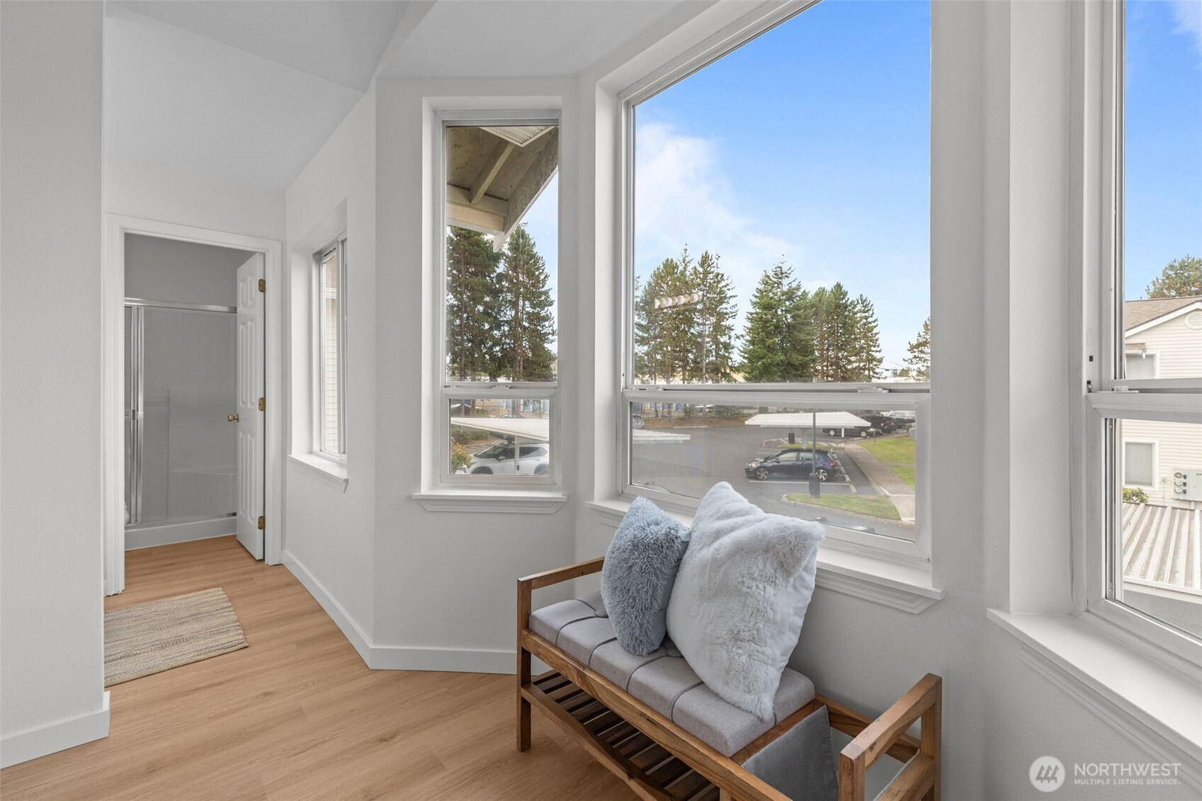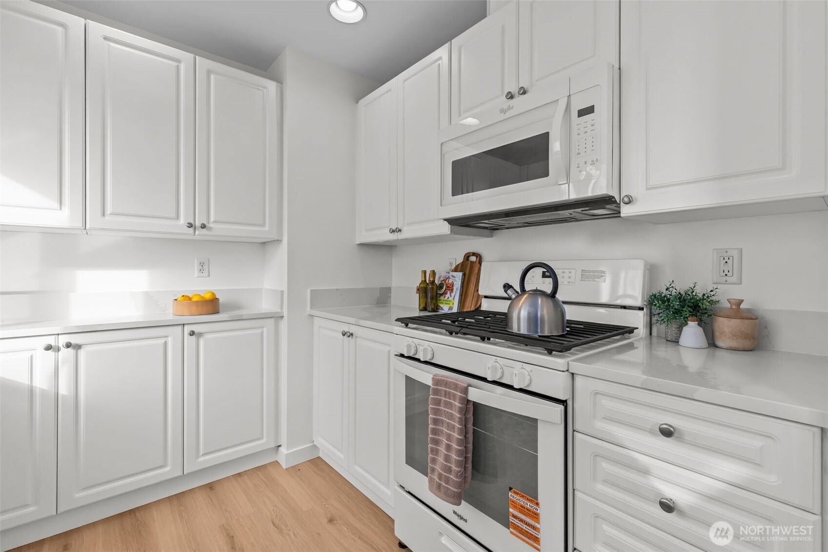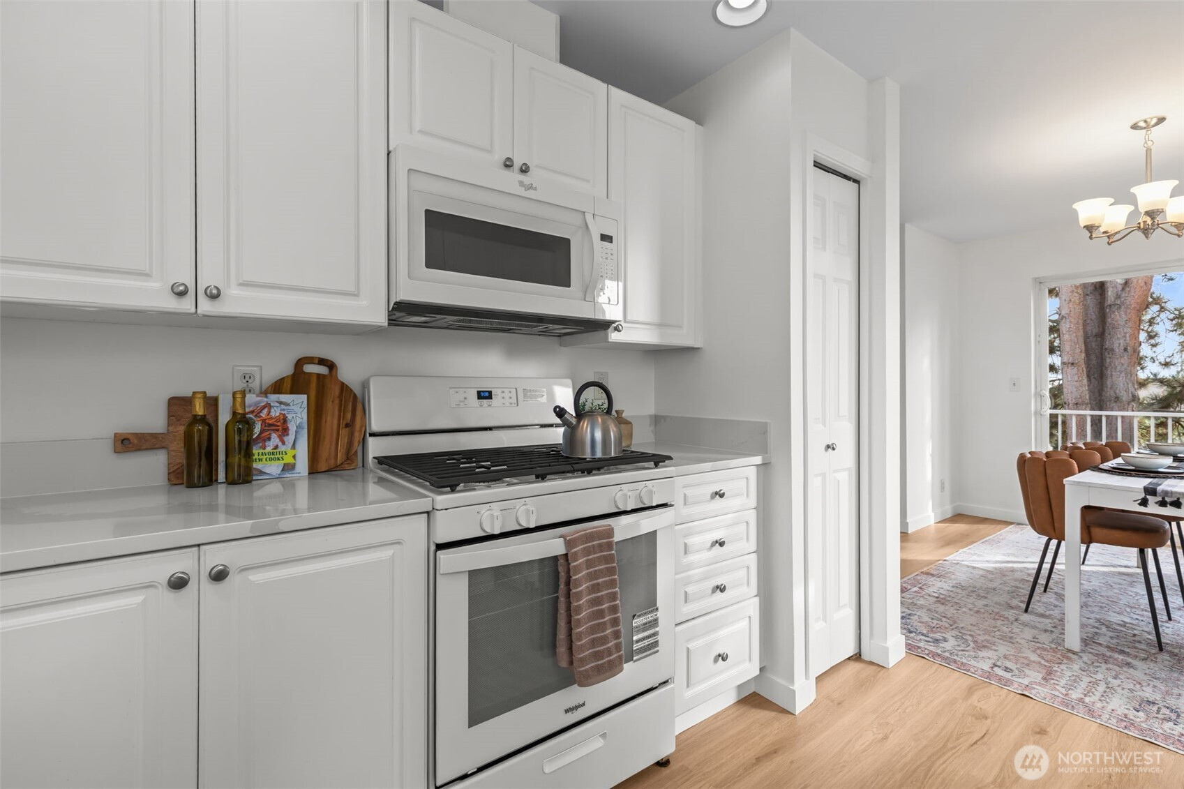 Discover Steven’s View — where lake breezes meet mountain vistas! This top-floor corner unit is the gem of the community, fully refreshed with luxury finishes: fresh paint, premium LVP flooring, quartz countertops, updated baths, and a brand-new oven and stove. Natural light fills the open layout with vaulted ceilings and a cozy gas fireplace. Enjoy mountain views from your private balcony and unwind in the spacious primary suite with vaulted ceilings, walk-in closet, and lush green surroundings. Located just minutes from parks, beaches, trails, shops, restaurants, schools, and transit — everything you need is right here at Steven’s View.
