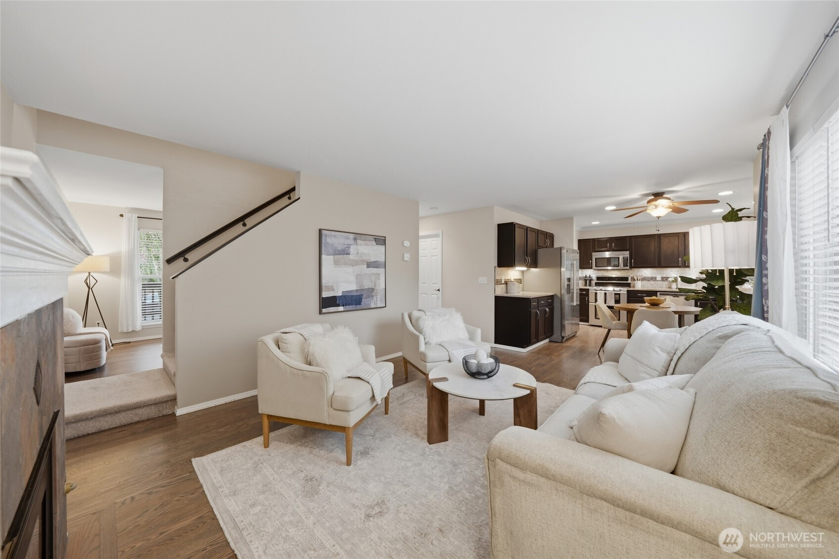 Rare opportunity in The Reserve with gated community access to Lake Stevens and recently upgraded waterfront amenities, including beach access, dock, and picnic area. This 3-bedroom 2.5-bath 1,843 sqft home features a spacious kitchen with granite slab countertops, stainless steel appliances, and ample cabinetry. The primary suite offers a walk-in closet and private bath, while the upstairs den provides flexible space for a home office, media room, or bonus area. Recent upgrades include new carpet, refinished and re-stained hardwood floors, and fresh exterior paint. Stay comfortable year-round with newly added central A/C. Located in the Lake Stevens School District and just minutes from downtown Lake Stevens, shopping, dining, and everyday amenities.