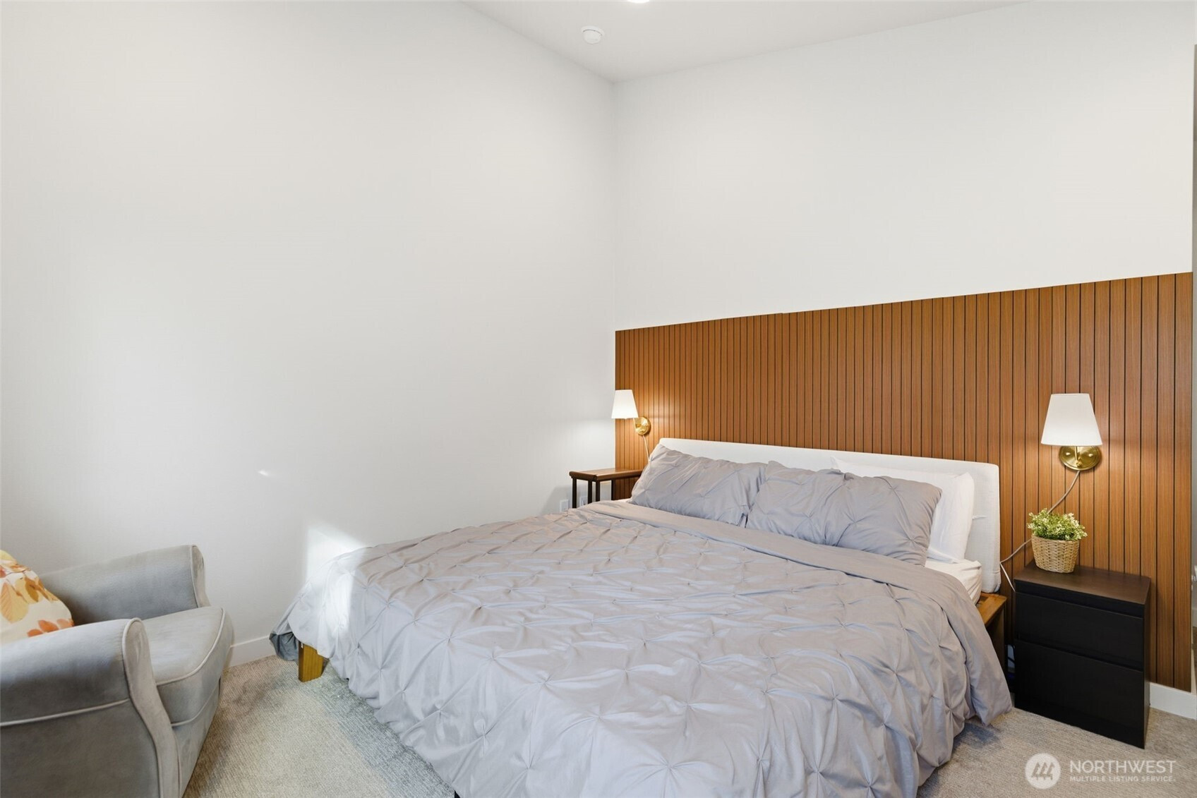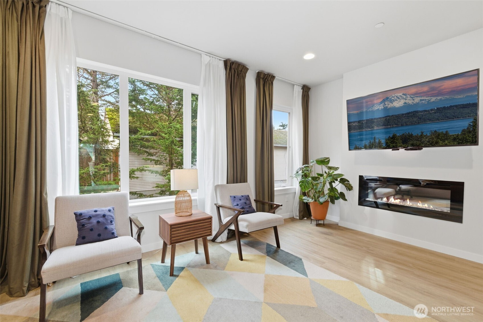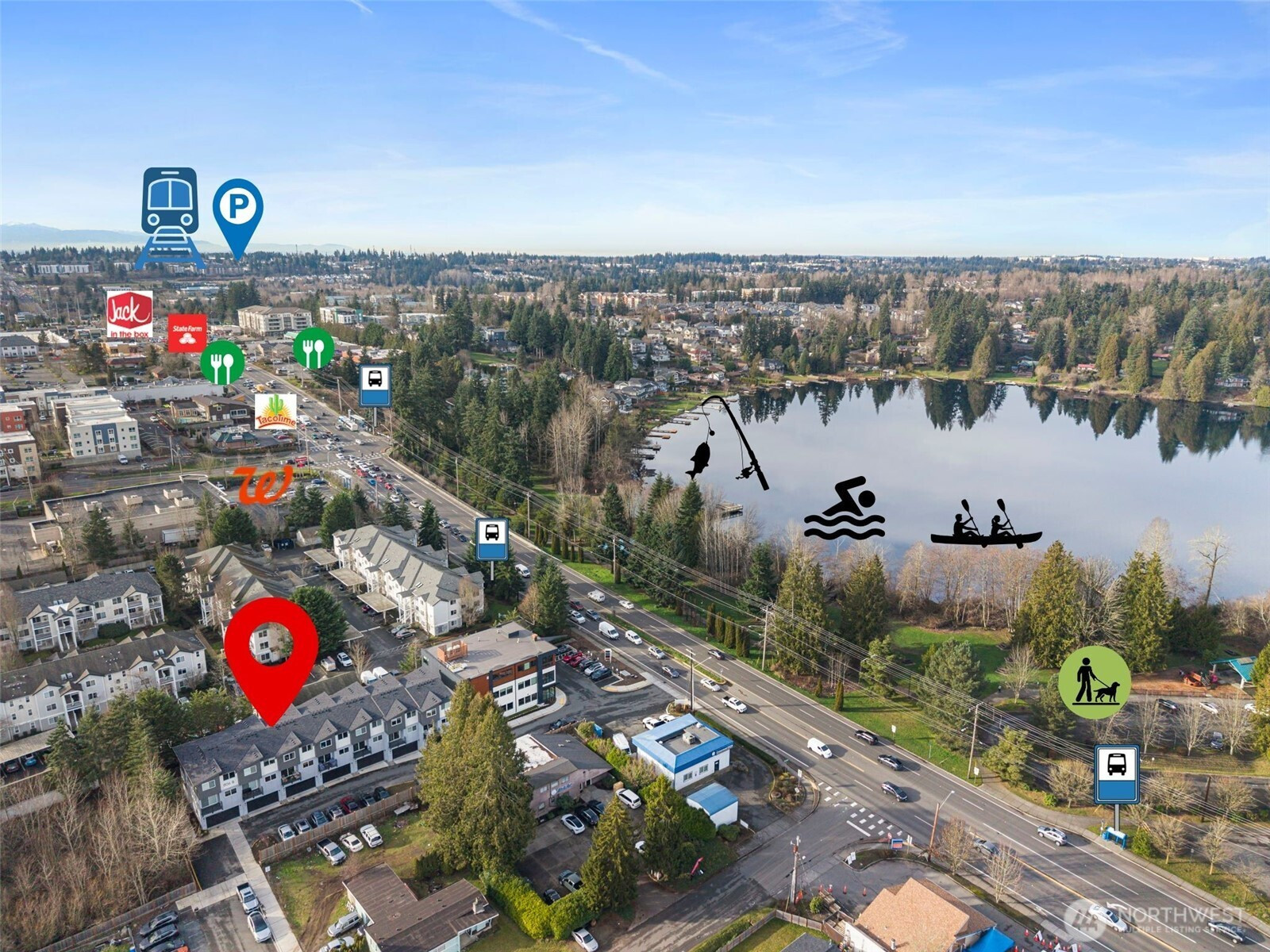 Step into this spacious, light-filled, west-facing home where modern design meets everyday functionality. Built in 2024 and nearly new, this home features a thoughtfully designed kitchen with stainless steel appliances, soft-close cabinetry, 3cm quartz countertops, a gas range, walk-in pantry, and abundant storage. The entry-level bedroom and bathroom offer flexible use as a private guest suite or dedicated home office, complete with CAT6 wiring for fast, reliable internet. Unwind in the living room by the electric fireplace and oversize windows or retreat to the generous primary suite featuring a walk-in closet and en-suite bath. Enjoy year-round comfort with central heating and A/C. The two-car garage is fully equipped with a smart garage door opener, EV charger, and overhead storage. Prime location across from Martha Lake, ideal for outdoor enthusiasts, just minutes to shopping, dining, and entertainment, with walking access to public transit and the Swift Orange Line or Ash Way Park & Ride (also Amazon & Meta shuttle routes). A perfect blend of natural surroundings and urban convenience, this is a home you’ll love coming back to.