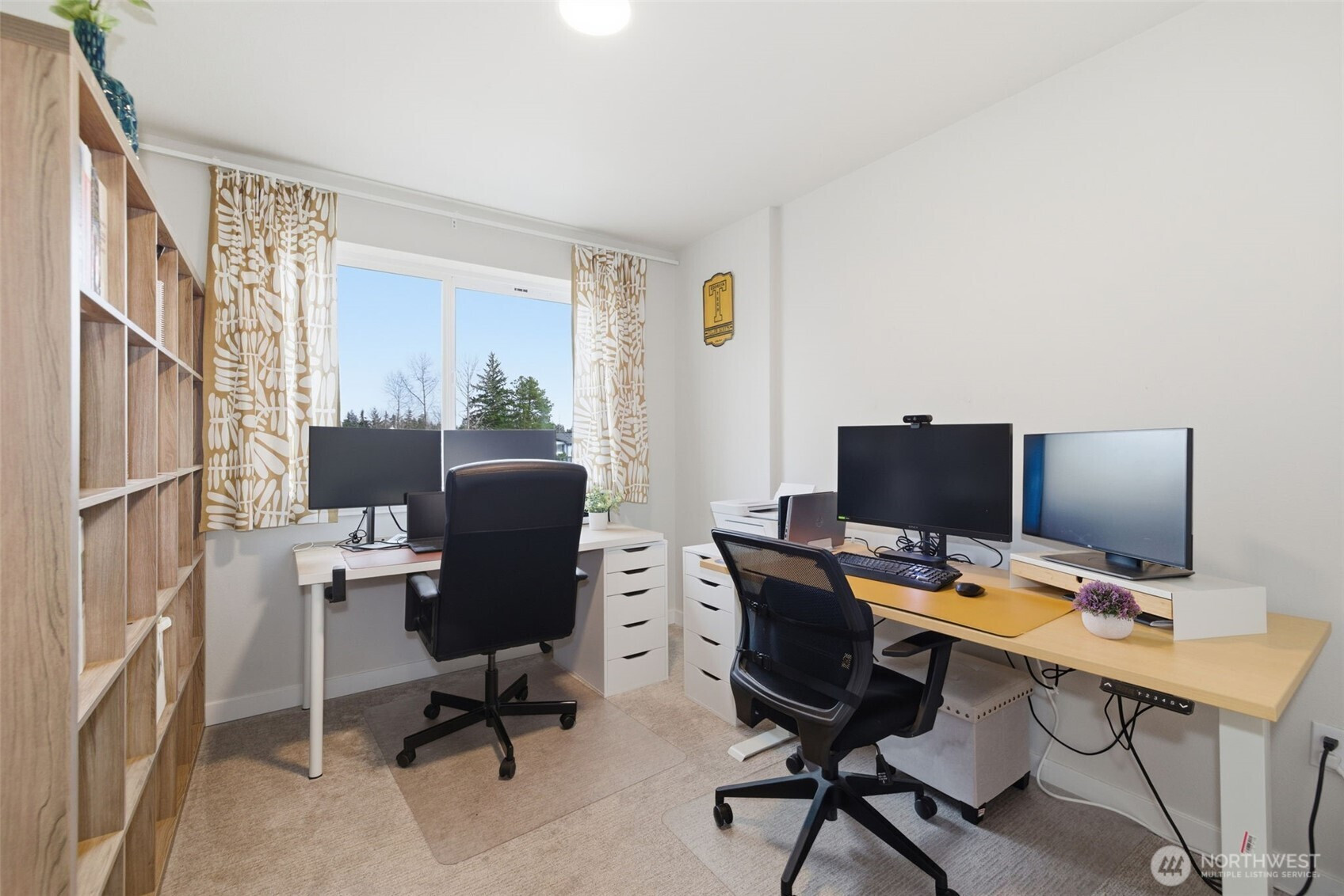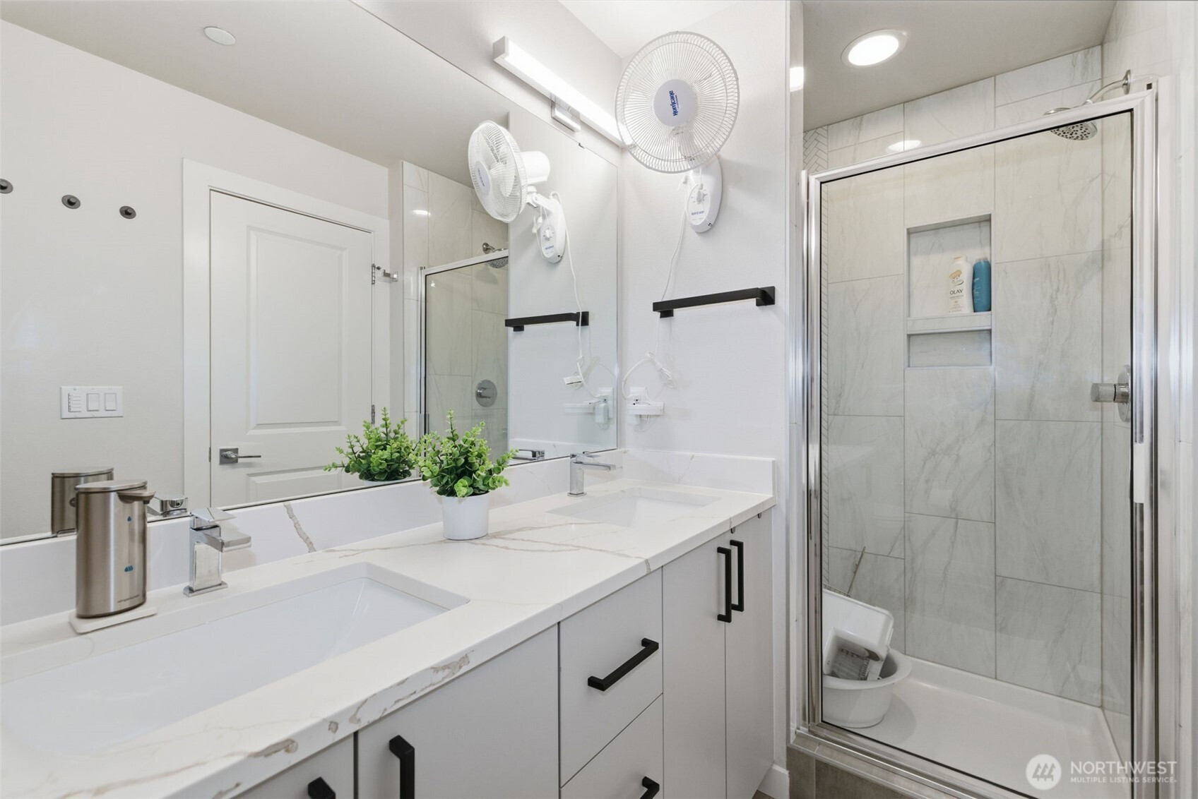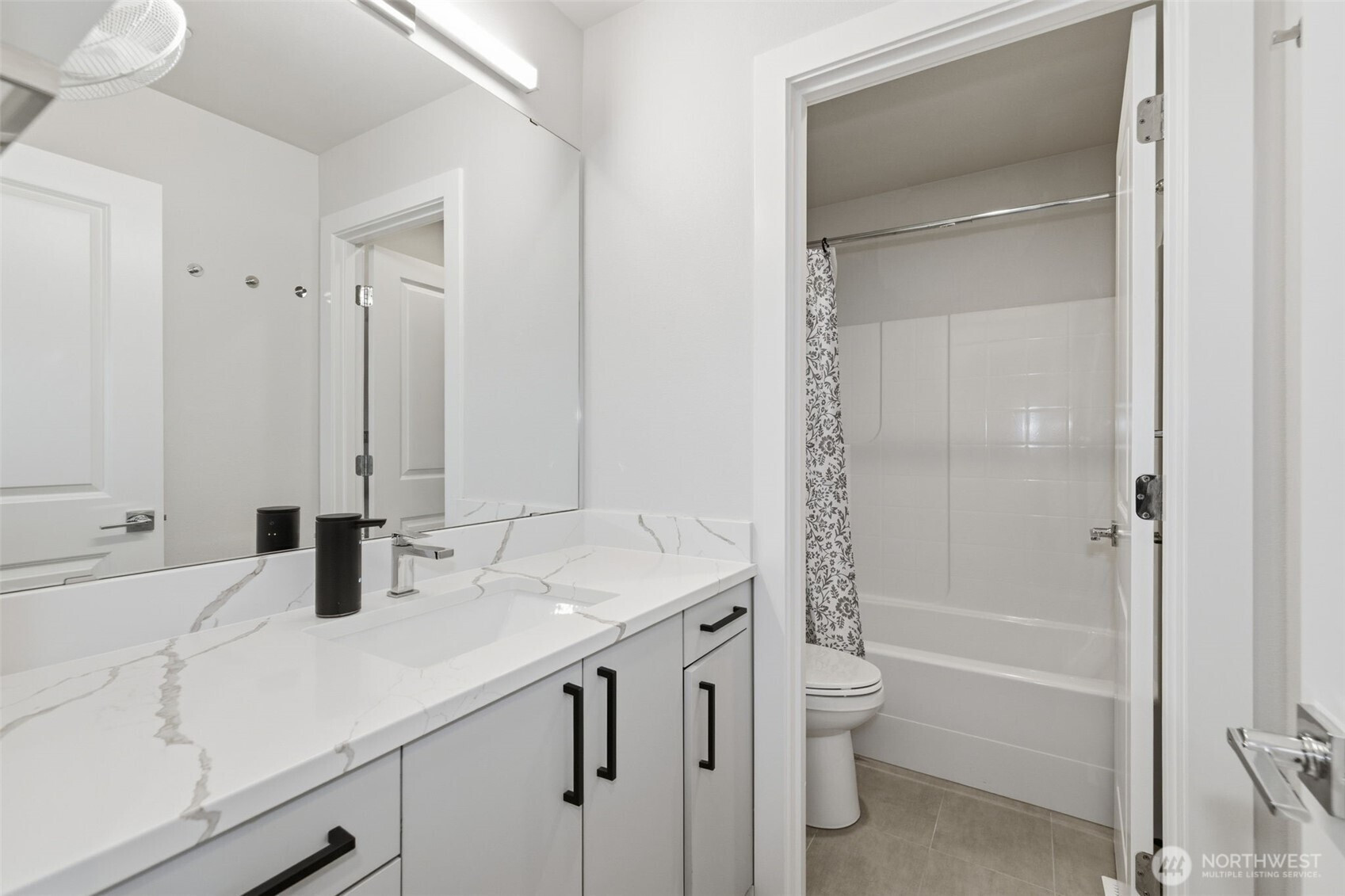 Step into this spacious, light-filled, west-facing home where modern design meets everyday functionality. Built in 2024 and nearly new, this home features a thoughtfully designed kitchen with stainless steel appliances, soft-close cabinetry, 3cm quartz countertops, a gas range, walk-in pantry, and abundant storage. The entry-level bedroom and bathroom offer flexible use as a private guest suite or dedicated home office, complete with CAT6 wiring for fast, reliable internet. Unwind in the living room by the electric fireplace and oversize windows or retreat to the generous primary suite featuring a walk-in closet and en-suite bath. Enjoy year-round comfort with central heating and A/C. The two-car garage is fully equipped with a smart garage door opener, EV charger, and overhead storage. Prime location across from Martha Lake, ideal for outdoor enthusiasts, just minutes to shopping, dining, and entertainment, with walking access to public transit and the Swift Orange Line or Ash Way Park & Ride (also Amazon & Meta shuttle routes). A perfect blend of natural surroundings and urban convenience, this is a home you’ll love coming back to.