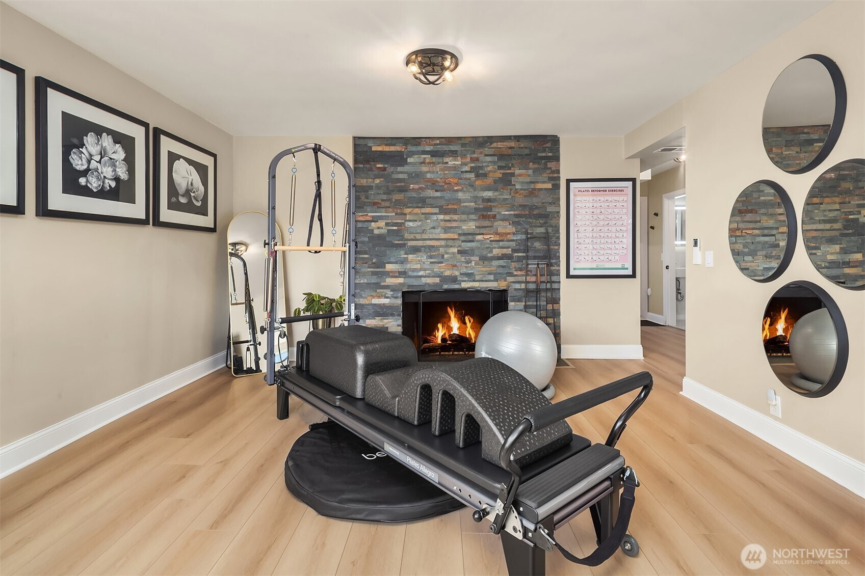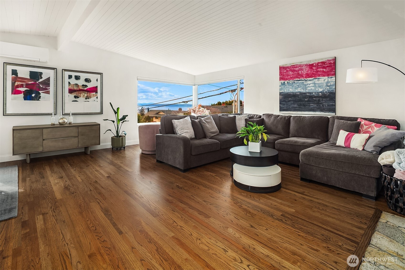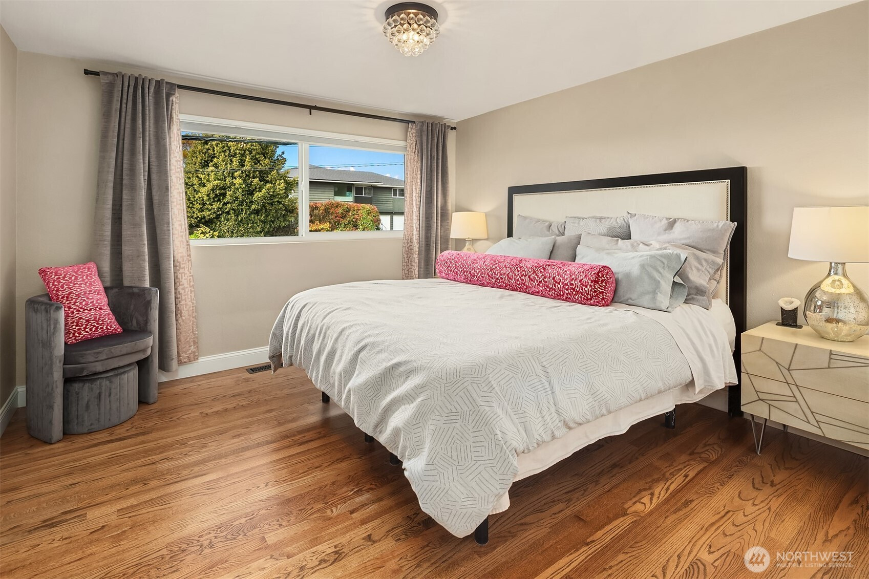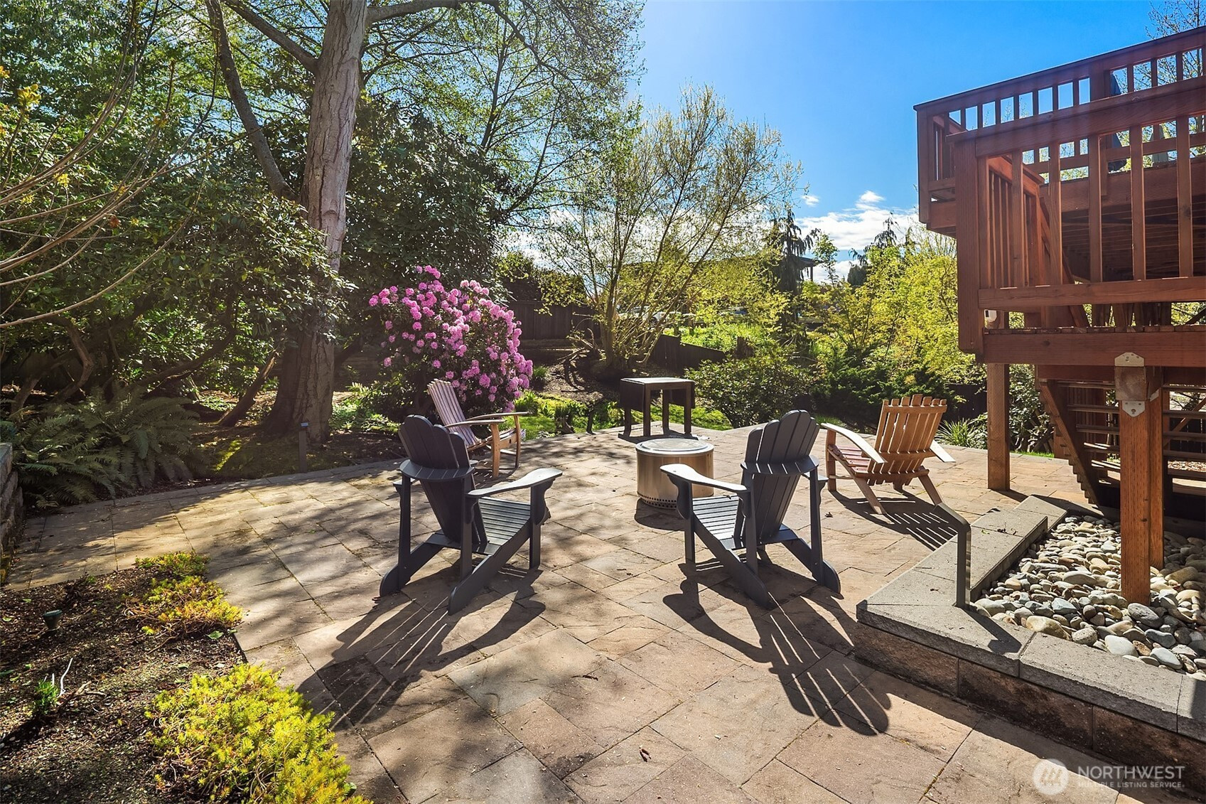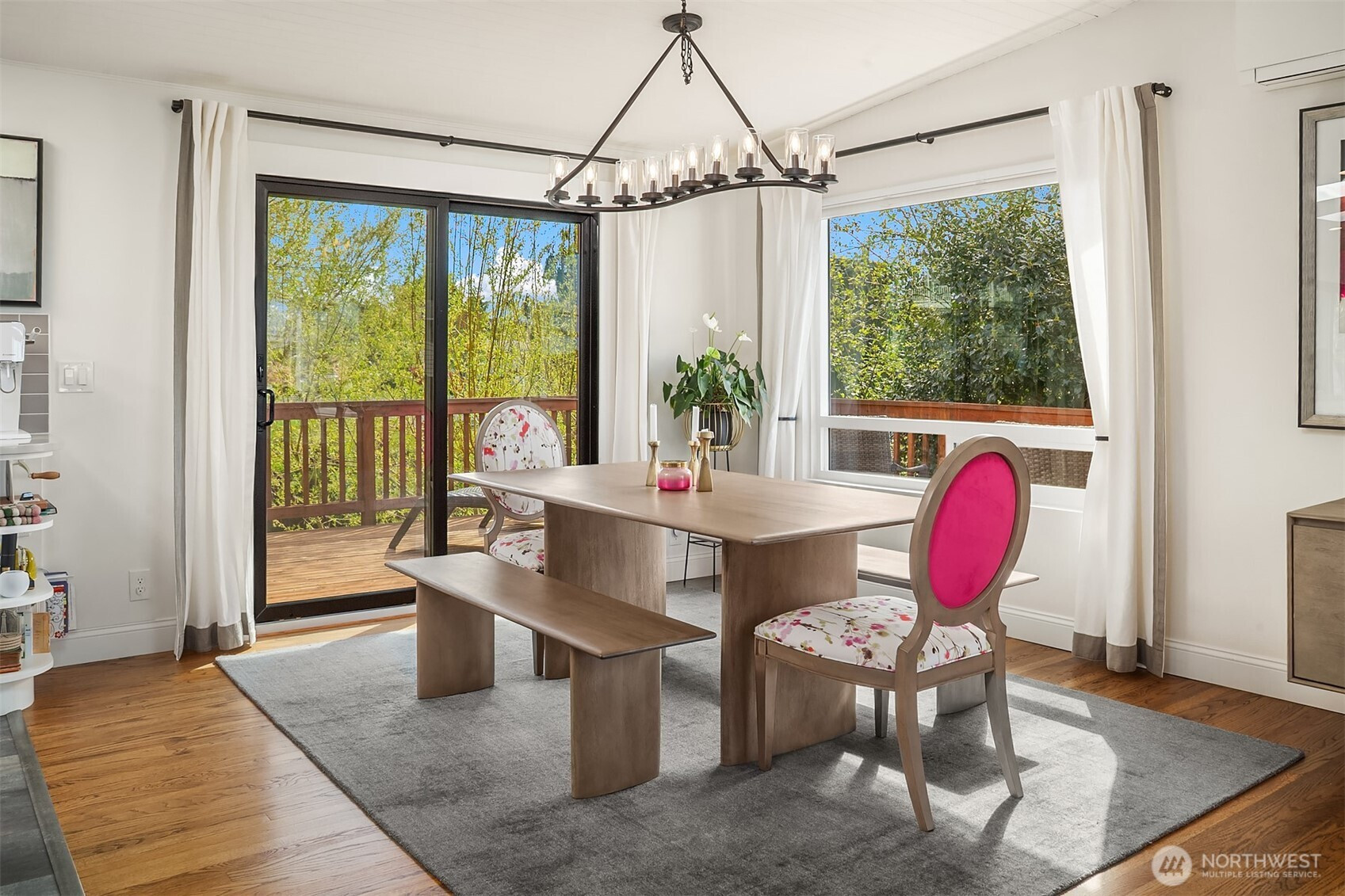 In the heart of Edmonds Bowl offering Olympic Mountain and Puget Sound views, sits this beautifully updated 4-bedroom, 1.75-bath home. The split-entry design welcomes you upstairs to a fully remodeled kitchen featuring grey quartz countertops, a slate grey island with built-in microwave and Bosch electric range, a farmhouse sink, skylights, and walls of windows that fill the space with natural light. The interior has been completely repainted, offering a fresh, move-in-ready feel. Off the kitchen is the dining area and living room with a brick wood-burning fireplace. The primary suite is conveniently located on this floor with a full ensuite bathroom. Two additional bedrooms complete this level. Downstairs features new LVP flooring and a spacious rec room with a stacked stone wood-burning fireplace. A bedroom and ¾ bath along with the laundry room are also conveniently located downstairs. Step outside to an expansive deck ideal for gatherings. Walk down the deck to the patio and enjoy the lush backyard. Unbeatable location with easy access to the ferry, waterfront, and all the shopping and dining that Edmonds has to offer.
