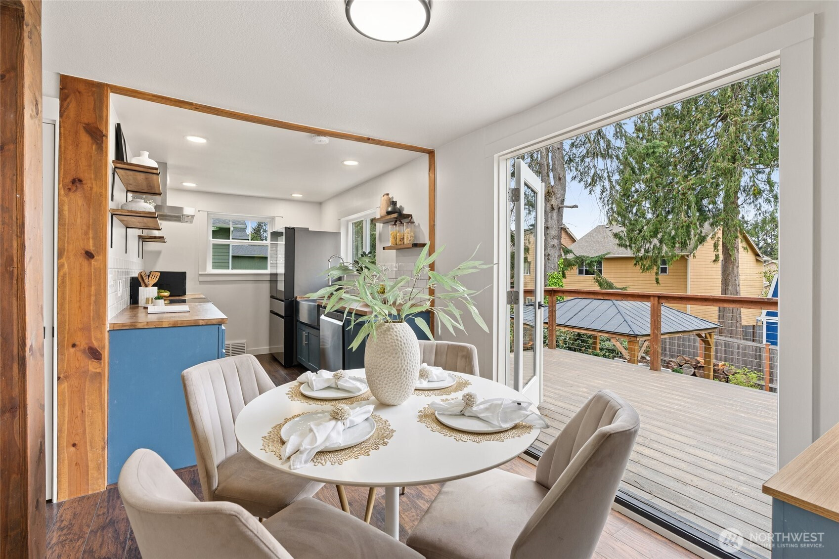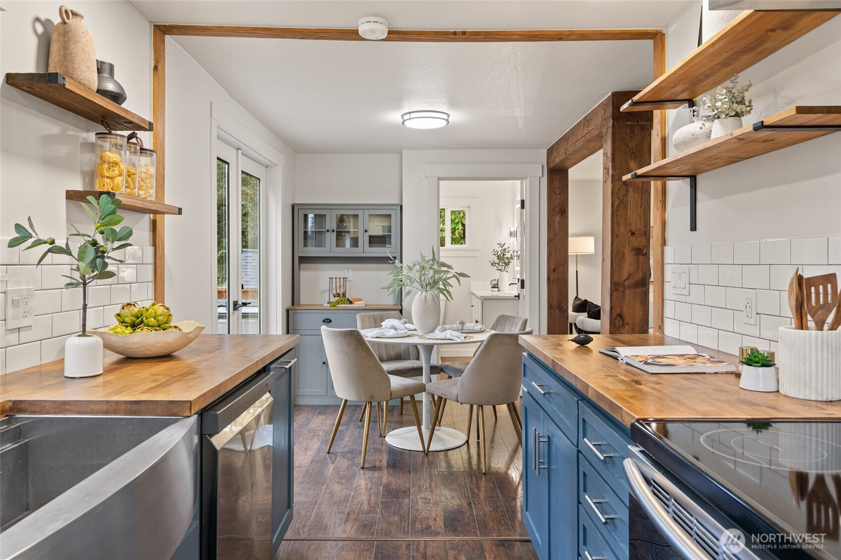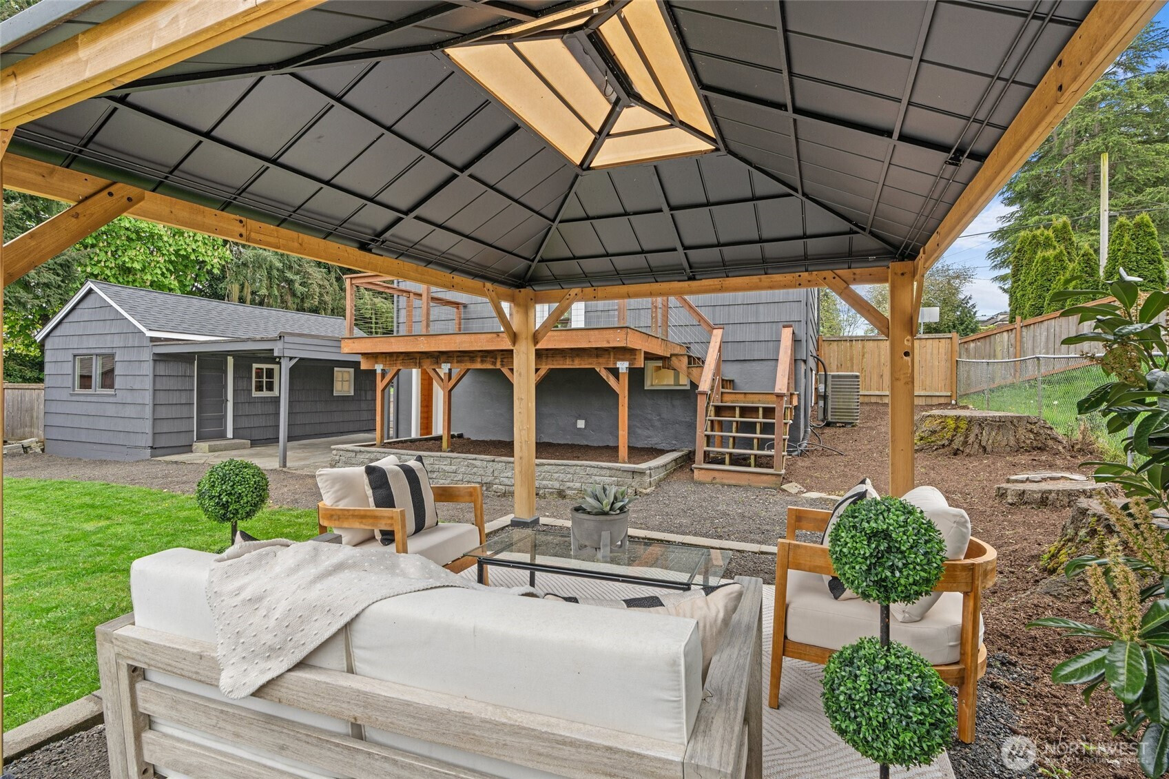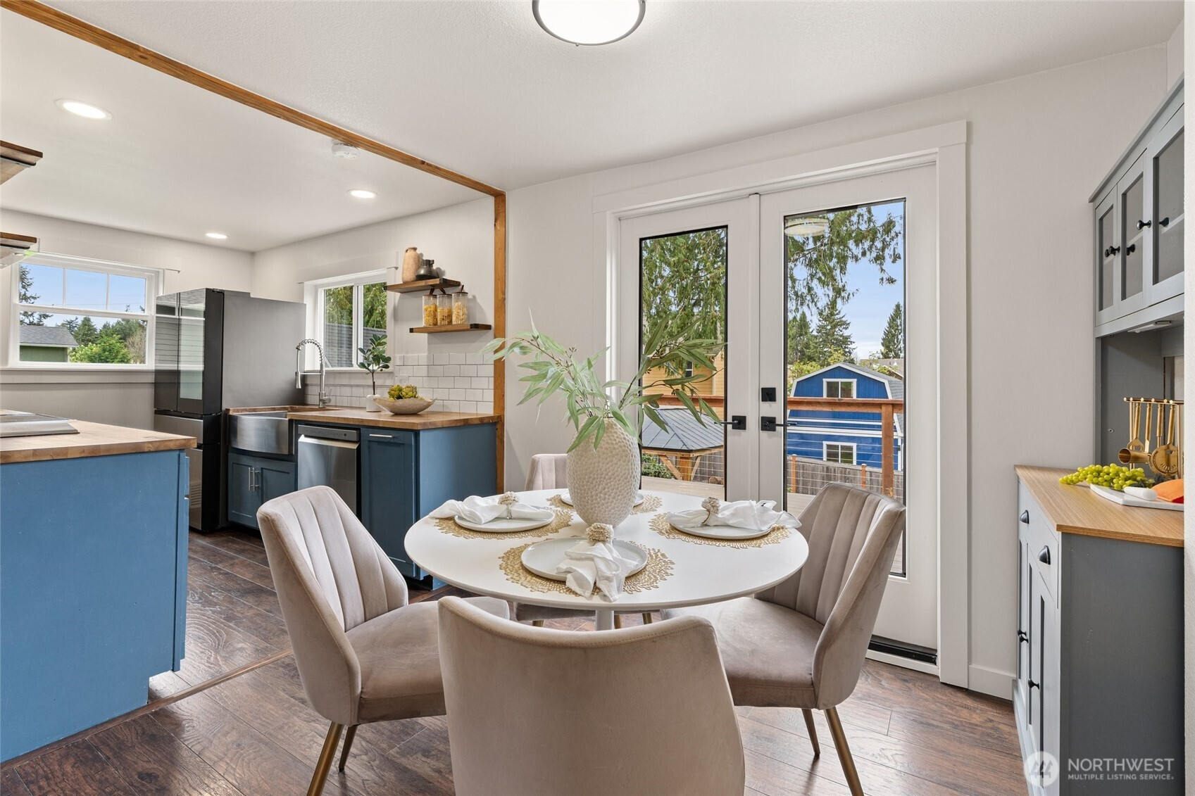 Beautifully updated and move-in ready in a well-connected Edmonds location, this home delivers the flexibility today's buyers crave. Sun-drenched living spaces flow with ease, and a generous main-floor primary bedroom features a walk-in closet. The kitchen marries warmth and craftsmanship with butcher block countertops, open shelving, and a deep farmhouse sink, while French doors open to the deck for effortless indoor-outdoor living. Just beyond, the backyard reveals a charming gazebo, shed, and room to gather under the stars or cultivate your own garden sanctuary. A fully finished daylight lower level with separate access offers elevated flex space for guests, a home office, fitness, or creative pursuits, ready to adapt to your lifestyle. Recent enhancements include remodeled bathrooms, a new roof and windows, fresh interior and exterior paint, and updated carpet and LVP flooring. Elevated everyday upgrades like Samsung appliances, central A/C, Google Nest thermostat, Yale keyless entry, Ring cameras, and a tankless water heater bring refined efficiency to everyday living. A detached garage, carport, and extended driveway provide rare parking flexibility. Perfectly positioned for easy access throughout the region, this location makes commuting and daily life refreshingly seamless. Enjoy quick trips to downtown Edmonds with its waterfront charm, vibrant culinary scene, and ferry access to Kingston and beyond, with the best of the Pacific Northwest always within reach.