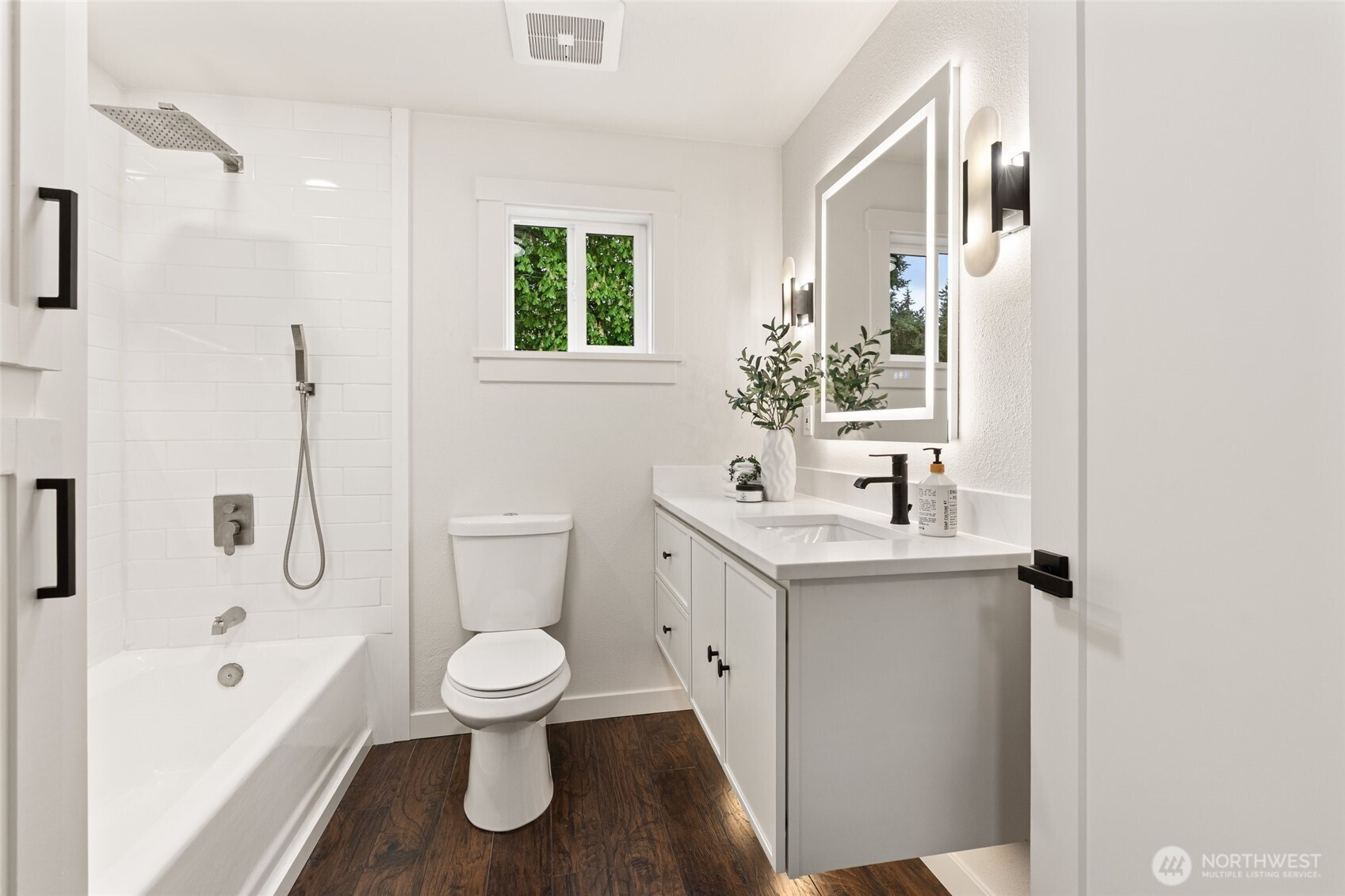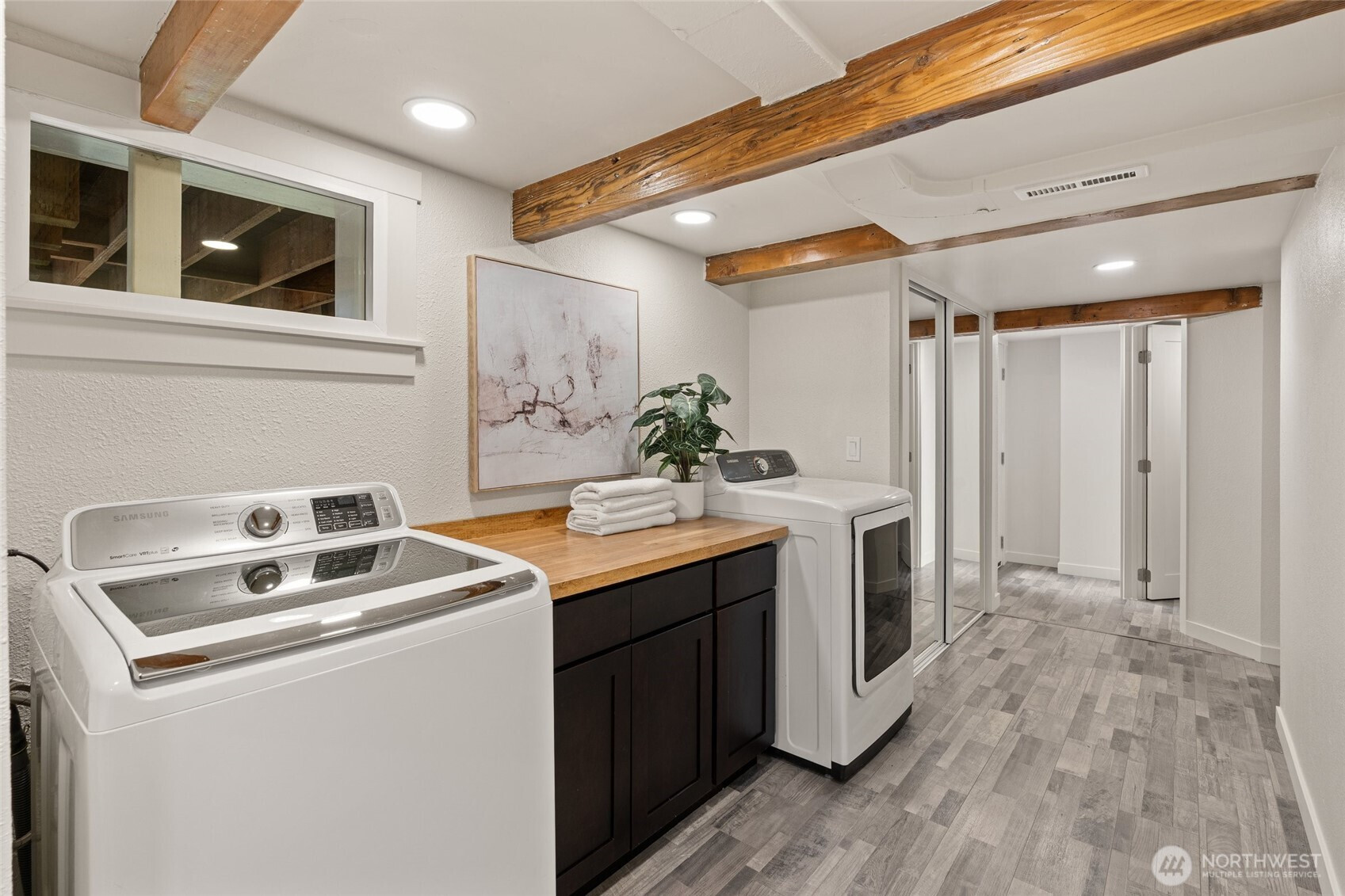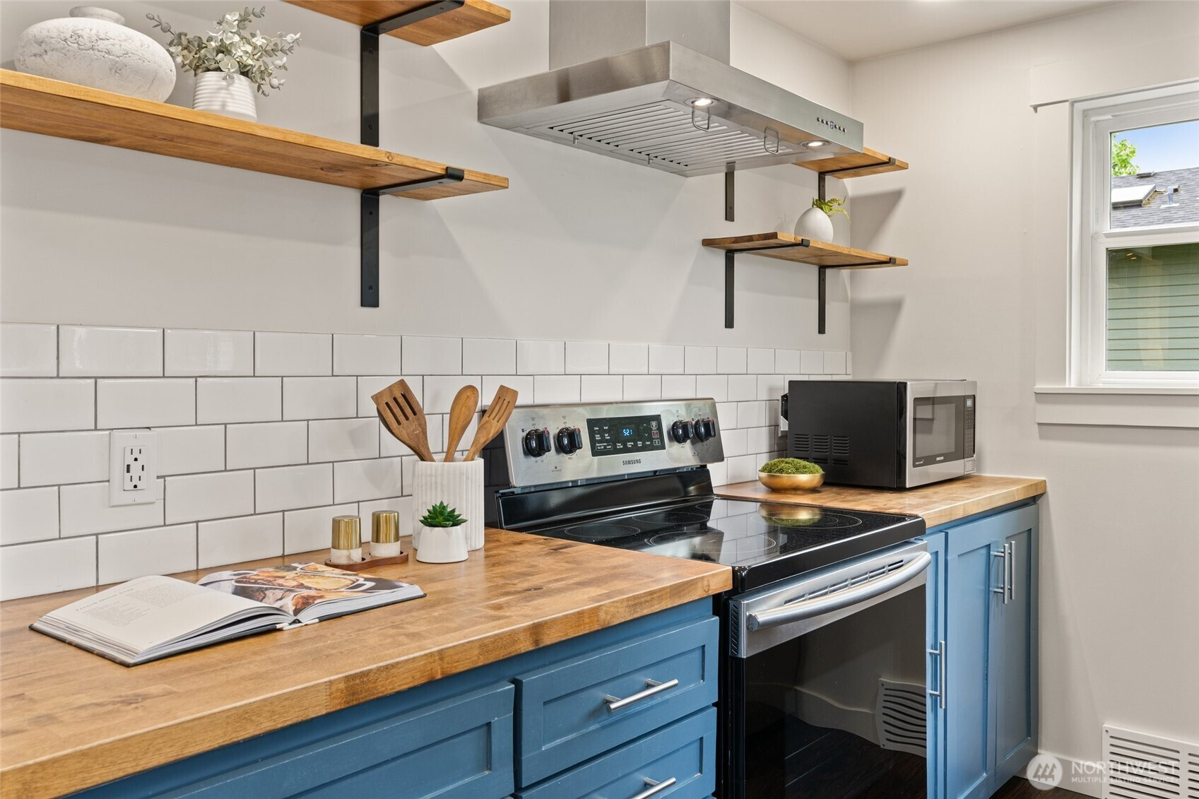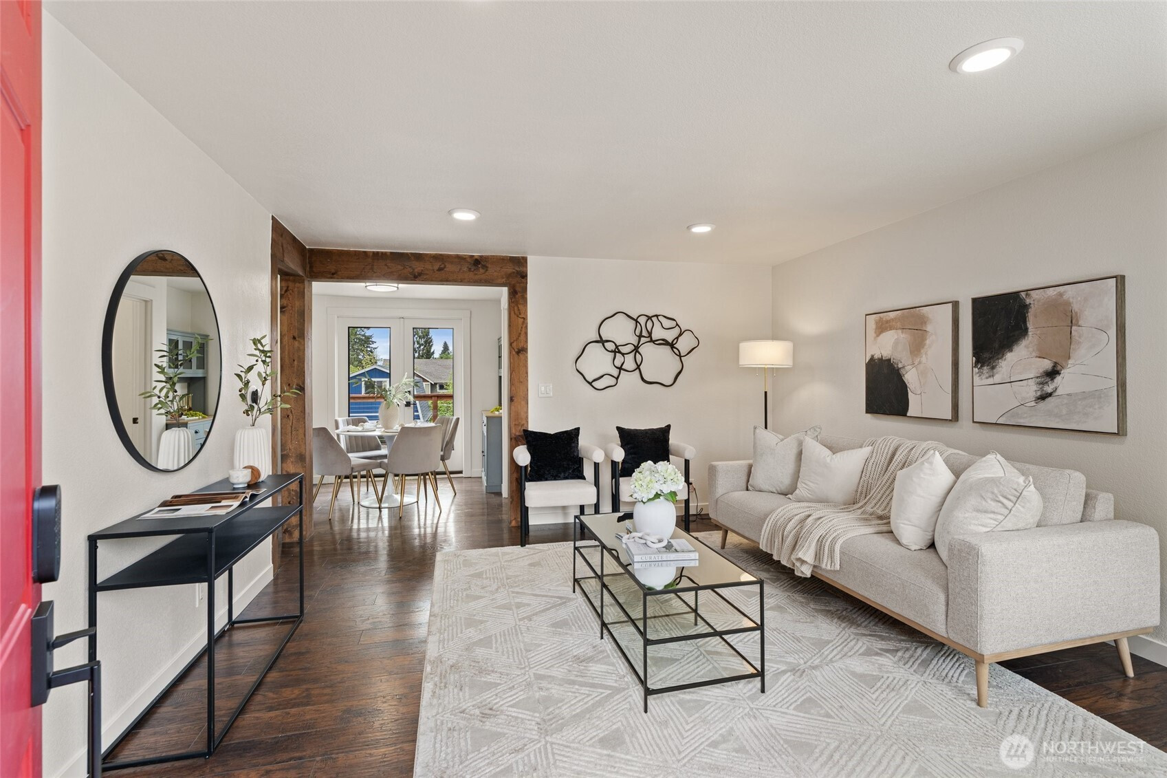 Beautifully updated and move-in ready in a well-connected Edmonds location, this home delivers the flexibility today's buyers crave. Sun-drenched living spaces flow with ease, and a generous main-floor primary bedroom features a walk-in closet. The kitchen marries warmth and craftsmanship with butcher block countertops, open shelving, and a deep farmhouse sink, while French doors open to the deck for effortless indoor-outdoor living. Just beyond, the backyard reveals a charming gazebo, shed, and room to gather under the stars or cultivate your own garden sanctuary. A fully finished daylight lower level with separate access offers elevated flex space for guests, a home office, fitness, or creative pursuits, ready to adapt to your lifestyle. Recent enhancements include remodeled bathrooms, a new roof and windows, fresh interior and exterior paint, and updated carpet and LVP flooring. Elevated everyday upgrades like Samsung appliances, central A/C, Google Nest thermostat, Yale keyless entry, Ring cameras, and a tankless water heater bring refined efficiency to everyday living. A detached garage, carport, and extended driveway provide rare parking flexibility. Perfectly positioned for easy access throughout the region, this location makes commuting and daily life refreshingly seamless. Enjoy quick trips to downtown Edmonds with its waterfront charm, vibrant culinary scene, and ferry access to Kingston and beyond, with the best of the Pacific Northwest always within reach.