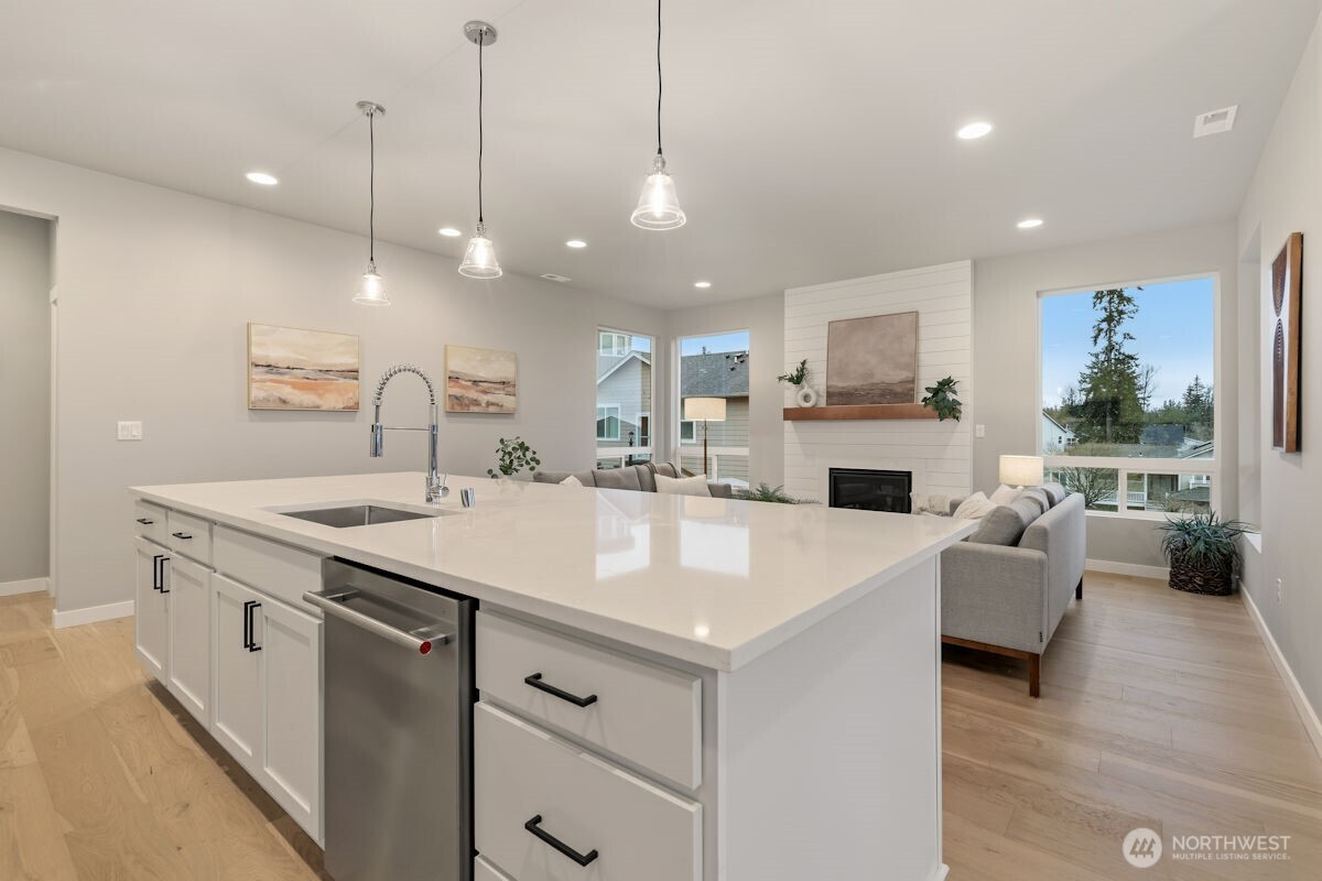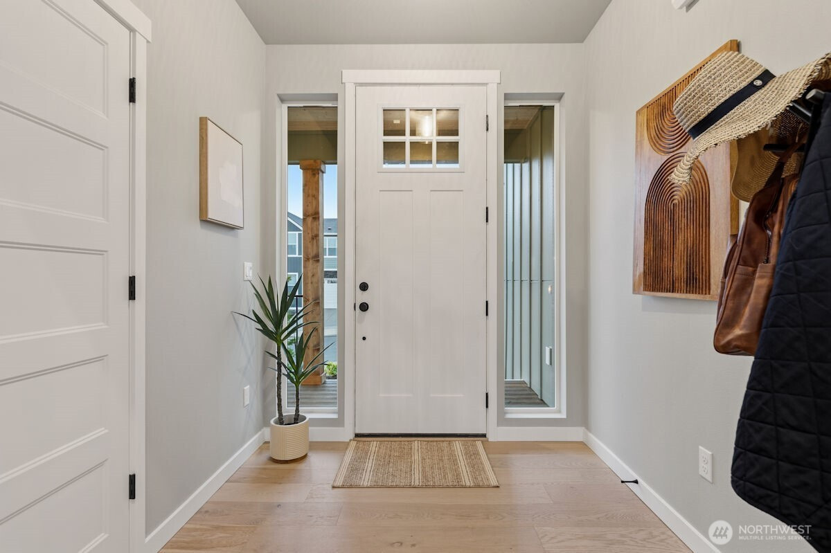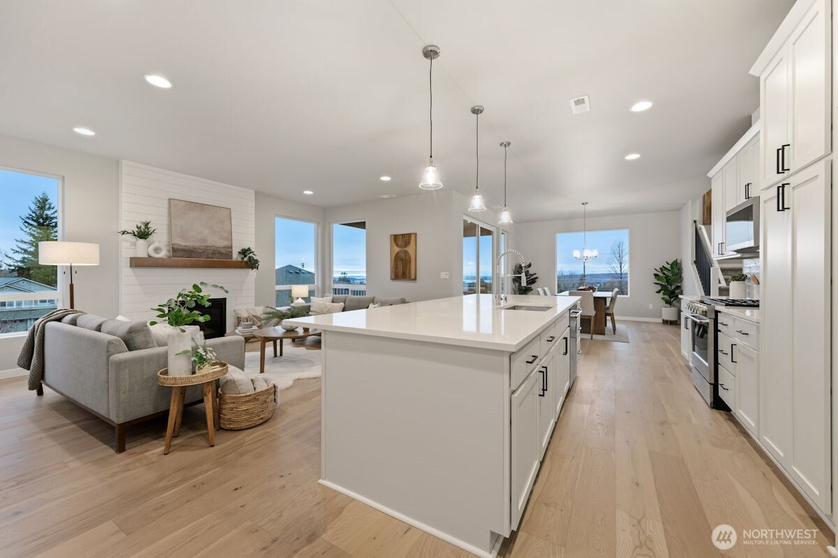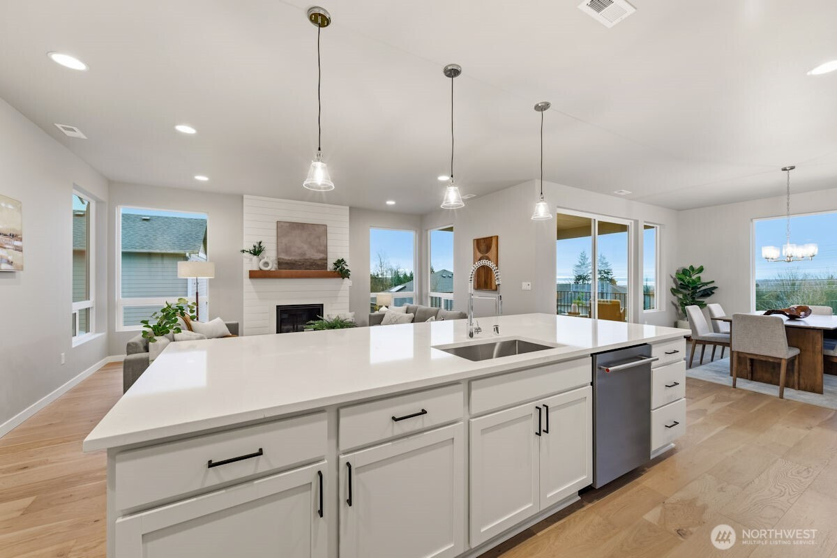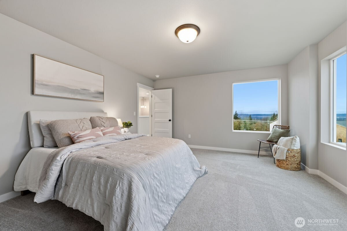 One of the most spectacular view homes on the market with unparalleled views of the Sound, Mountains and the City of Everett.Tucked away on a quiet dead-end cul-de-sac with nearby trail access, this special setting offers a peaceful atmosphere while remaining conveniently close to everyday amenities. The Rainier plan on Lot 10 is a thoughtfully designed 2,779 sq ft residence that blends comfort, style, and functionality. At the heart of the home is a chef-inspired kitchen featuring stunning quartz countertops, stainless steel appliances, a spacious island, and a generous walk-in pantry. Gorgeous engineered hardwood flooring throughout the kitchen, dining area, and great room, creating a warm and cohesive living space ideal for both everyday living and entertaining. The main level offers an inviting great room , 3/4 bathroom and a versatile office or guest bedroom that can accommodate a variety of needs. Upstairs, the relaxing owner’s suite provides a private retreat complete with a luxurious five-piece bath and ample closet space. Four additional bedrooms and a spacious bonus room offer flexibility for hobbies, media, or recreation. Additional highlights include quartz countertops throughout, open railing accents, a heat pump for efficient heating and cooling, and a covered patio perfect for enjoying the scenic surroundings year-round. Experience refined living in a truly remarkable setting at Noble Ridge.