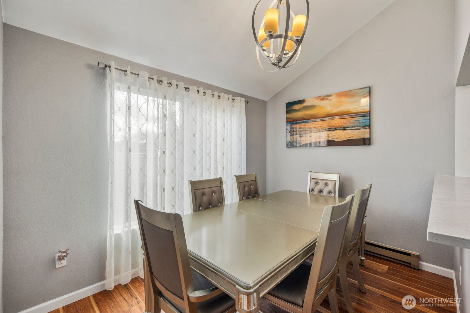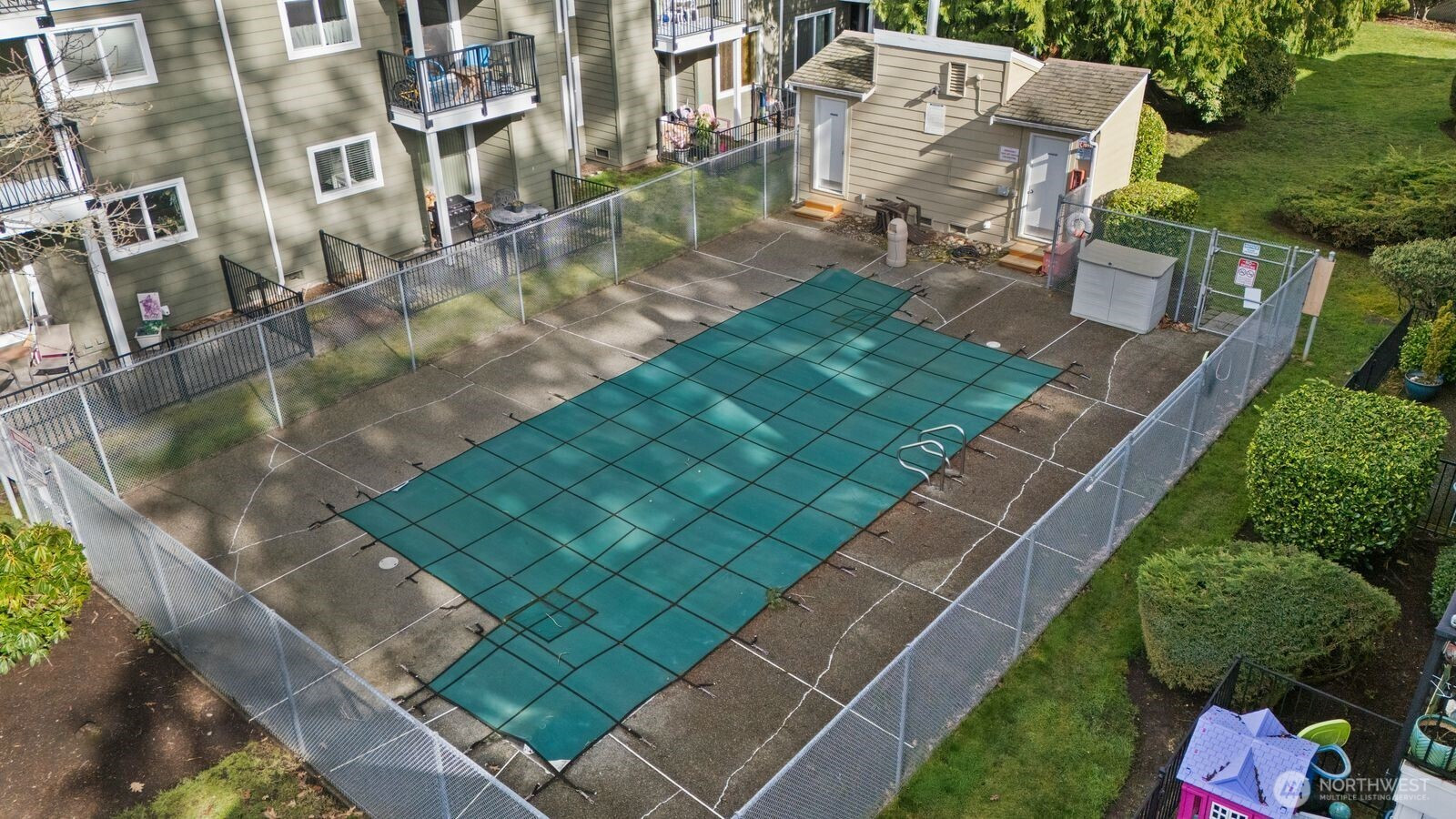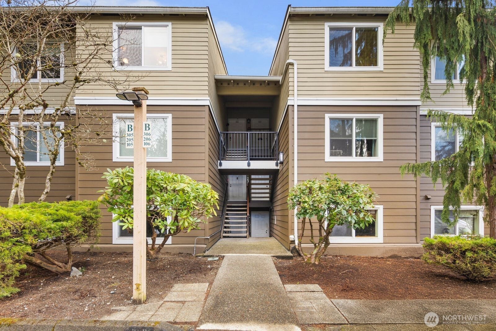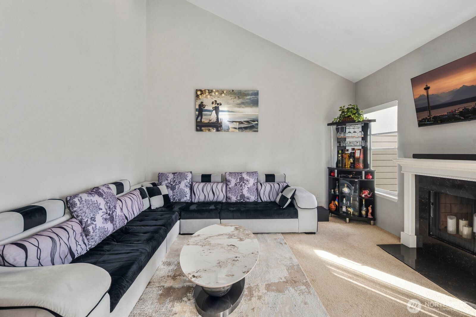 Light, bright and open, beautiful top floor unit, with vaulted ceilings in the Village by the Lake Condominiums. When you walk into this lovely condo, your first thought will be "WOW", the high ceilings, remodeled wood burning fireplace surround, the sleek quartz kitchen countertops, painted kitchen cabinets, modernized bathrooms, laminate flooring in the kitchen and dining room, scream pride in ownership. The primary bedroom features an ensuite bathroom, with a nice size second bedroom that is bright. This move in ready condo also has a patio as well as an in-unit washer and dryer. Village by the Lake Condominiums is a well maintained condo complex with newer roofs and siding with an outdoor pool, athletic courts, game room, ample guest parking and access to Beverly Lake. Conveniently located near restaurants, coffee shops, shopping, Boeing, Hwy 526, and I5.