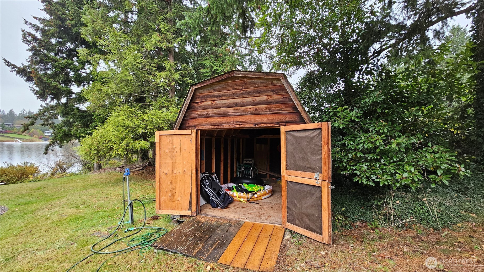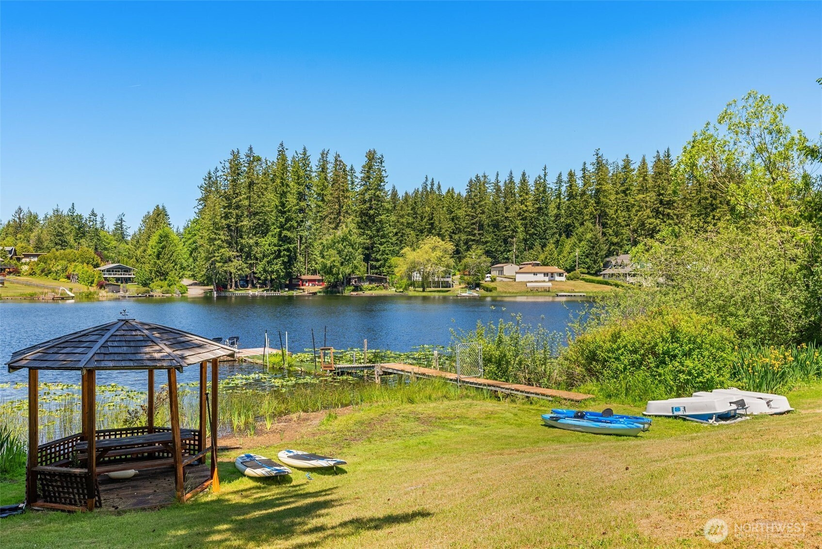 Motivated seller!! Charming remodeled lakehouse on quiet Lake Martha, great for swimming (no gas motors), and year-round fishing from your own private dock. The house is set on a huge double lot w/ mature landscaping, fruit trees, offering a serene backyard oasis where you can relax, watch eagles, bunnies, & ducks. Enjoy beautiful sunsets on your covered patio or gather around the firepit. Over $300K in upgrades: new plumbing, electrical, HVAC, septic, flooring, insulation, A/C, to name a few. Detached 2-car garage with EV charger, AND there's also a Shop. Lots of opportunities to expand, finish out the basement or attic, or make the Shop into an ADU. Easy access to I-5 and Lakewood shops - Target /Costco. Start making memories on the lake!