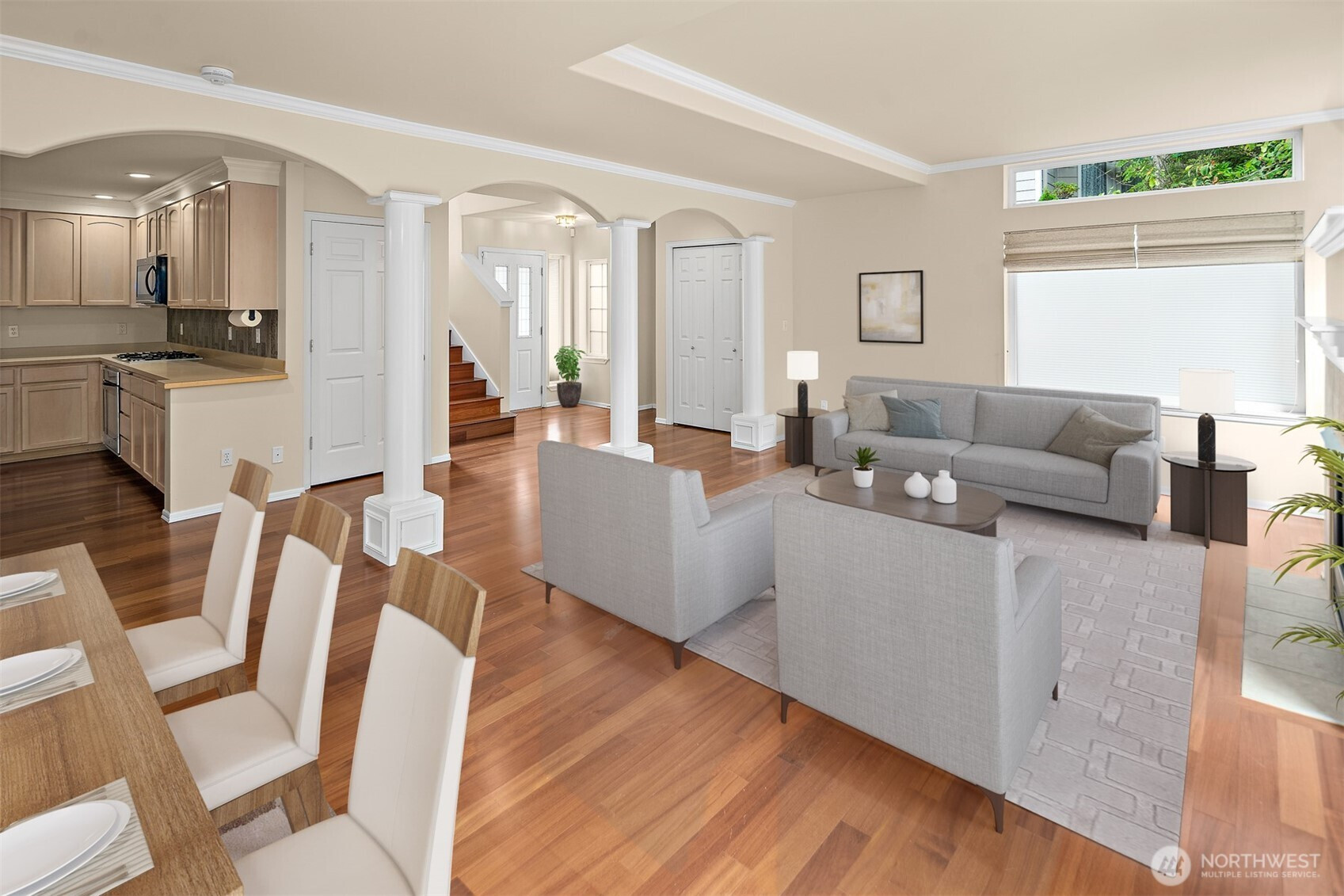 Mukilteo's Finest ~ Enjoy the open floor plan and privacy in this spacious 2 BEDROOM END-UNIT condo in the beautiful gated community of Possession Ridge! 1,529 square feet, fresh interior paint, stunning hardwood floors & custom millwork throughout. The open-concept great room is perfect for entertaining, complemented by a kitchen featuring a Brand New SS Refrigerator & 2022 SS Stove & Dishwasher. Upstairs laundry room & 1/2 Bath with Newer Stacked Full Size Washer & Dryer, 2023 Hot Water Heater and a loft area that is perfect for WFH. Use your green thumb in the back garden area or relax on your private deck. Comfort meets convenience with 2023 mini-split A/C, radiant in-floor gas heating & a huge walk-in closet in the primary suite. Easy level entry & elevator access from the secure garage with 2 Parking Spaces & storage closet ~ this one truly has it all!