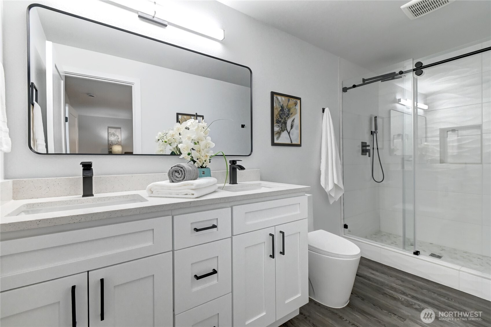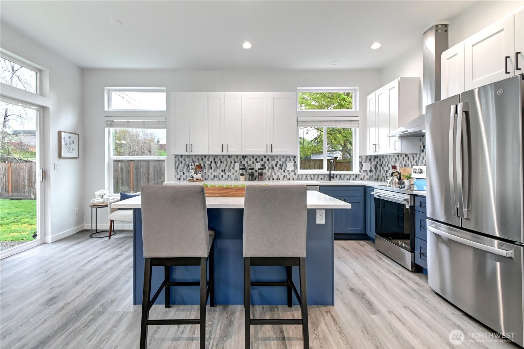 Step into a home thoughtfully designed with comfort, quality and everyday living in mind in this beautifully updated, move-in ready residence in the sought-after Soper Hill area of Lake Stevens. This inviting split-level layout features just four steps between the two levels and has been refreshed from top to bottom with attention to detail throughout. Soaring ceilings and expansive windows fill the open-concept living spaces with natural light, creating a bright and welcoming atmosphere you’ll love coming home to. The stunning remodeled kitchen is the true heart of the home, featuring a large island, quartz countertops, abundant cabinetry and brand-new stainless-steel appliances, perfect for both daily living and entertaining. The spacious primary suite offers a peaceful retreat with a charming bay window, walk-in closet and private ensuite bath. Durable LVP flooring, modern white doors with sleek black hardware, and energy-efficient LED lighting add style and function throughout. Enjoy a fully fenced, level backyard backing to open space, ideal for relaxing evenings, play, or gatherings, on a generous lot tucked in a quiet cul-de-sac. Major updates include a new roof, siding, fresh interior/exterior paint, and a new furnace. Pre-inspected with a one-year home warranty, this home offers comfort, convenience and peace of mind. Located in a highly rated school district, this Lake Stevens gem offers easy access to I-5, Paine Field, public transit, shopping, dining and the lake.