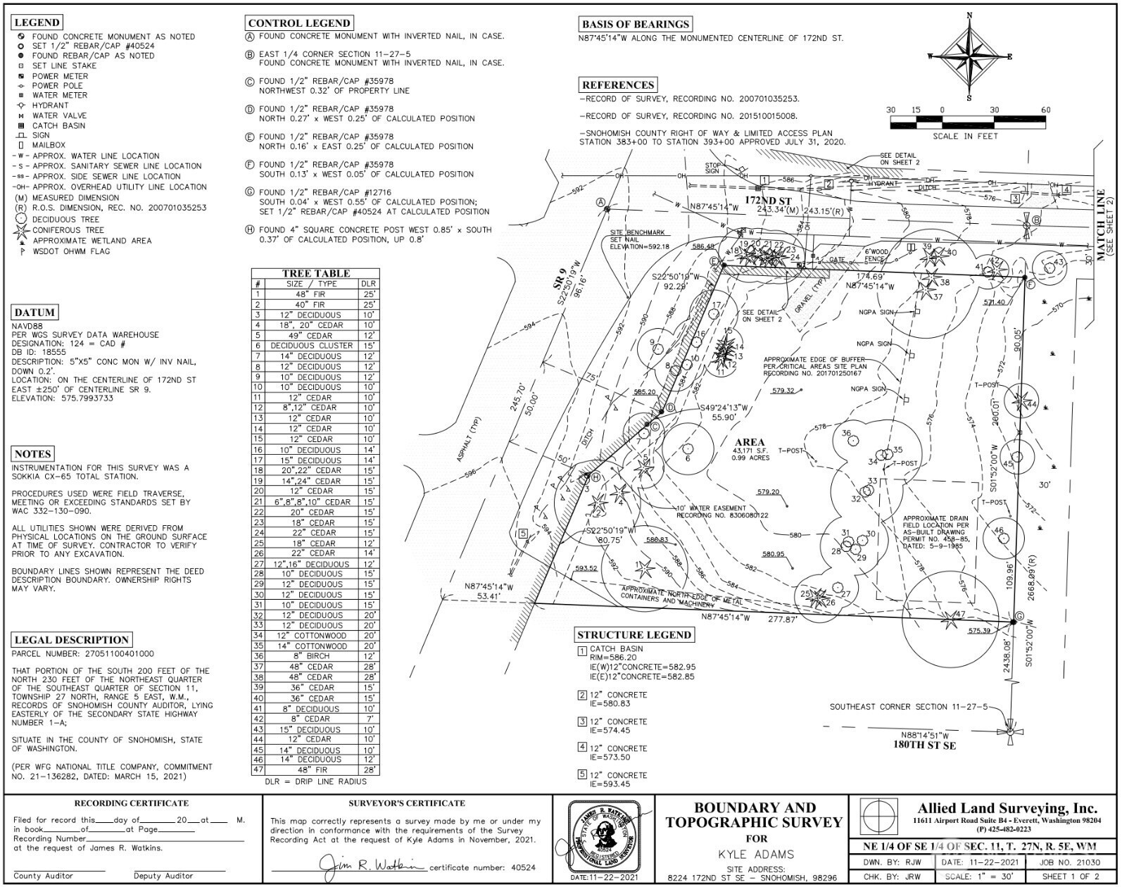 Situated on a prime corner lot along State Route 9, this 1.03-acre (approx. 44,867 SF) CRC-zoned parcel offers a strong development opportunity for an owner-user or investor. The zoning allows for a wide range of uses including daycare, auto repair, church, retail, office, restaurant, veterinary clinic, and more. With power and water available at the property, permits and plans already in hand, and an average of 29,000 cars passing daily, the site is well positioned for a quick path to construction. Its placement on Hwy 9 and minutes from SR-522 gives it excellent visibility and access. This empty lot is ready for someone to bring their vision to life.