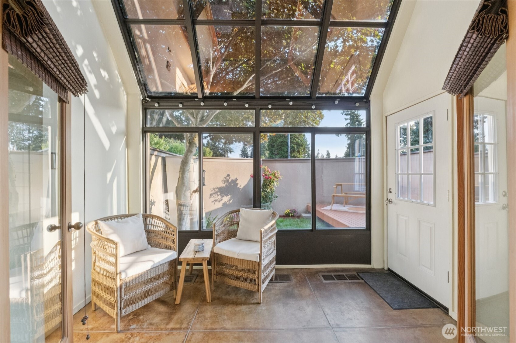 Spacious 2br, 1.5ba townhouse with generous storage in a prime location just outside Seattle and minutes from beautiful downtown Edmonds. The large primary suite includes a walk-in closet and private balcony, while the luminous solarium fills the home with natural light and opens to a private deck for outdoor enjoyment. Fresh sod, mulch, fresh sealant on the deck. Recently updated with fresh paint, new carpeting, and modern kitchen appliances, home is move-in ready. Features include recessed/track lighting, a convenient nested washer/dryer, and a low-maintenance design. Complete with a private garage and another one for parking, this townhouse blends comfort, style, and convenience in unbeatable setting. Pets are allowed. Savings in Packet!