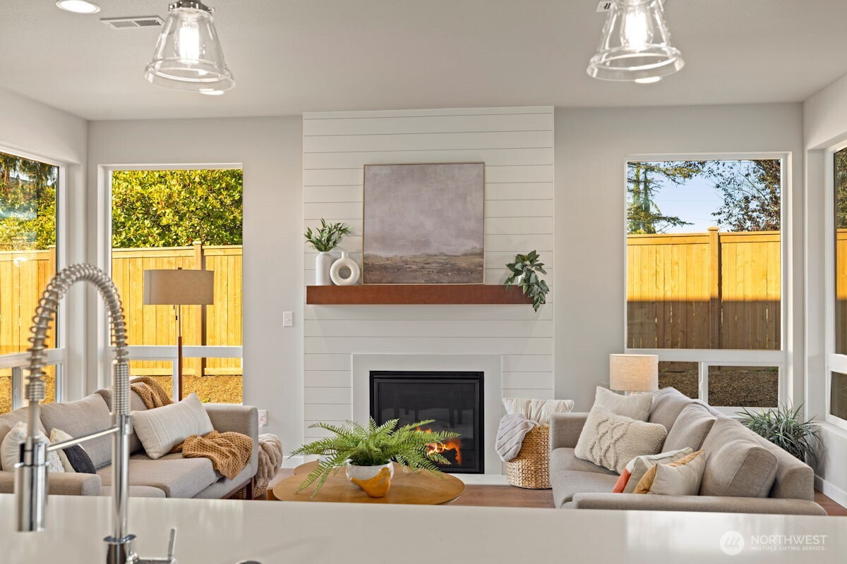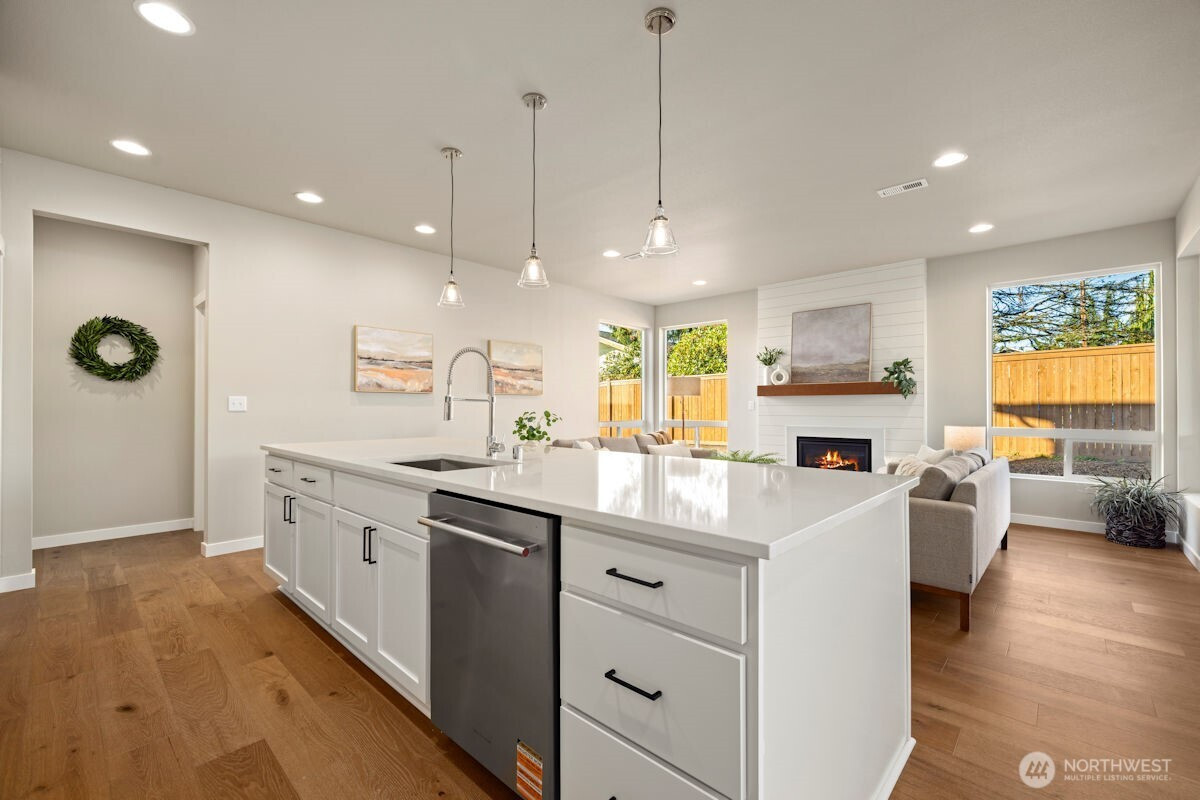 Noble Ridge is an exquisite small view community of just 14 homes that sits high above the bluff offering spectacular views of the Olympic Mountains and the Puget sound with trail access on a dead end cul-de-sac. The RAINIER on lot 1 is a thoughtfully designed 2779 sqft home, with a chef's dream kitchen offering an 8' island with white soft closing cabinets and gorgeous 3cm quartz countertops. The main level offers an inviting great room, office/guest bedroom, and walk-in pantry. Upstairs you’ll find the relaxing owner’s suite complete with a luxurious 5-piece bath, an additional 3 bedrooms, and a versatile loft. This corner lot home has added picture windows to take in the views. It is absolutely gorgeous and move in ready!