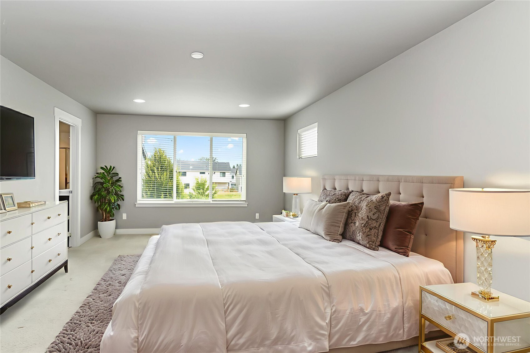 Prime Location!The property has completed refreshing the front & back yard & ready for upcoming Spring & Summer seasons.This stunning and spacious home offers 4 bedrooms, 2.75 bathrooms, and an upstairs bonus room or a huge loft entertainment area. Featuring soaring ceilings and abundant natural light throughout, the main level includes a den or home office with a ¾ bath, ideal for guests.The primary suite boasts a luxurious five-piece bath with double vanities and a walk-in closet. The modern kitchen features a generous island with quartz countertops, rich dark cabinetry, stainless steel appliances, and a walk-in pantry.The inviting living room showcases a gas fireplace framed by built-in bookshelves, while oversized sliding doors open to a covered patio and a fully fenced backyard, ready for your personal garden design.Located in a desirable neighborhood within the Lake Stevens School District, this home offers exceptional convenience just minutes from I-5, Hwy 2, and Hwy 9.