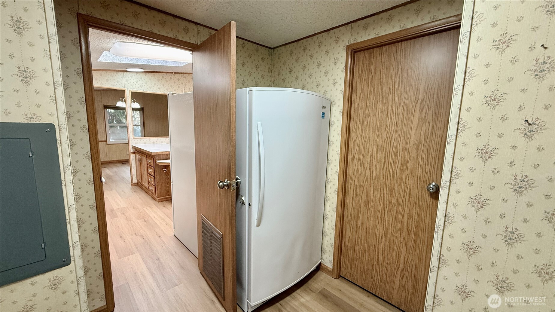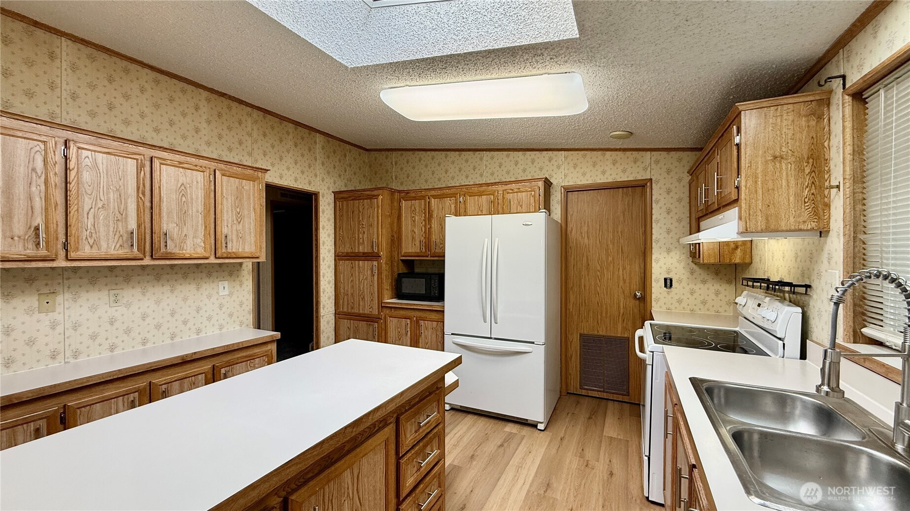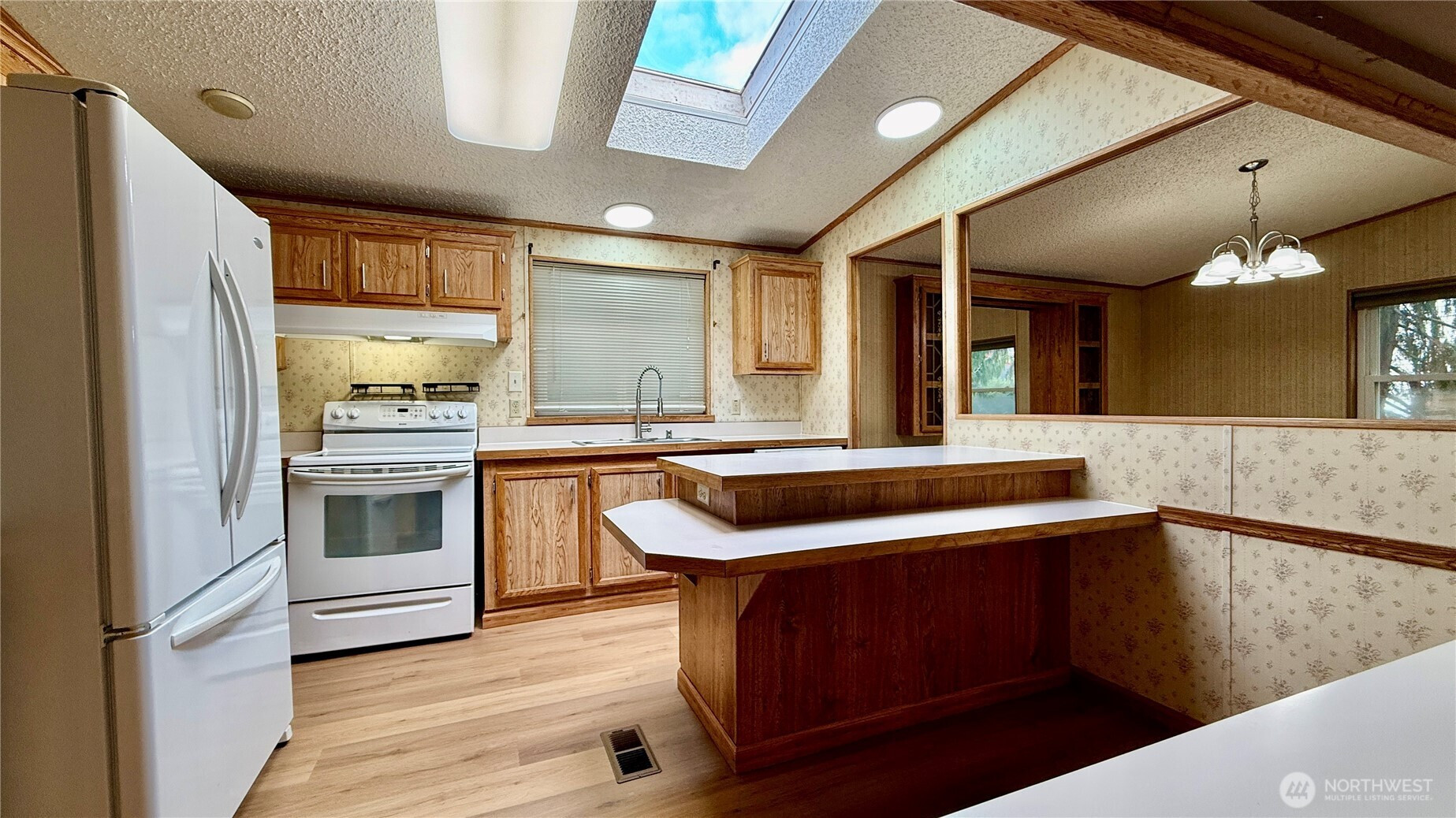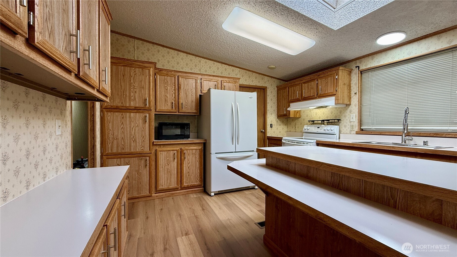 Well-maintained 1,512 sq ft home offering 3 bedrooms and 2 bathrooms in a Marysville all-age community. Vaulted ceilings and an open living, dining and kitchen layout create an inviting, spacious feel. Kitchen features island with eating bar and abundant cabinetry. Recent upgrades include new LVP flooring in main living areas, new carpet in bedrooms, insulated windows, newer roof and LED lighting throughout. Heat pump provides efficient heating and A/C. Generous primary suite includes makeup vanity area, two walk-in closets and a large attached bath with dual sinks and oversized walk-in shower. Spacious laundry/utility room provides additional storage and includes full-size upright freezer. Covered entry with ramp. Rear access to the park from 84th offers convenient entry and exit.