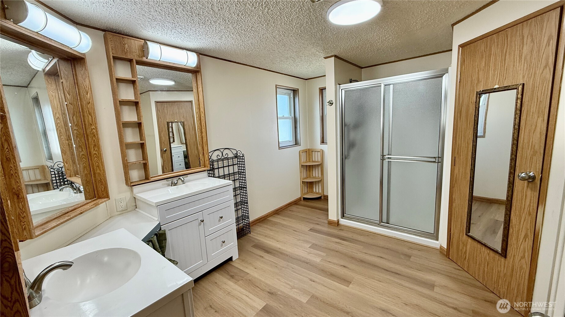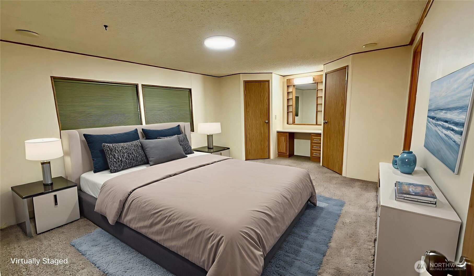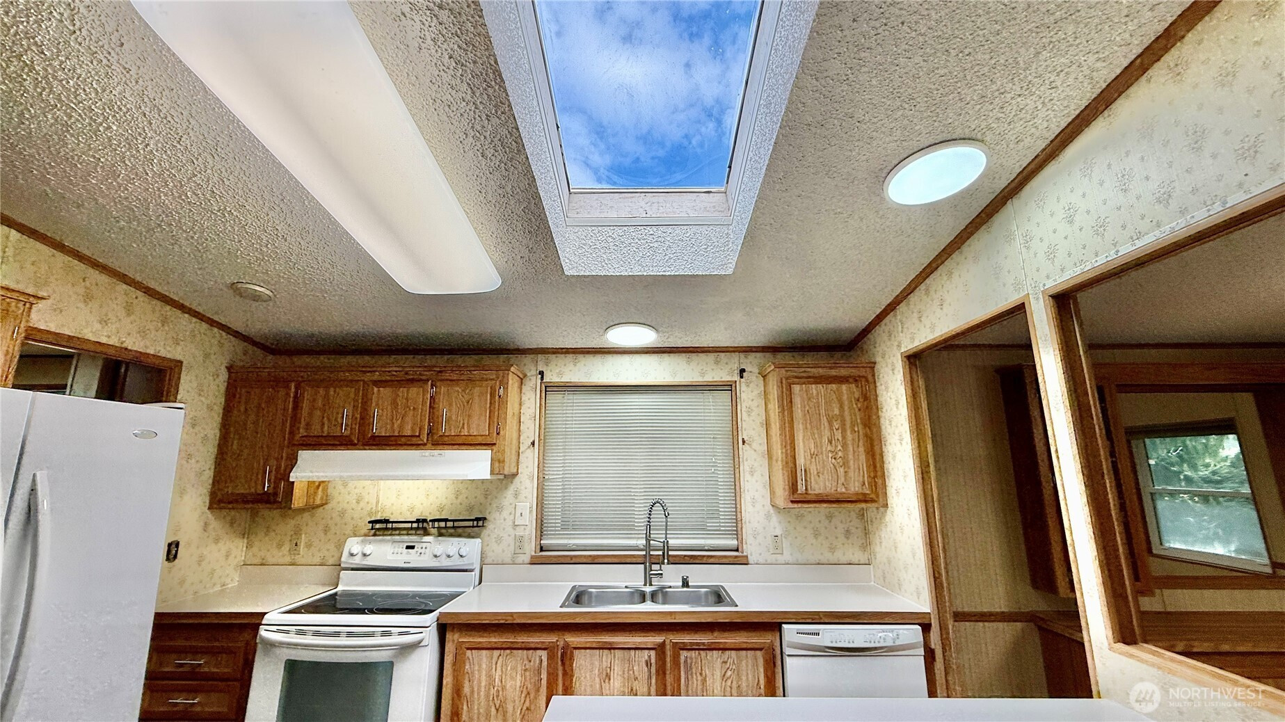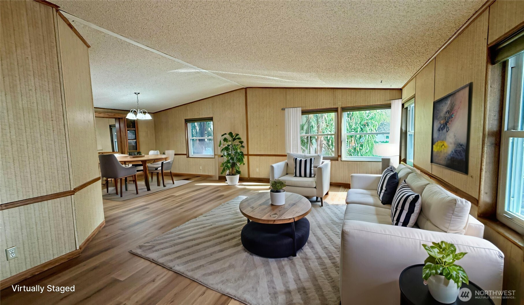 Well-maintained 1,512 sq ft home offering 3 bedrooms and 2 bathrooms in a Marysville all-age community. Vaulted ceilings and an open living, dining and kitchen layout create an inviting, spacious feel. Kitchen features island with eating bar and abundant cabinetry. Recent upgrades include new LVP flooring in main living areas, new carpet in bedrooms, insulated windows, newer roof and LED lighting throughout. Heat pump provides efficient heating and A/C. Generous primary suite includes makeup vanity area, two walk-in closets and a large attached bath with dual sinks and oversized walk-in shower. Spacious laundry/utility room provides additional storage and includes full-size upright freezer. Covered entry with ramp. Rear access to the park from 84th offers convenient entry and exit.
