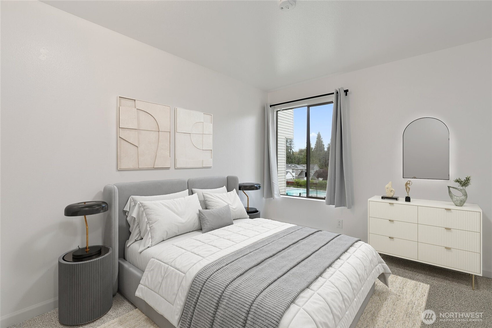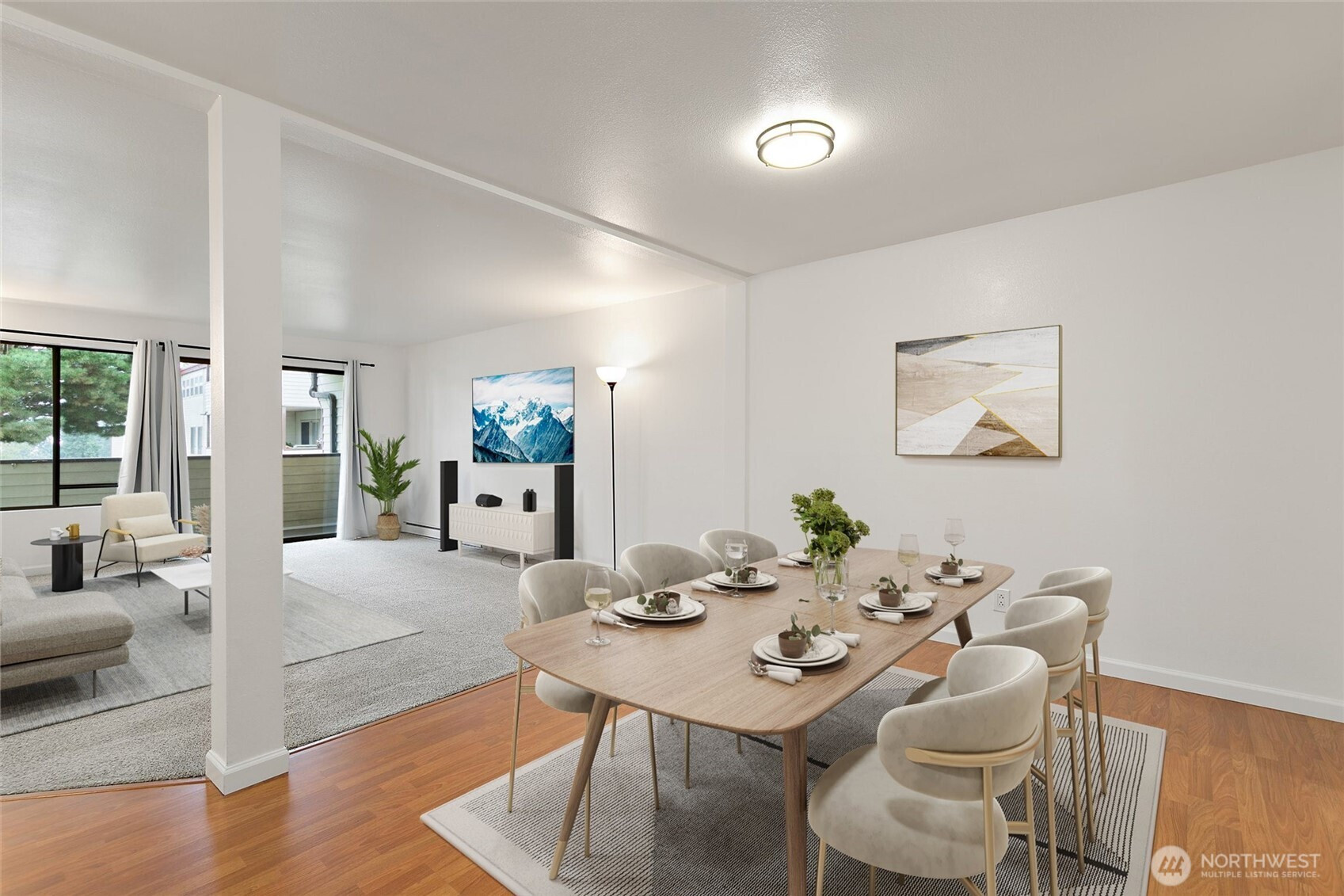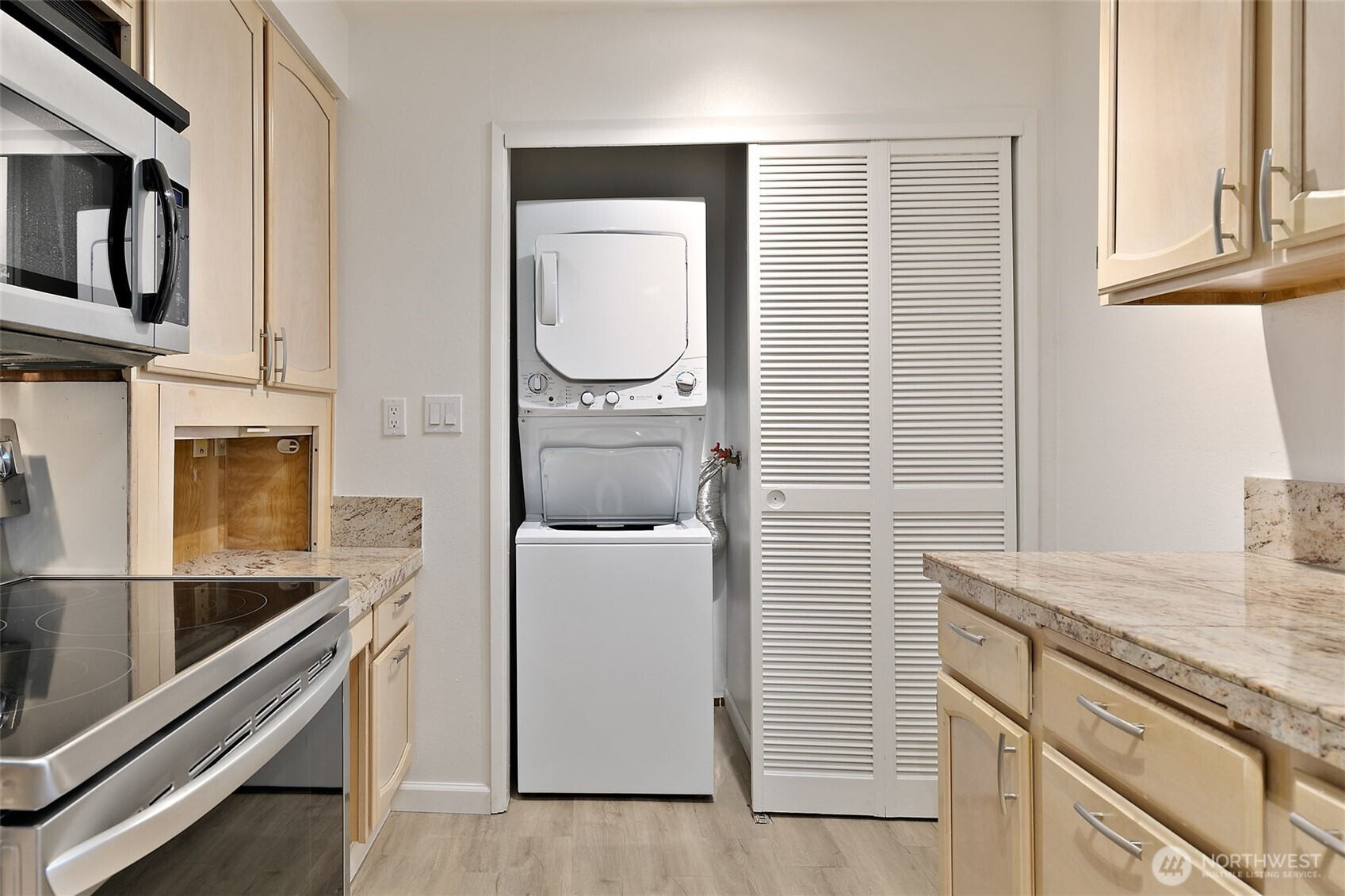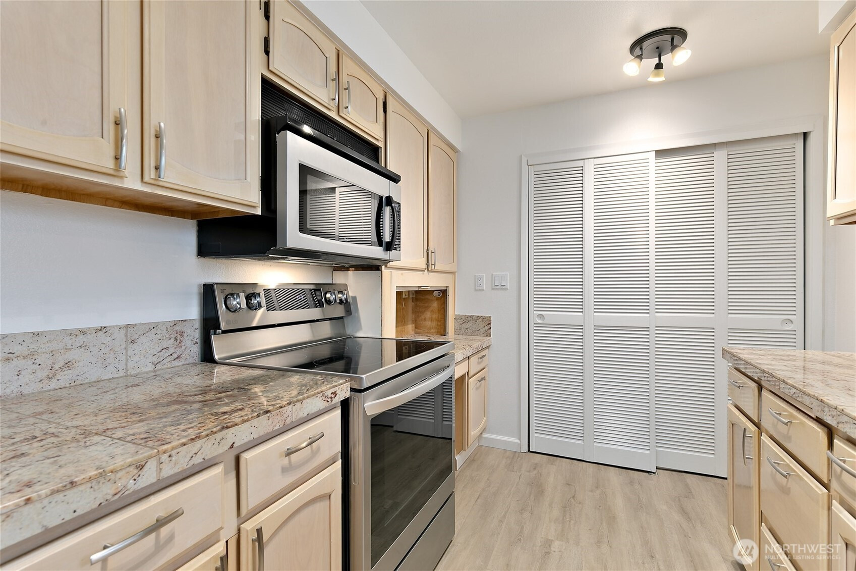 Welcome to this spacious Edmonds condo in a highly desirable community, just moments from the fantastic Edmonds Bowl. Offering 1,089 sq ft with 2 bedrooms and 1.75 baths, this home combines comfort and convenience. Secure entry and elevator access make coming and going easy. Inside, you'll find generous living spaces, including a dining area off the kitchen and a bright living room that opens to a private balcony overlooking the serene courtyard—perfect for enjoying sunsets. The large primary suite features a walk-in closet and stunning super lux ensuite bath. Additional highlights include in-unit laundry, garage parking, storage locker, and access to resort-style amenities such as the pool, sauna, and lush gardens.