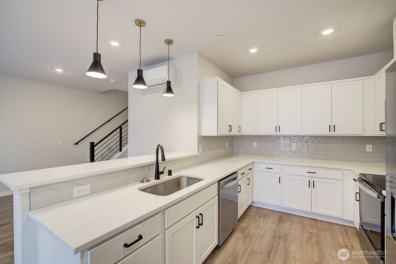 Well cared for newer unit in sought after 21 Degrees. Quick commute to I-5, Marysville, Lake Stevens and more. Quiet complex located near brand new shopping center and restaurants. Low maintenance living with shared spaces and efficient HOA. This lovely home has a spacious and open floor plan designed for comfort. The kitchen is equipped with Quartz countertops, Big Pantry, Newer SS appliances, and tons of work space and flows right into the living room for easy entertaining and relaxation. This home is Light and bright through-out facing south by southwest. The Primary suite provides a private bath with double vanity, big walk in shower and huge walk in closet. Bedroom #2 and #3 are large and airy, plenty of space for a variety of uses. The Ductless mini splits provide efficient heating and AC in each living area and bedroom. Loft area at top of stairs for a reading nook, library or study space. The attached 2 car garage is ample for storage and accessed easily with remote door opener. Secure and safe complex. This crisp unit is freshly cleaned and ready for new owners.