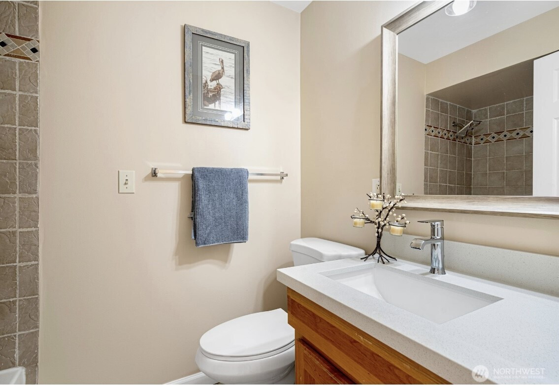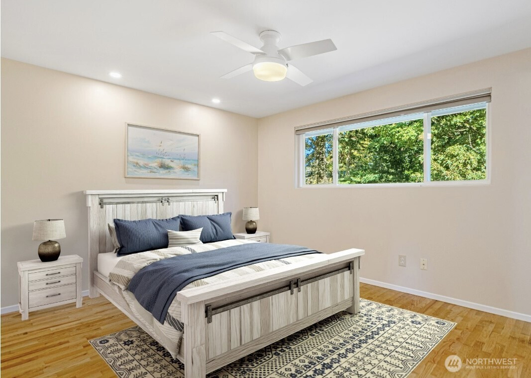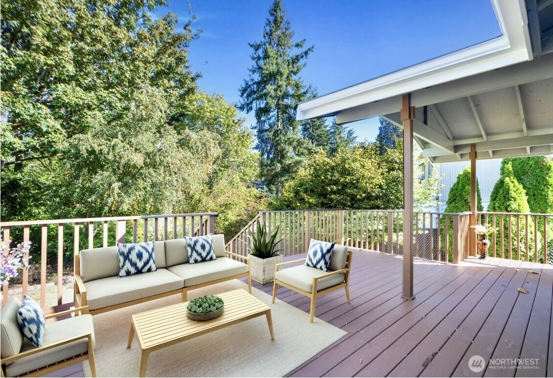 Move-in ready gorgeous 5 br,3ba southern exposure Edmonds Seaview community home waiting for you. Upstairs hardwood / tile flooring , Kitchen tile is brand new. Downstair newer laminate flooring. Gas FP inserts upstairs/downstairs. Private back entrance to downstair would make a great MIL. Lg storage rm (Office or den) off laundry rm. RV parking. The large deck faces lg quiet private backyard. Park- like backyard is a great place for summer BBQ party. Minutes to Ferry, beach, downtown Edmonds , light rail station, I-5 /405 and parks. The 0.28 acre lot make your landlord dream come true. The new zoning allows to build 2 ADUs for extra income. The roof is less than 5 years old. New exterior/interior painting . vacant, free to show anytime.