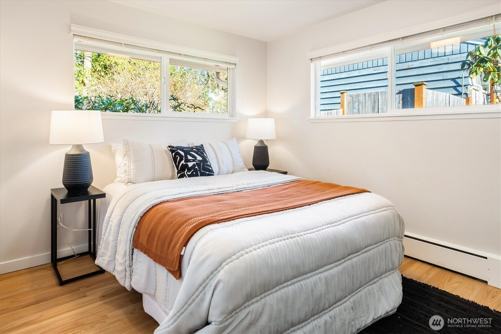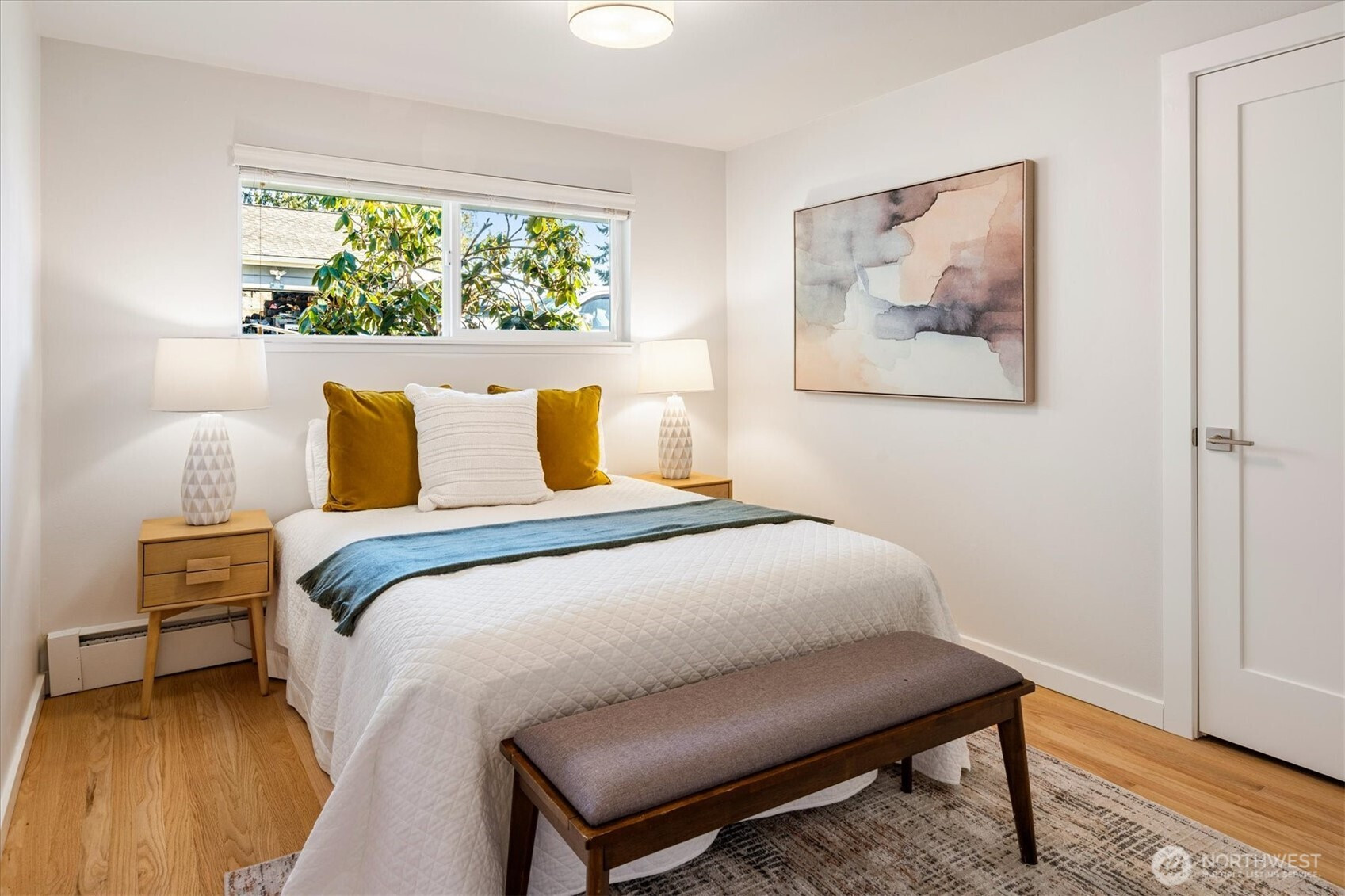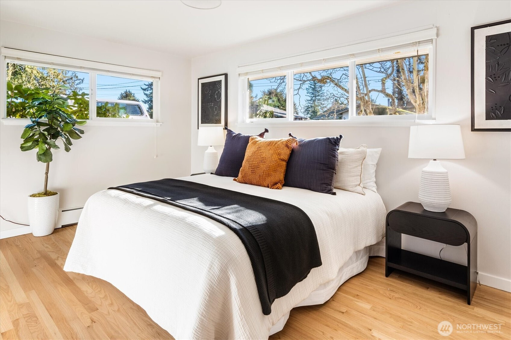 Updated one-level Mid Century in the sought after Edmonds community. Enter into a light filled living room with large picture windows and gleaming hardwood floors throughout the house. This home features a newly updated eat-in kitchen, which includes new appliances, counters and backsplash tile. Three bedrooms and an updated full bath tucked together, plus an additional ¾ bath & laundry off the kitchen. An easy layout for everyday living. Plus: Hi-efficiency Combi boiler, instant hot water, new roof on house & shed, freshly painted inside & out. Sitting on a spacious fenced lot with large patio in the backyard with room to entertain, garden, play, or simply unwind. Plus: the backyard shed offers so many possibilities. Attached garage & driveway parking. Easy access to I-5. A short drive to popular DT Edmonds with acclaimed restaurants, boutique stores and coffee shops. See a show at the Edmonds Performing Arts Center. Wander along the waterfront or sit and watch the ferries float by. Let your next story start here!