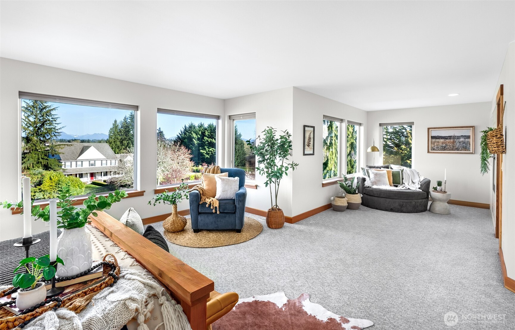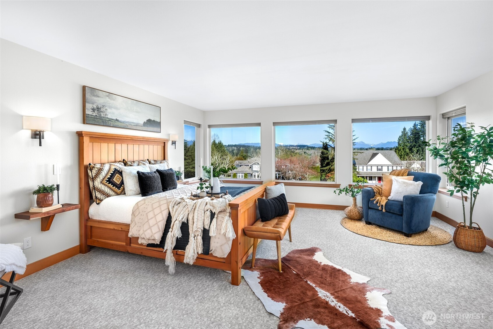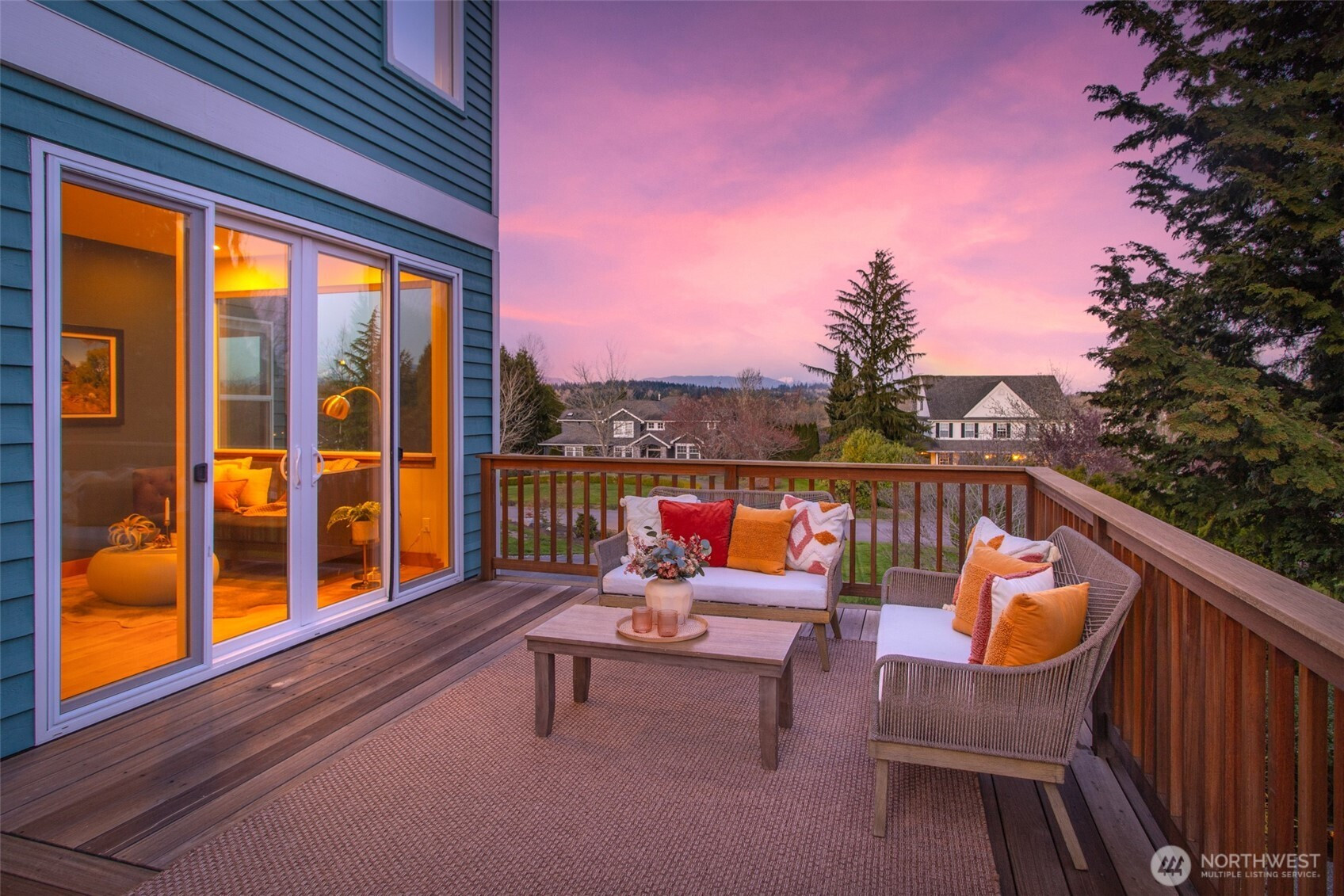 Tucked minutes from historic downtown Snohomish, this stunning Sunrise Estates home offers a blend of refined comfort and PNW beauty. Exquisitely updated with the highest quality designer finishes at every turn. A true gem that must be experienced in person. Upon entering you are welcomed by a gorgeous custom-built banister and gleaming hardwood floors, setting the warm, luxurious tone. Two living spaces provide flexibility for relaxation and entertaining, one centered around a cozy fireplace, the other framed by picture windows showcasing Cascade Mountain views. The kitchen features brilliant cabinetry, deluxe finishes, and top-tier appliances. All complemented by a dining nook and formal dining room. A main-level office and nearby powder bath provide a quiet work-from-home setup. Upstairs, two spacious guest bedrooms provide comfort, including walk-in closets, and a Jack-and-Jill-style bath. The primary suite is filled with natural light and complete with a reading nook and double-sided fireplace. The spa-like ensuite features a soaking tub, walk-in shower, and a walk-in closet with custom walnut storage. Downstairs, a bonus room offers additional living space. Outdoors, the home continues to impress with park-like landscaping, sprinkler systems, and a spacious batu deck positioned to take in mountain views. An oversized three-car garage boasts RaceDeck flooring & built-in storage, while ample parking & a well-designed backyard complete this exceptional property.