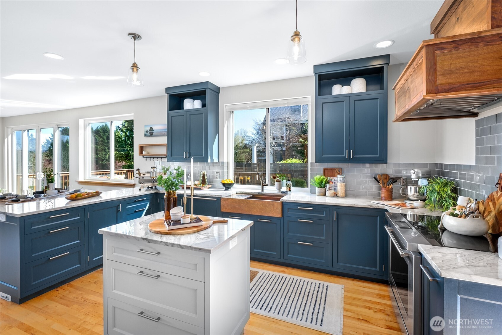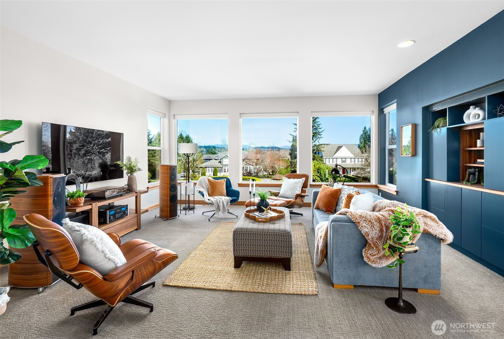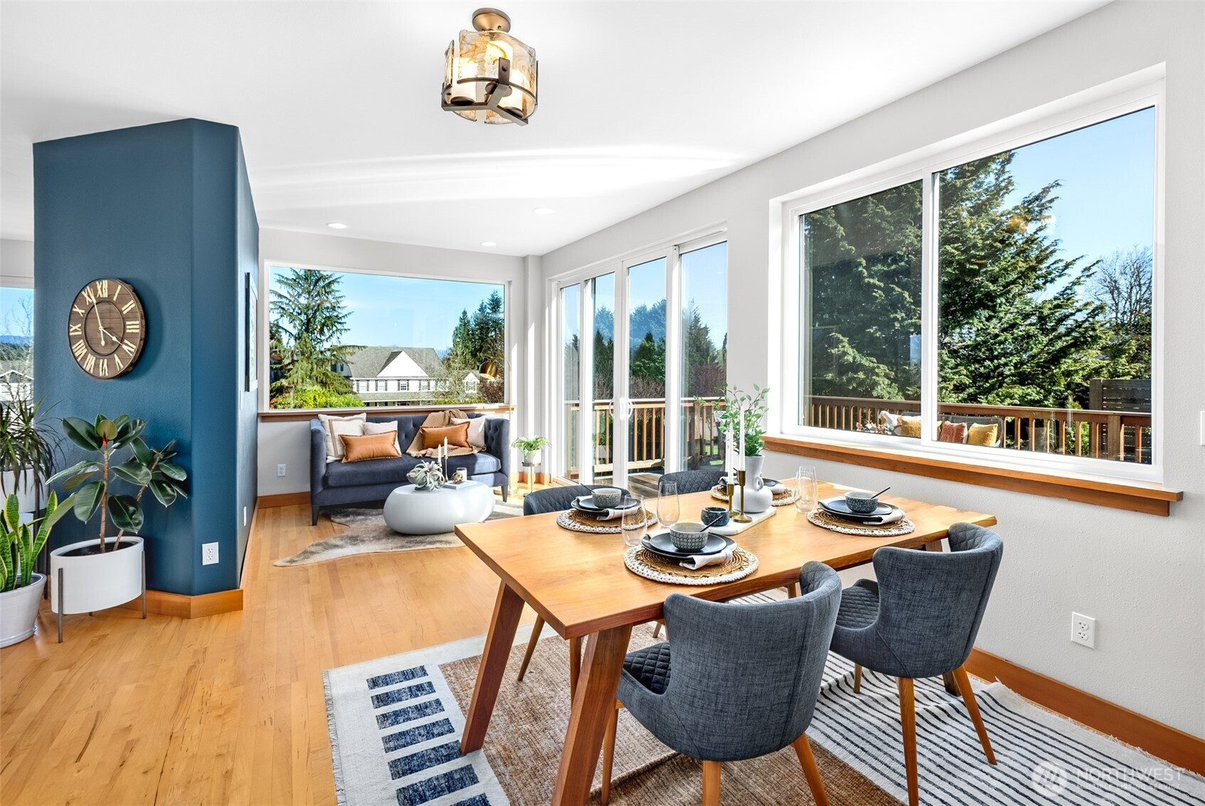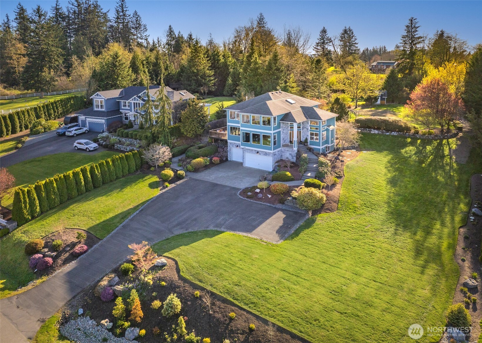 Tucked minutes from historic downtown Snohomish, this stunning Sunrise Estates home offers a blend of refined comfort and PNW beauty. Exquisitely updated with the highest quality designer finishes at every turn. A true gem that must be experienced in person. Upon entering you are welcomed by a gorgeous custom-built banister and gleaming hardwood floors, setting the warm, luxurious tone. Two living spaces provide flexibility for relaxation and entertaining, one centered around a cozy fireplace, the other framed by picture windows showcasing Cascade Mountain views. The kitchen features brilliant cabinetry, deluxe finishes, and top-tier appliances. All complemented by a dining nook and formal dining room. A main-level office and nearby powder bath provide a quiet work-from-home setup. Upstairs, two spacious guest bedrooms provide comfort, including walk-in closets, and a Jack-and-Jill-style bath. The primary suite is filled with natural light and complete with a reading nook and double-sided fireplace. The spa-like ensuite features a soaking tub, walk-in shower, and a walk-in closet with custom walnut storage. Downstairs, a bonus room offers additional living space. Outdoors, the home continues to impress with park-like landscaping, sprinkler systems, and a spacious batu deck positioned to take in mountain views. An oversized three-car garage boasts RaceDeck flooring & built-in storage, while ample parking & a well-designed backyard complete this exceptional property.
