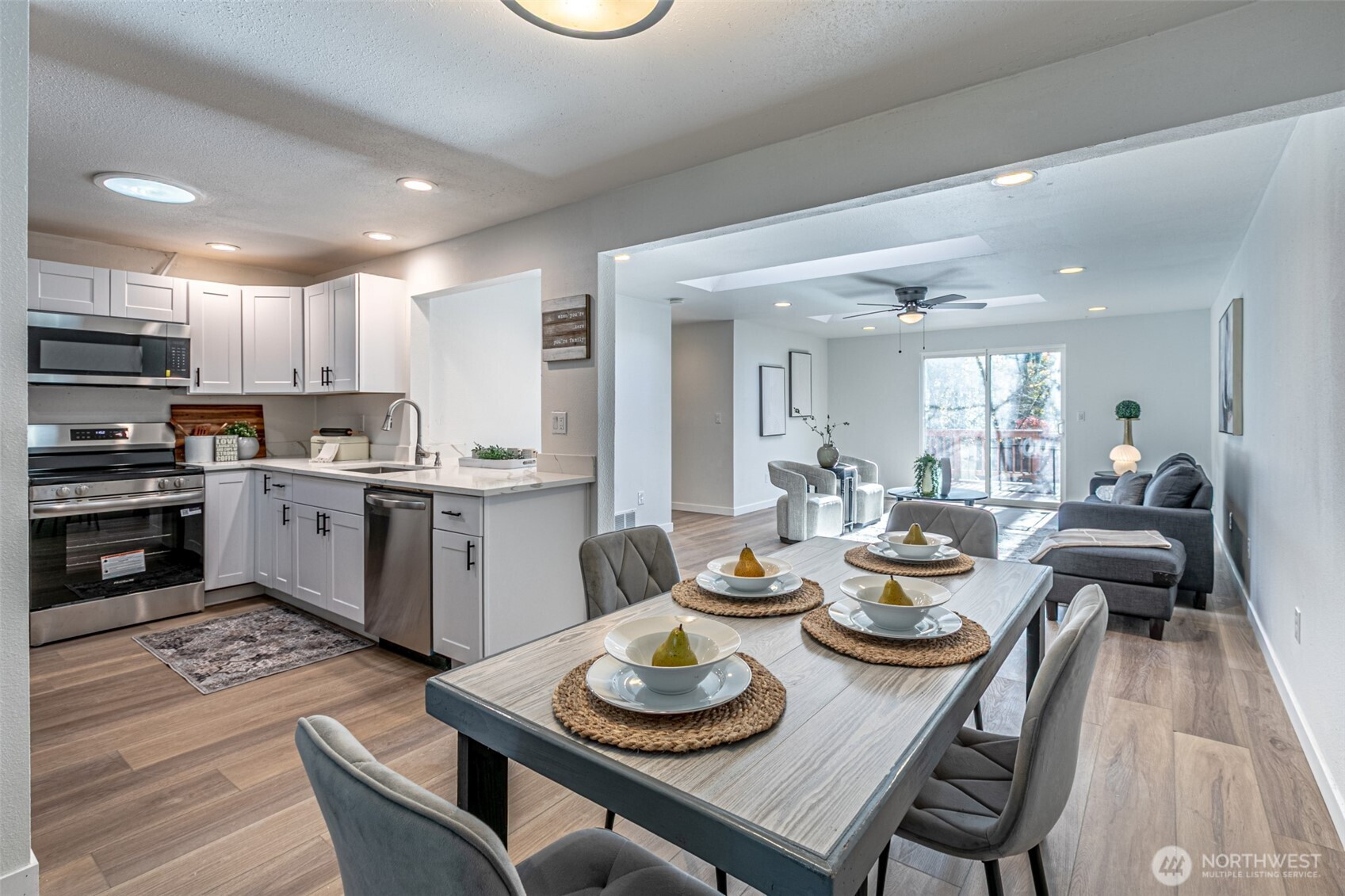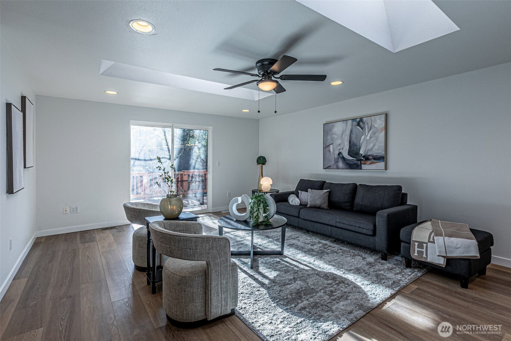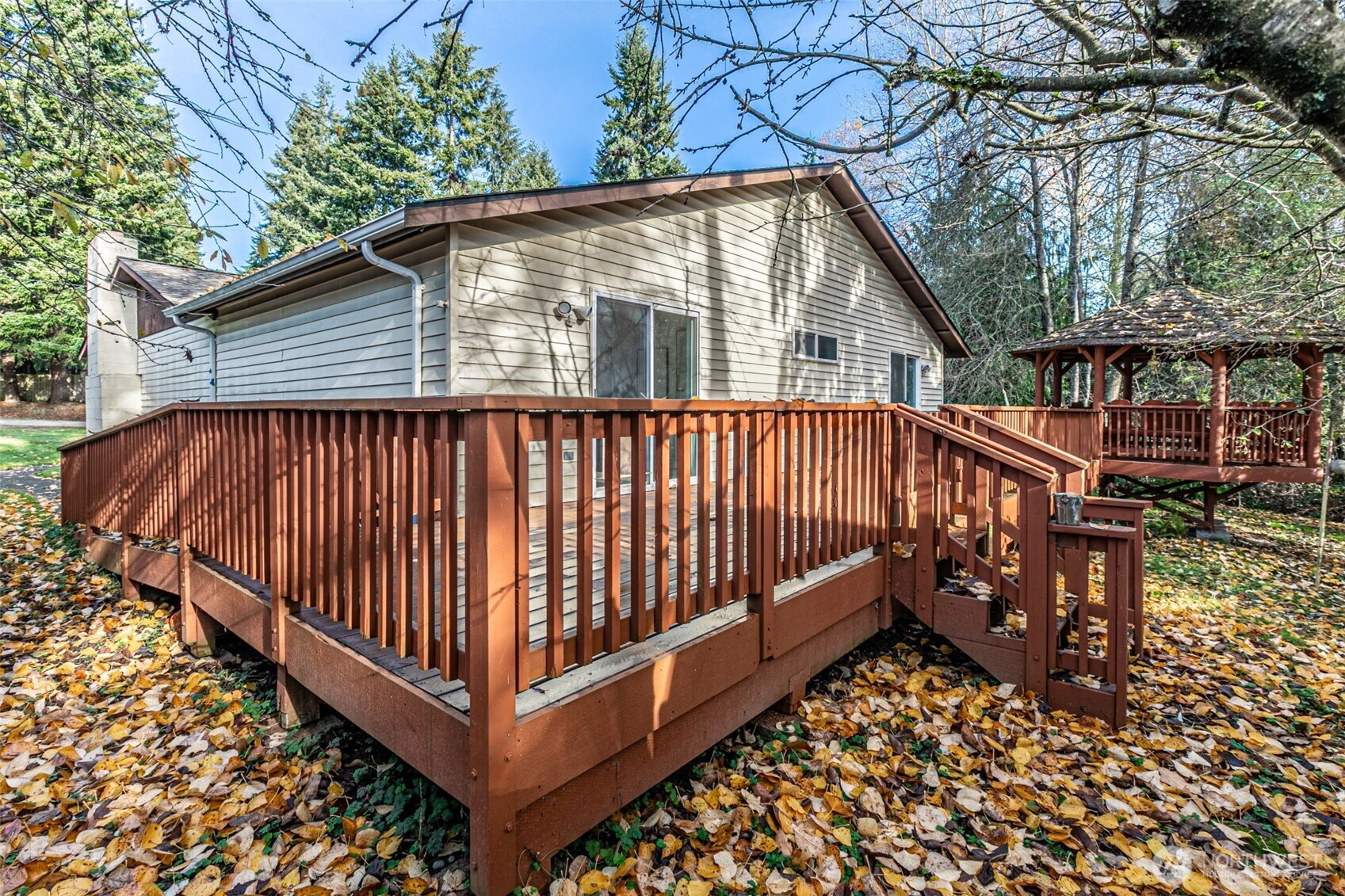 Beautifully updated 5-bedroom, 3.75-bath home featuring a spacious open-concept layout, new wood floors, and fresh interior paint. The fully remodeled kitchen offers quartz countertops, stainless steel appliances, and ample cabinet space. Large windows provide abundant natural light throughout the main living areas. Enjoy exceptional outdoor living with a large back deck and an impressive gazebo that seats up to 21. Move-in ready with generous bedrooms and multiple living spaces—perfect for functional living and entertaining.