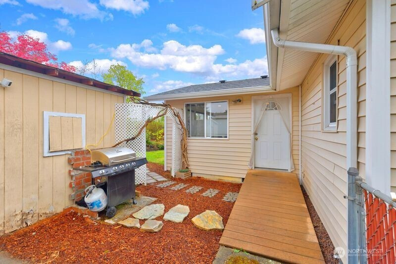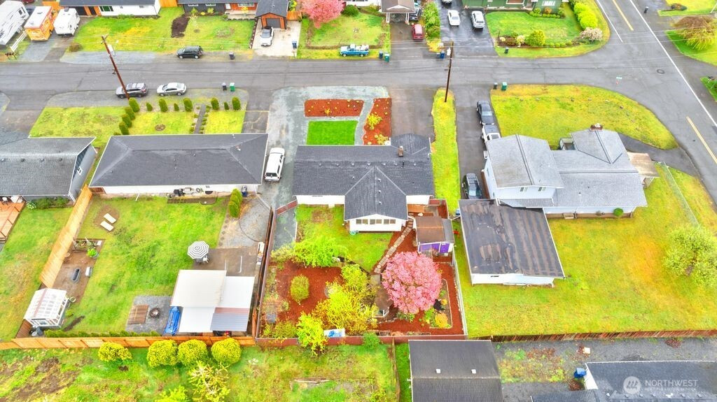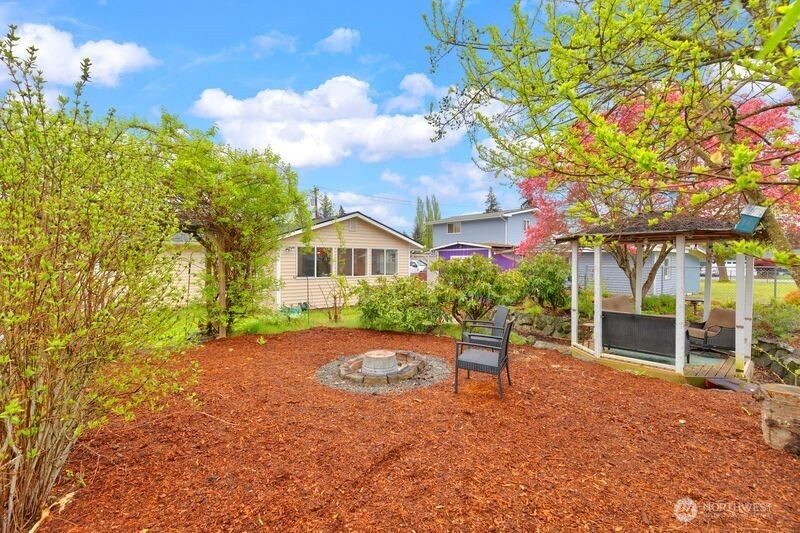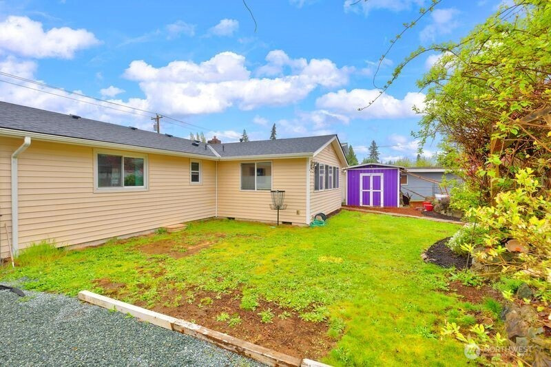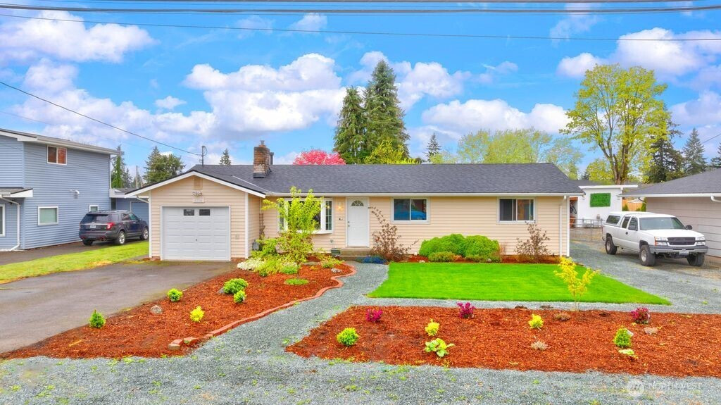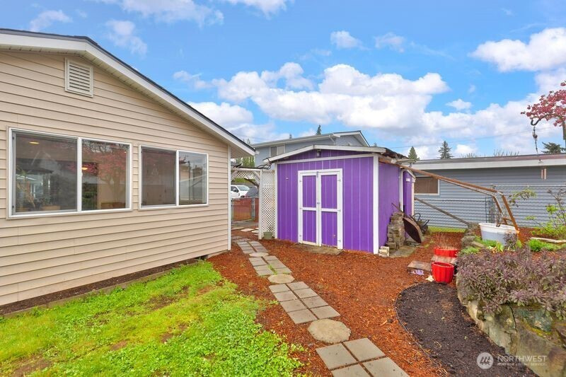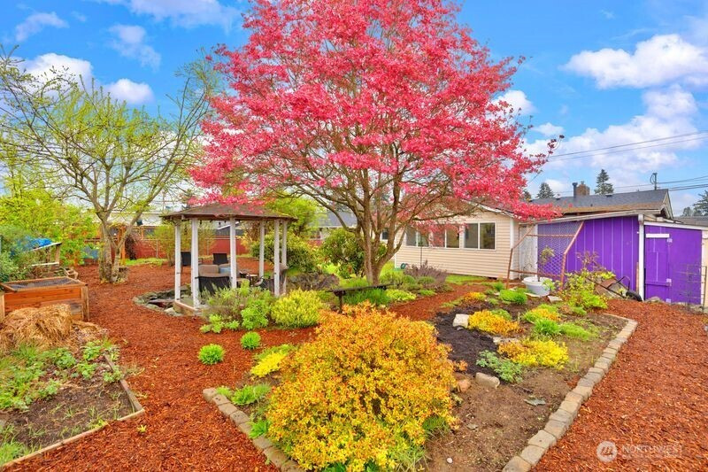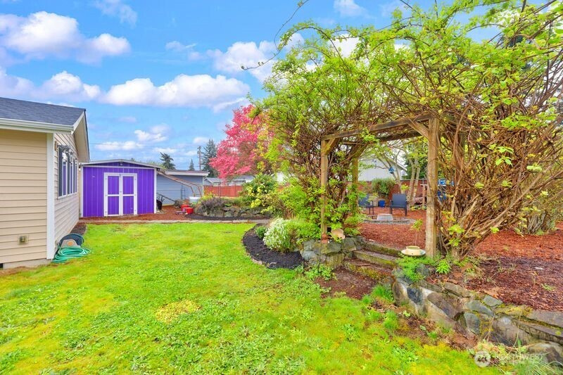 Nestled on a quiet, lightly traveled side street, this charming rambler features 3 bedrooms, 1.75 baths, and the comfort of natural gas heat, hot water, and a cozy gas fireplace for those chilly nights. Real walnut hardwood floors bring warmth and character throughout, complimented by pristine vintage details. The interior has been freshly painted, and a brand new roof installed in December 2025 adds peace of mind. With no HOA and RV parking, you'll enjoy extra freedom and flexibility. The expansive, fully fenced backyard is a true retreat. Ideal for entertaining or unwinding in the cabana of your own private oasis. or relaxing by the backyard fire pit. The garden is a standout, with an herb garden, strawberries, two varieties of kiwi, grapevines, blueberries, rhubarb, and dedicated vegetable beds. Conveniently located near schools, shopping, restaurants, parks, and I-5, this home offers comfort, charm, and convenience. Don't miss the opportunity to make this home your own!