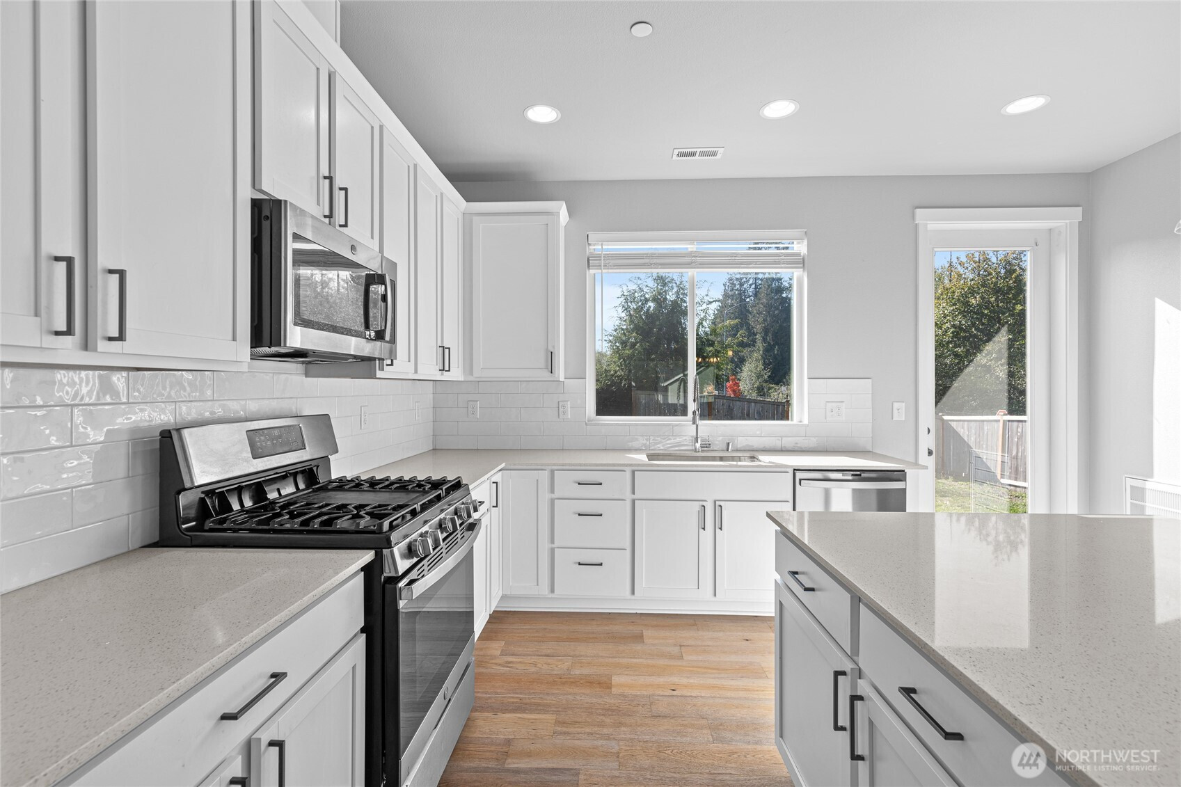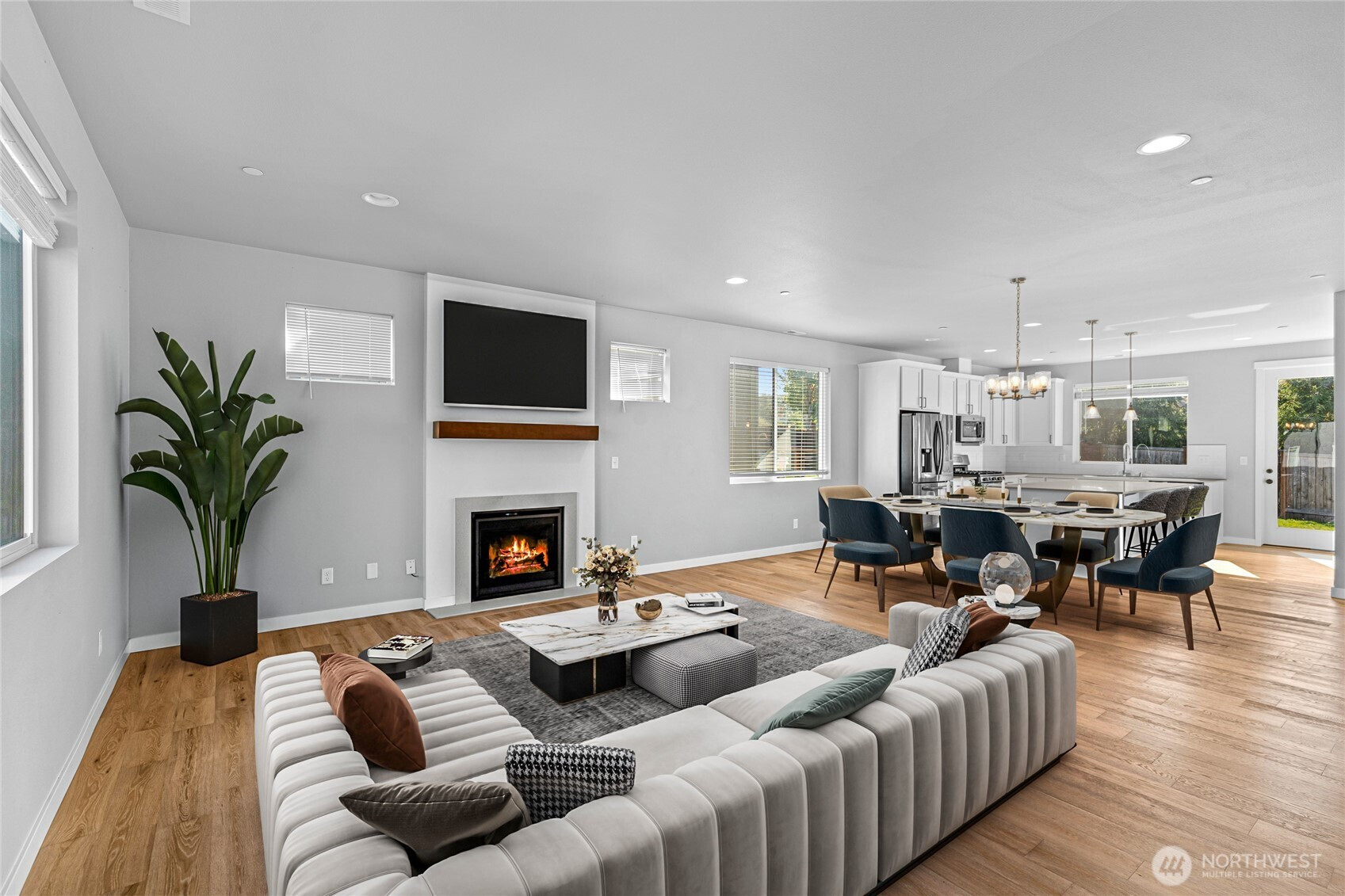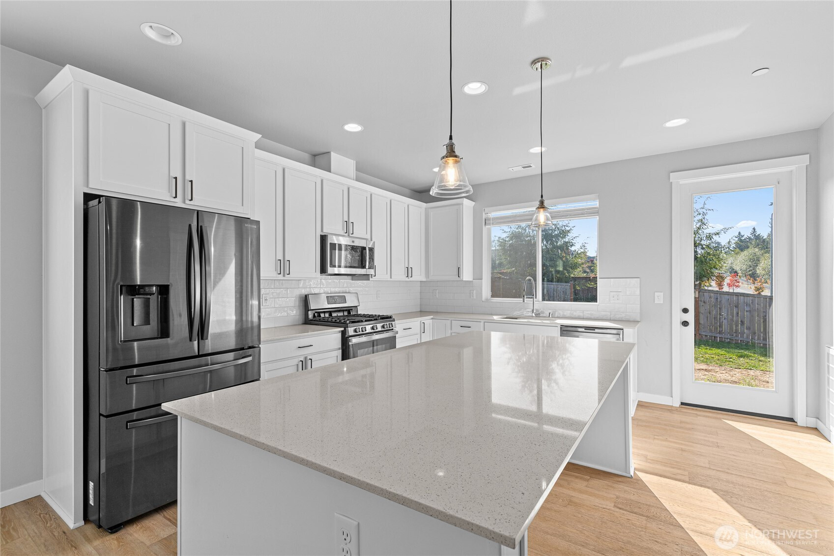 (503) 893-8874Updated Price! Experience modern living in this beautifully designed home featuring expansive main-level living and an open-concept layout ideal for today’s lifestyle. The chef’s kitchen boasts quartz countertops, stainless steel appliances, and a large island flowing into the dining area, great room with gas fireplace, & covered deck. A spacious bonus room/office offers flexibility. Upstairs, the luxurious primary suite includes a spa-inspired bath, walk-in closet, and views of Mt. Baker. The lower level features a private secondary suite. Built in 2022 with high ceilings, central A/C, and an oversized 2-car garage with abundant storage, all on a corner oversized lot with a fenced backyard—perfect for comfort and everyday living.