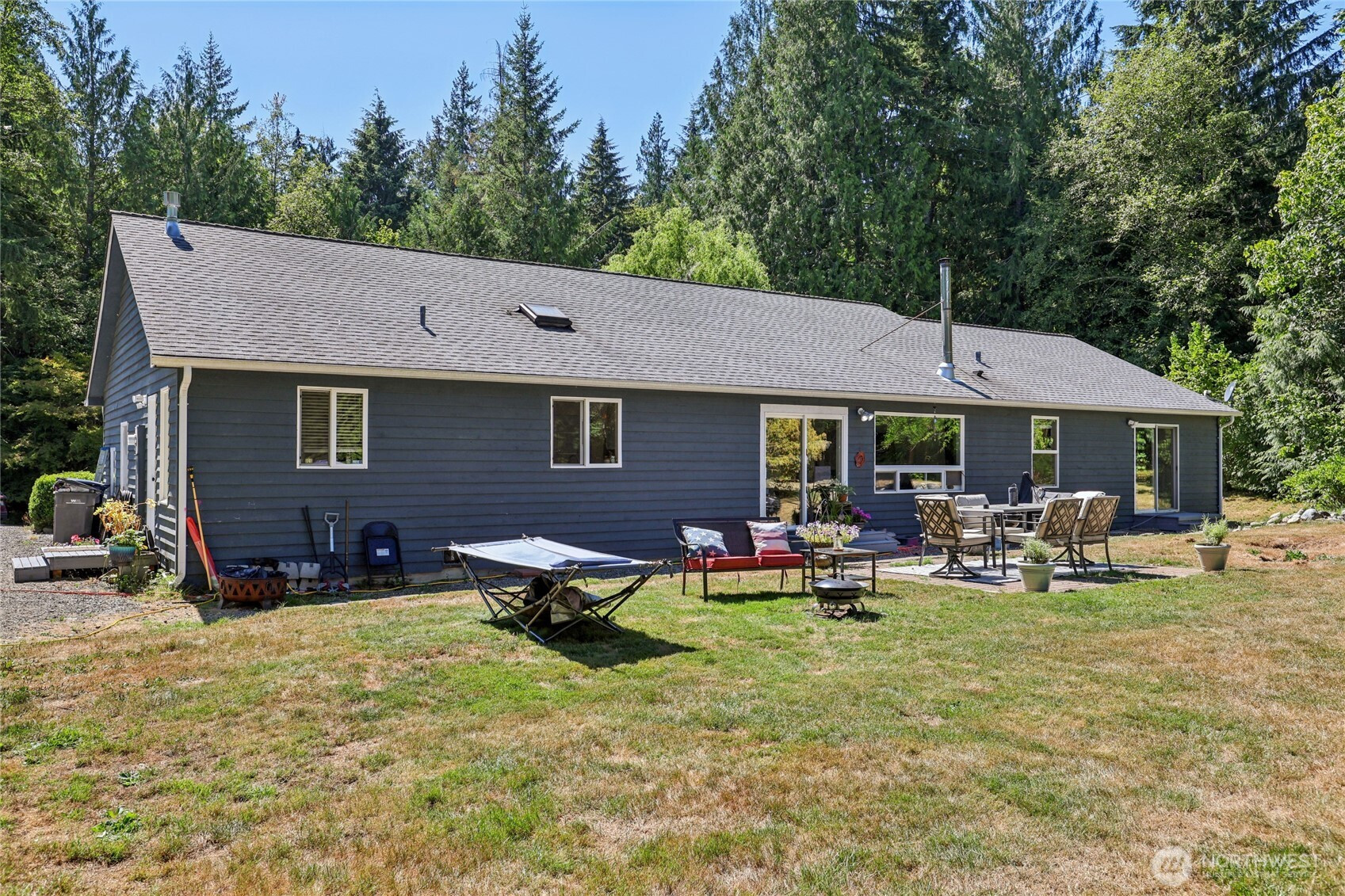 Experience peaceful country living in the sought-after Meadow Lake community. This custom, light-filled home on 5.28 park-like acres offers manicured landscaping, wooded privacy, fruit trees, and an organic garden. Vaulted ceilings and oversized windows showcase views of your park-like setting, while the bright kitchen features ample storage, gas range, and new appliances. The primary suite has a walk-in closet and a private bath. Relax on the front porch swing, entertain on the back deck, stay cozy by the wood stove, and take advantage of RV parking with hookups, plus community beach rights and boat launch. The property is also along the Snohomish School District bus route, and owners have the option to enroll in that district.