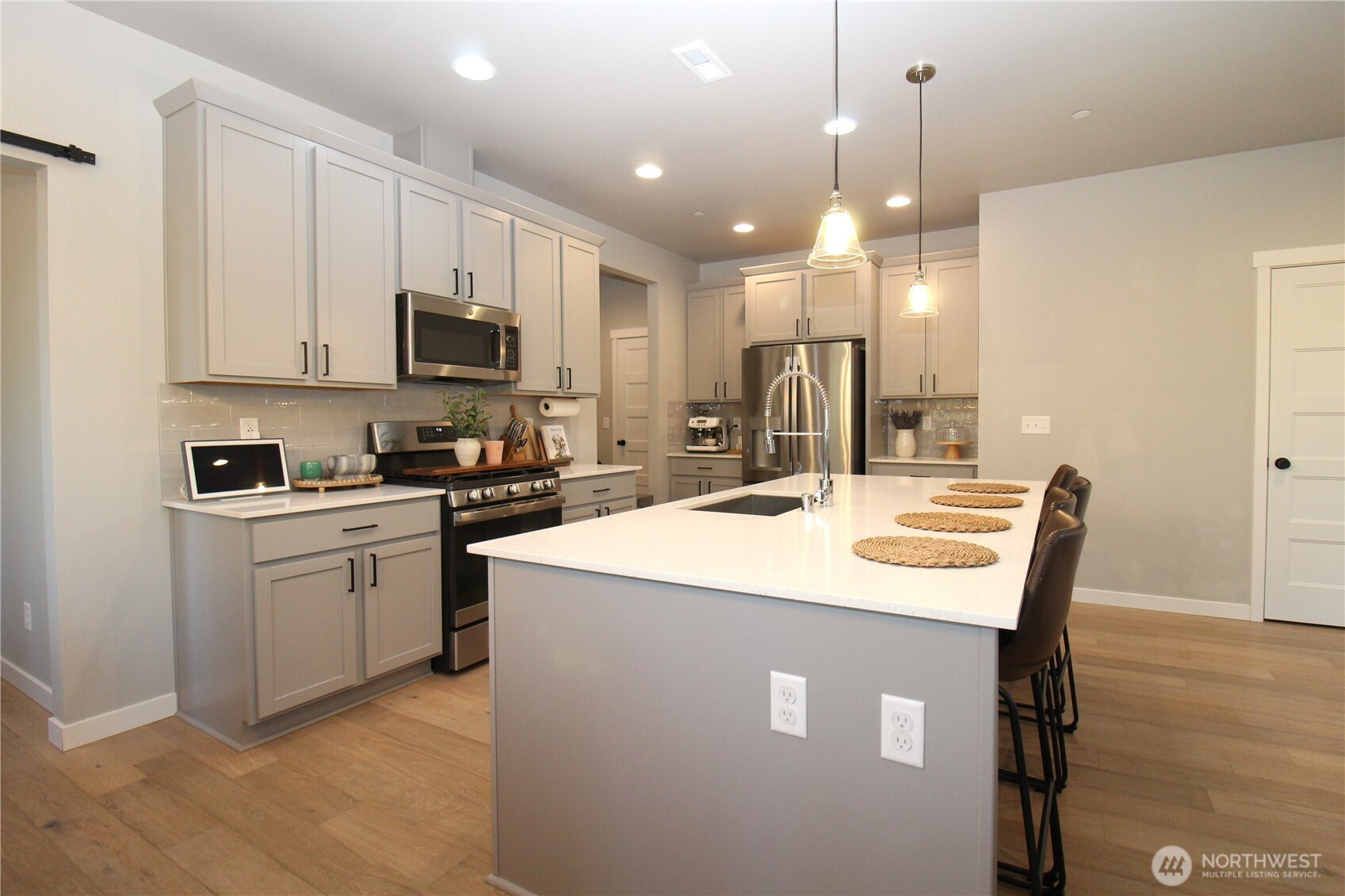 (503) 893-8874SIMPLY BEAUTIFUL modern style corner lot home in new condition overlooking a nicely landscaped Community park with Cascade Mountain and territorial views that provide relaxing scenery to enjoy. This spacious 5 bedroom, 3.5 bath home shines with natural light filling the home. Enjoy lounging on the main level family room with a gas fireplace next to a spacious cook's kitchen w/quartz counters & island, SS appliances, lots of cabinets, walk-in pantry, dining area, and a convenient pocket office with barn door just off the kitchen. This 3265 sqft floorplan offers an upstairs loft area plus a lower level private suite for guests or entertaining with an oversized rec room, bedroom w/walk-in closet & full bath. The large primary bedroom upstairs will pamper you with "Two" walk-in closets, a Spa-style bathroom w/dual showerheads & soaking tub. The home also features AC/Heat pump for year-round comfort, Tankless water heater, W/D in upstairs laundry/utility room, elegant engineered hardwood, luxurious vinyl plank flooring, window blinds & screens, and Google Nest Yale doorbell and doorlock. The covered patio & deck overlook a fully fenced yard with gate. Close to shopping with quick access to Hwy 9 & I-5. This home is move-in ready!