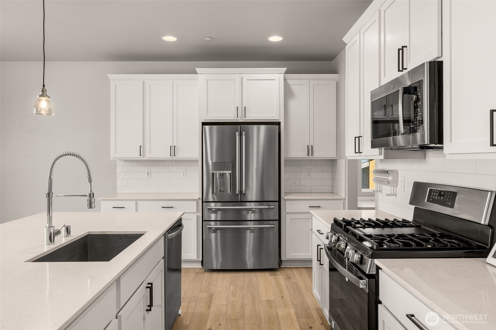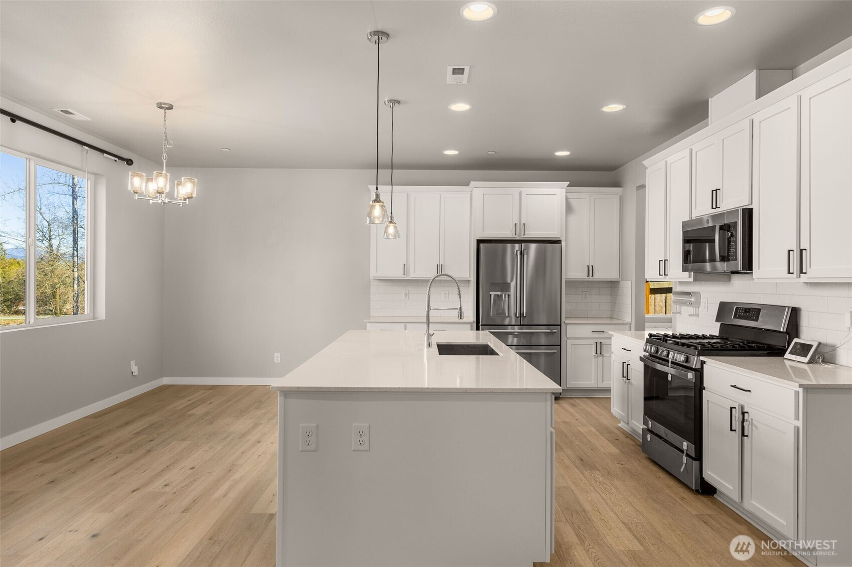 Tucked inside the highly sought-after, peaceful Bella Cresta neighborhood, this five-bedroom home sits on one of the community’s premier lots. Completed just two years ago, the property offers a fully enclosed backyard plus access to the neighborhood’s private park featuring a sport court & picnic area. The lower level is thoughtfully finished, creating ideal space for a media lounge, game area, or private guest retreat complete with its own living space, walk-in closet & full bath. Upstairs, a spacious loft, pocket office & additional rec room provide the flexibility today’s lifestyle demands. The primary suite delivers a spa-like experience with dual showerheads & a soaking tub designed for true relaxation. Contemporary details stand out throughout with quartz counters, tile backsplash, hardwood flooring & a gas fireplace. A high-efficiency heat pump provides reliable year-round comfort. Enjoy seamless indoor-outdoor living with both a covered patio & deck. Conveniently located near Highway 9 & I-5, this home offers modern comfort in a prime setting.