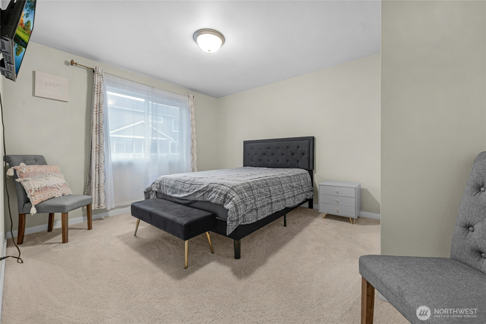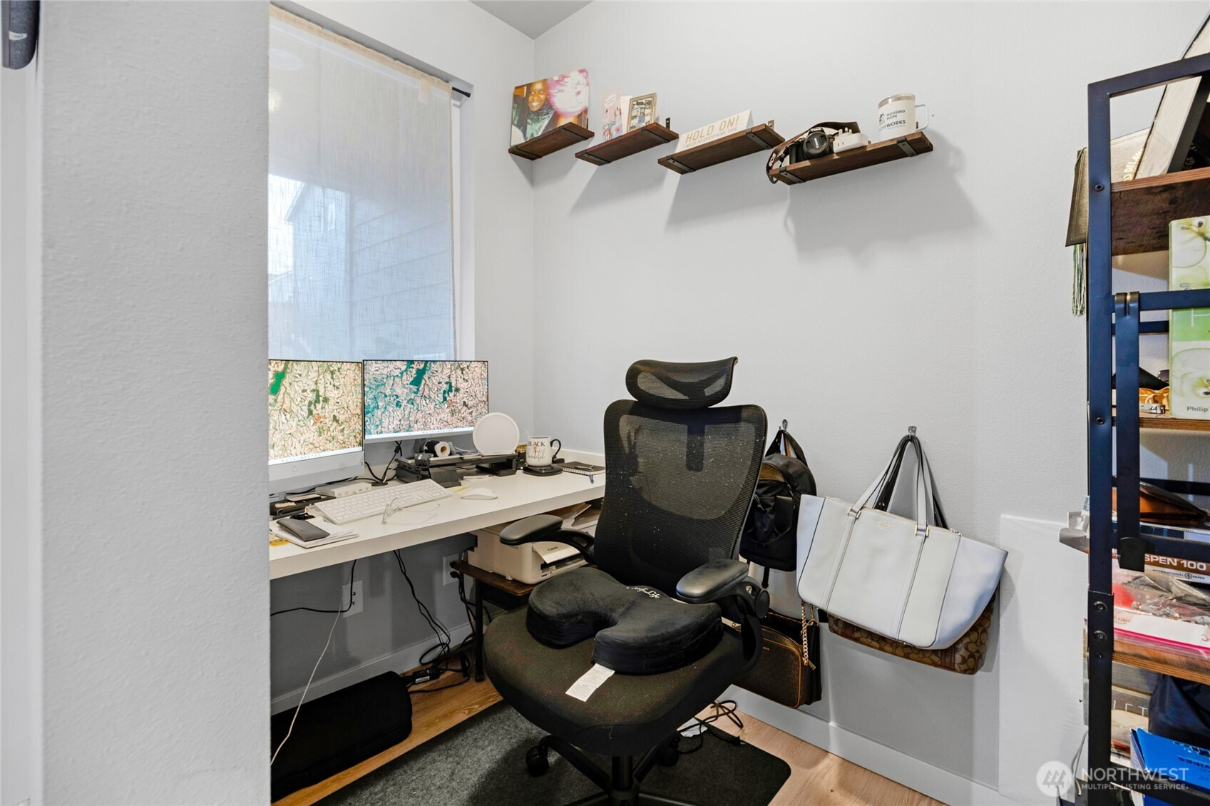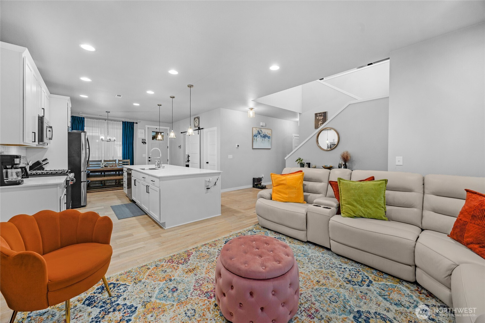 Welcome to Bella Cresta — Beautifully designed 2,447 sq ft home offering comfort, flexibility & modern style. This 4-bed, 3 bath home features a stylish kitchen with quartz countertops, stainless steel appliances, and a large center island, seamlessly flowing out into the living area with stunning hardwoods. Bedroom on the main, right next to a 3/4 bath and a pocket office. Upstairs, a massive primary suite, two addtl bedrooms + a versatile loft add flex living space. Covered porches for easy indoor-outdoor living. Modern comforts include an energy-efficient heat pump and central AC (even a mini split in the garage!) while being close to shopping, dining & parks. Double parking on both sides of the home for your convenience. Welcome home!
