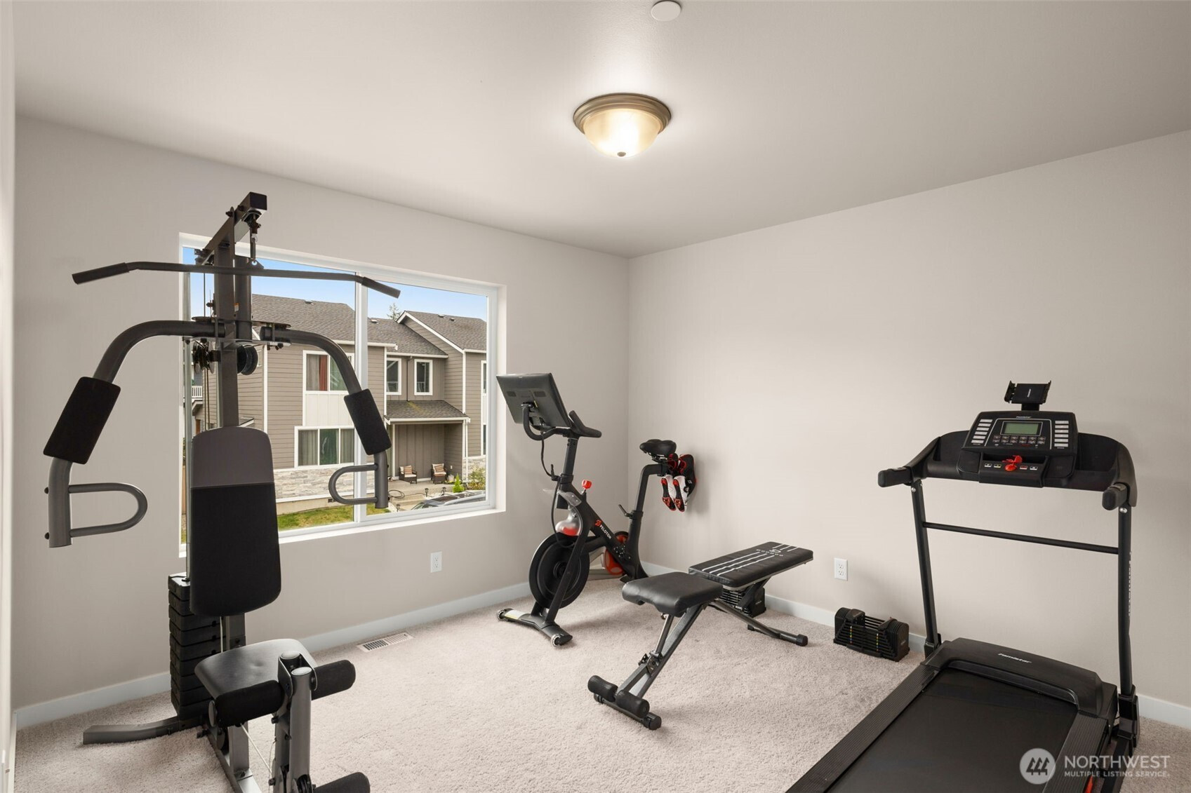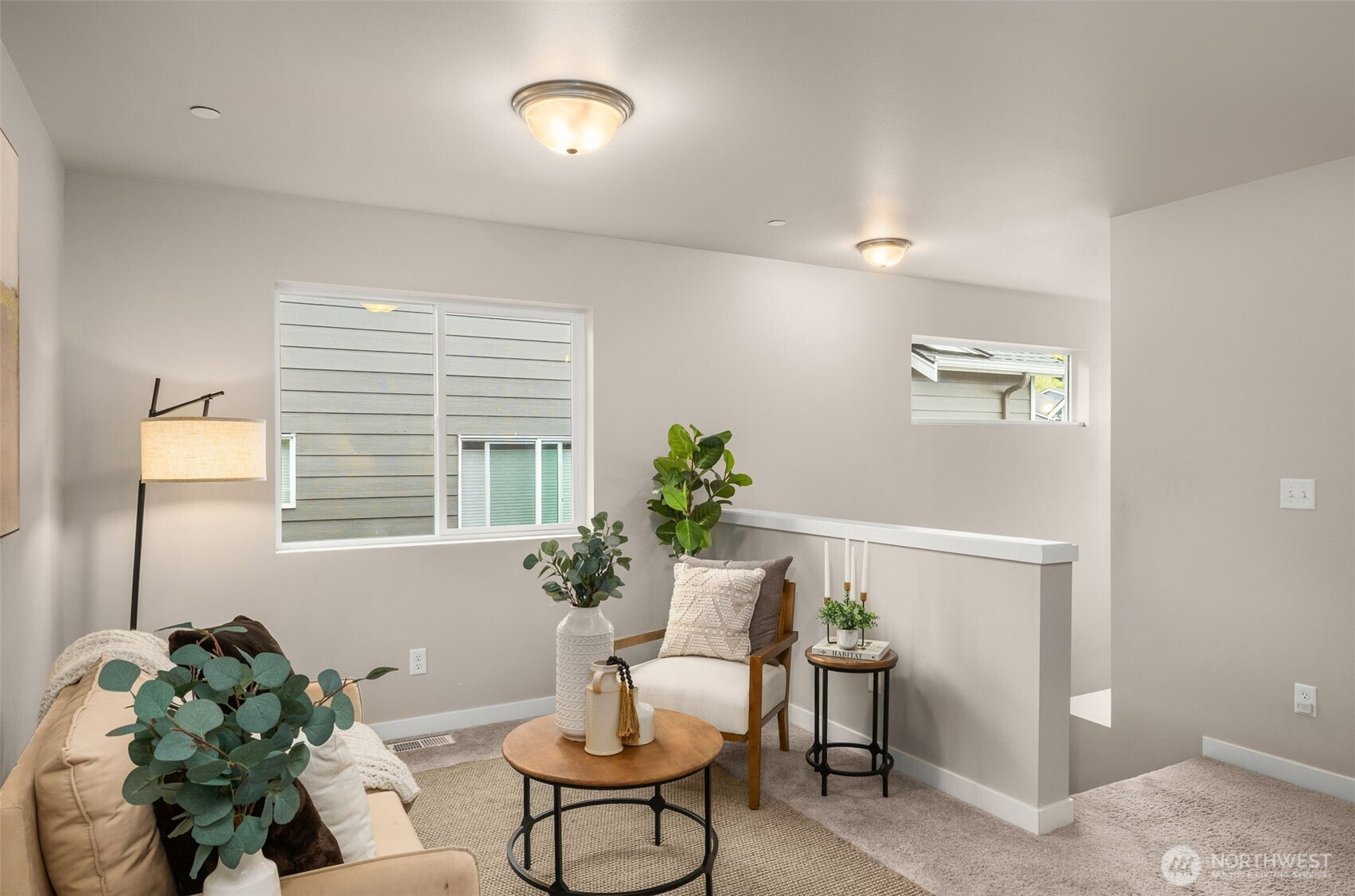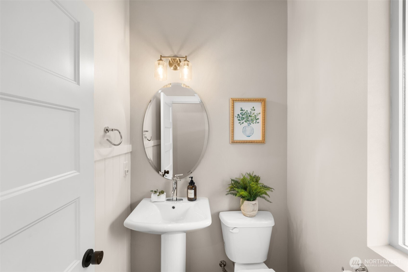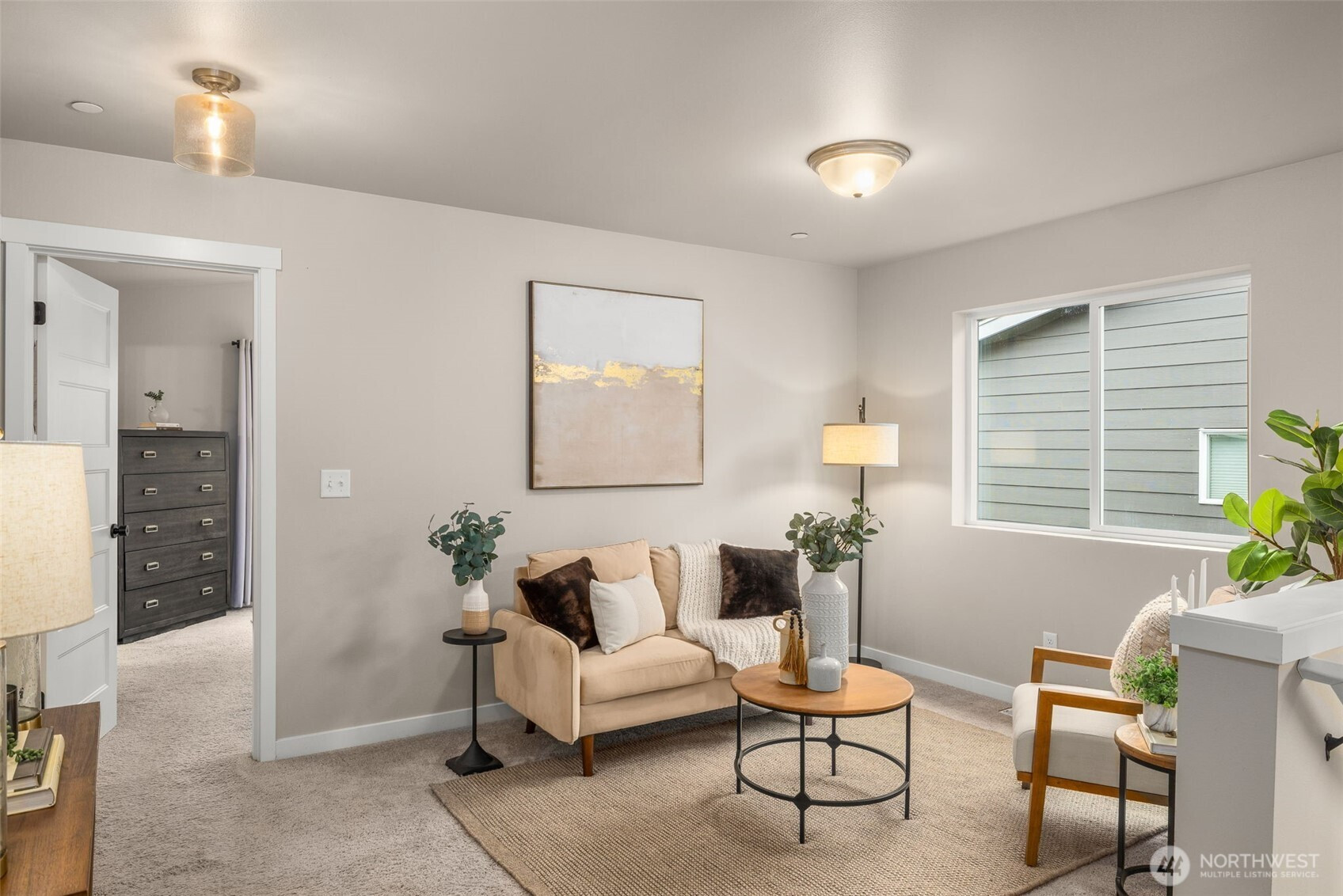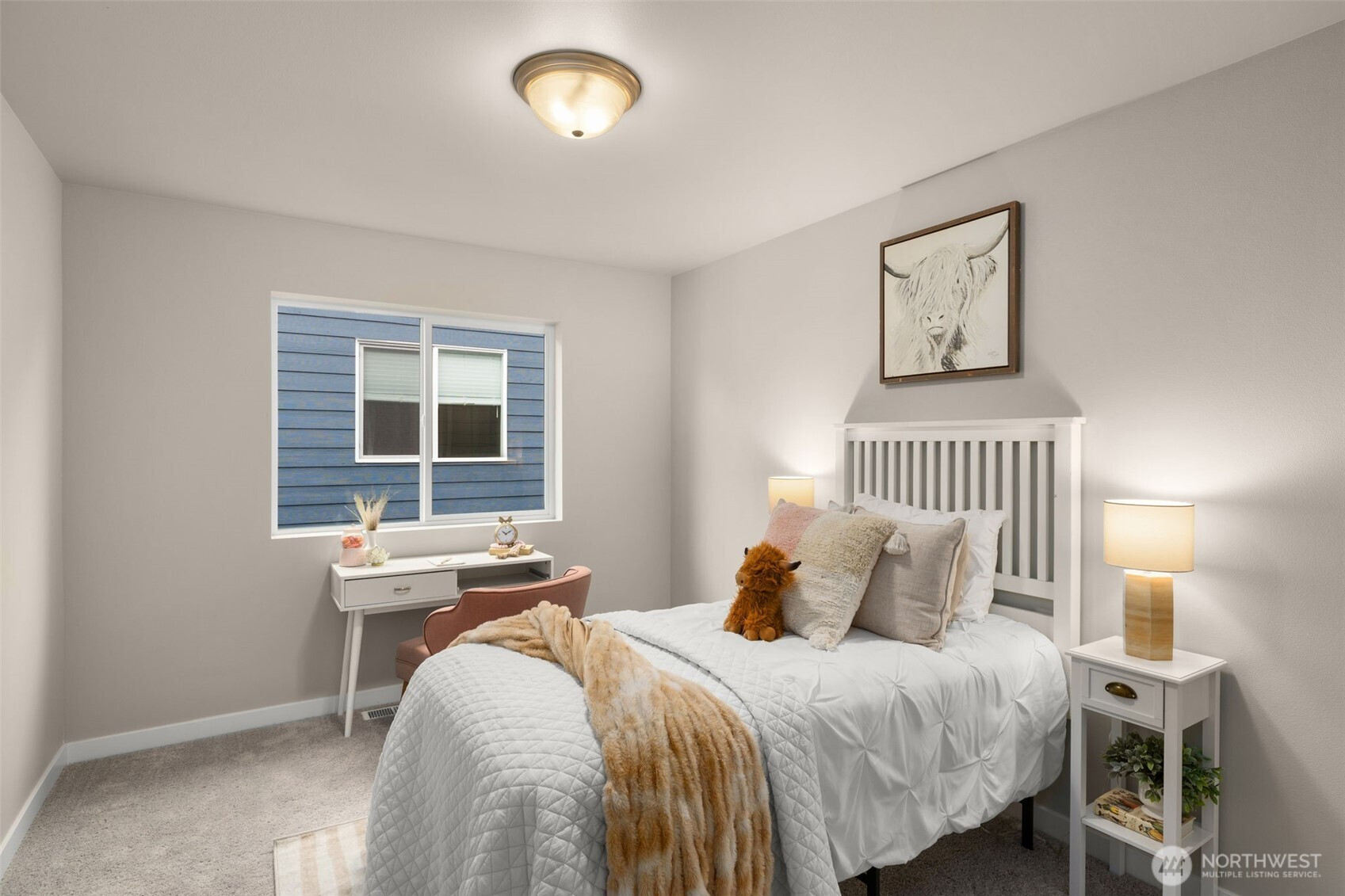 Backing a serene greenbelt in Bella Cresta, this stunning 2 year old, 5BR/3.5BA home blends modern style with light-filled, spacious living & family-friendly design. Open main level features hardwood floors, quartz kitchen with tile backsplash & pantry, dining area, and cozy gas fireplace. Finished basement w/ living area, full bath & walk-in closet is perfect for guests, movie nights, or a home office. Loft, rec room & pocket office offer flexible space. Spa-style primary bath w/ dual showerheads & soaking tub. Covered patio & deck overlook fully fenced yard. Community park, sport court, picnic area & walking paths. Heat pump ensures year-round comfort. Quick access to Hwy 9 & I-5. Style, space & lifestyle just waiting for it's new owner!