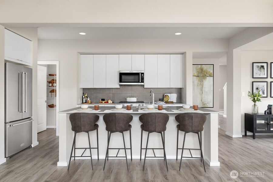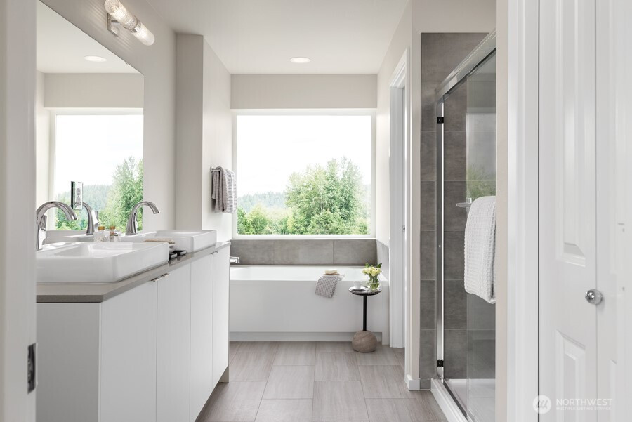 Introducing the Meridian. An Essence home by MainVue –this contemporary home has a welcoming Foyer with timber-look flooring that leads to the heart of the home: a modern Kitchen with a supersized Quartz-topped island. A convenient Home Office is positioned near the Kitchen, and the Dining area opens to a private Patio through a sliding glass door. Upstairs, a central Bonus Room with plush carpeting is placed near the Utility Room, Hall Bath, and three Secondary Bedrooms. The Primary suite has an expansive walk-in closet, and the Bathroom has Luxury Vinyl Tile Flooring and a 70” semi-frameless walk-in shower, dual vanities, and a deep soaking tub! Welcome home!