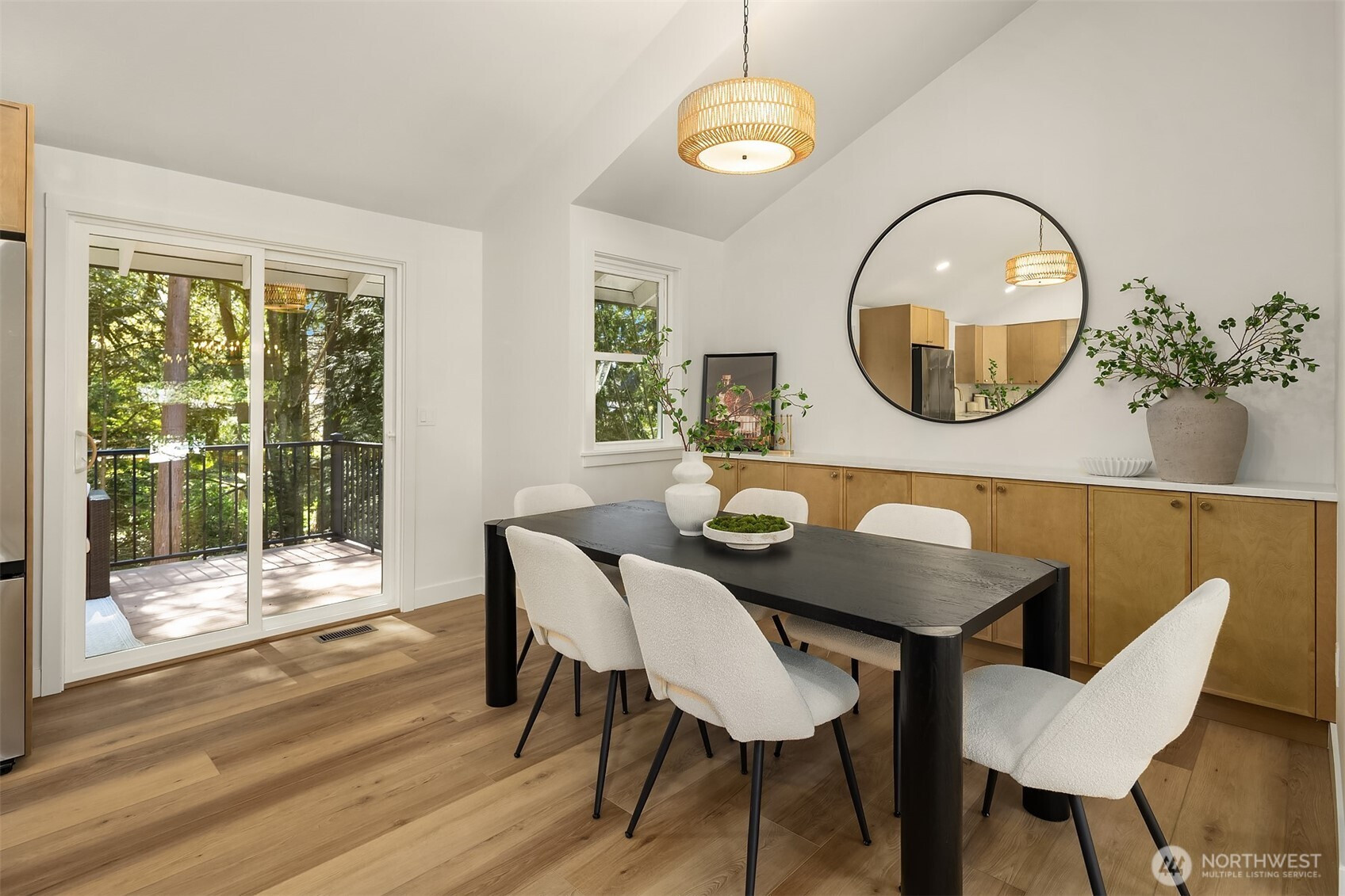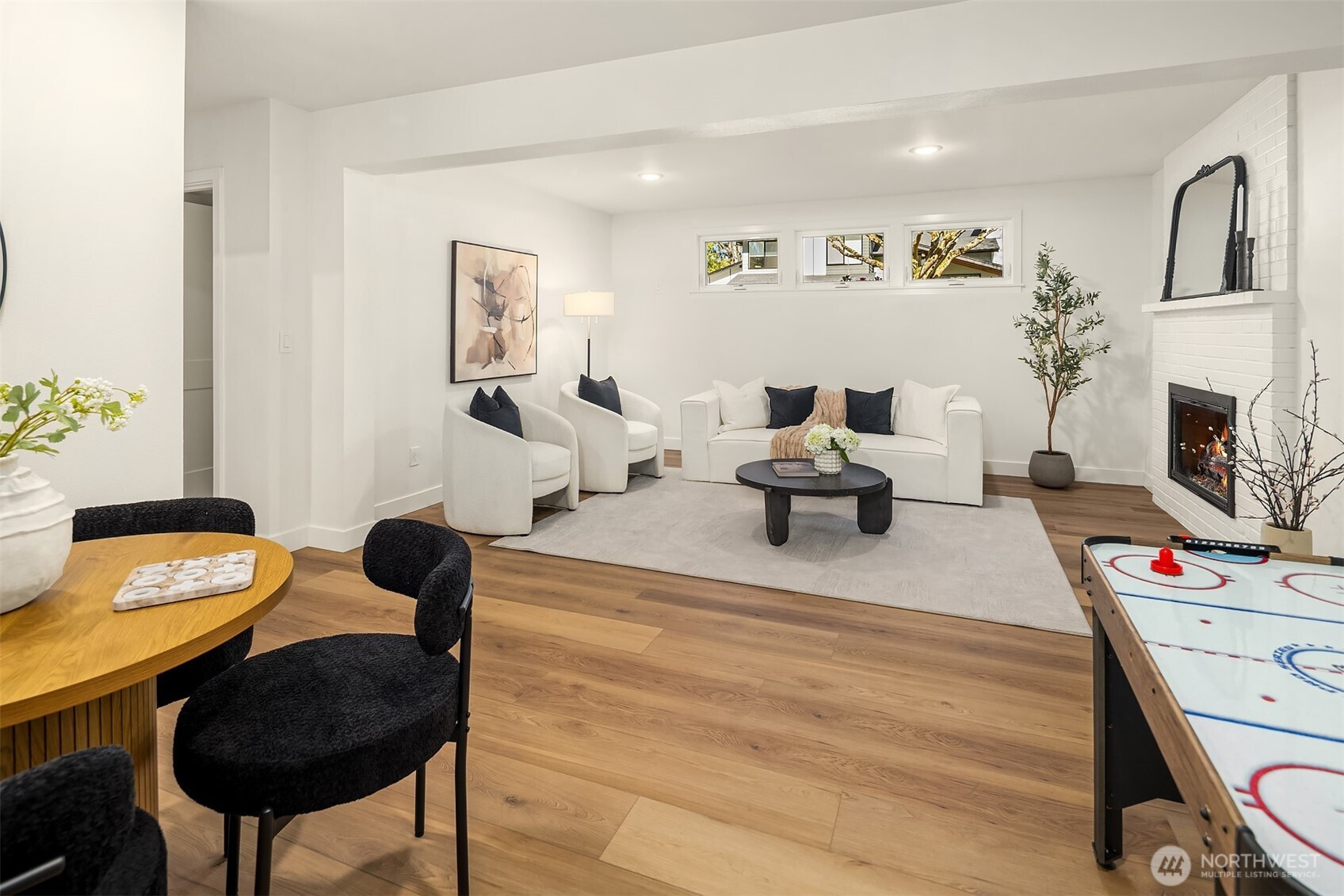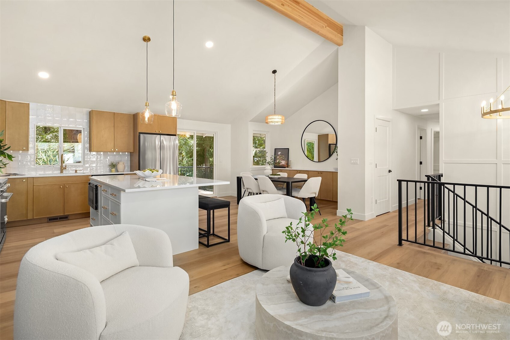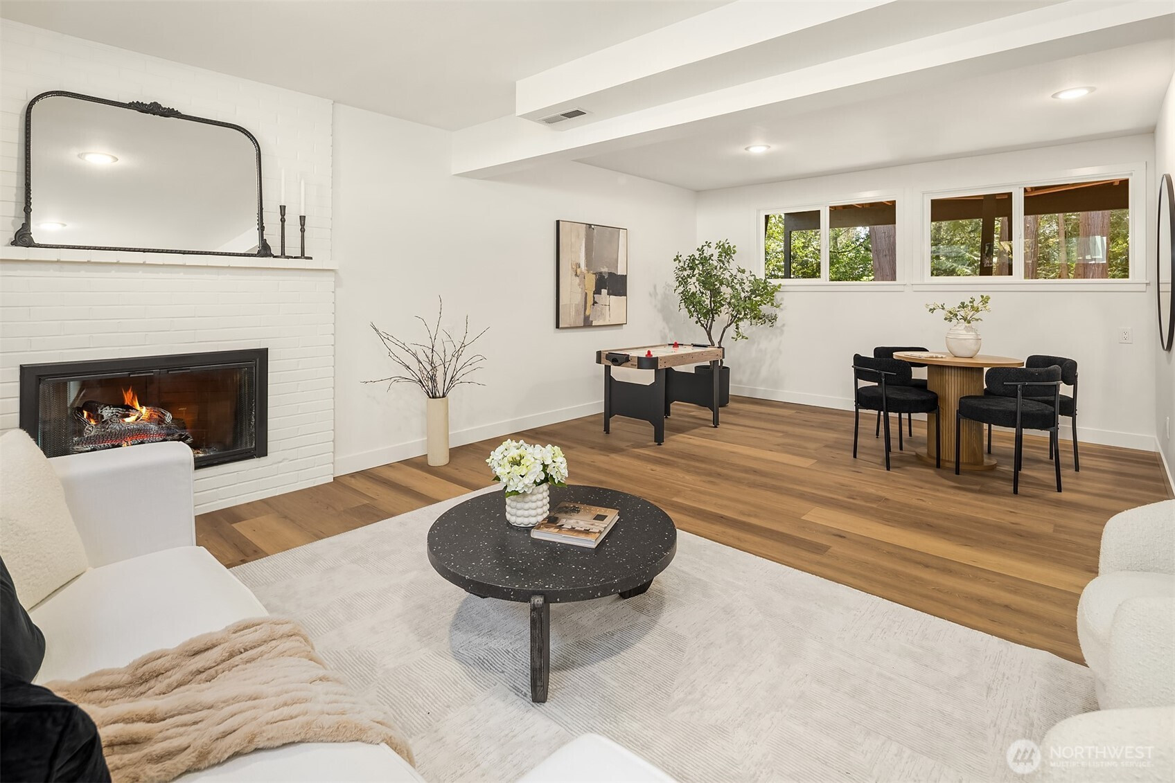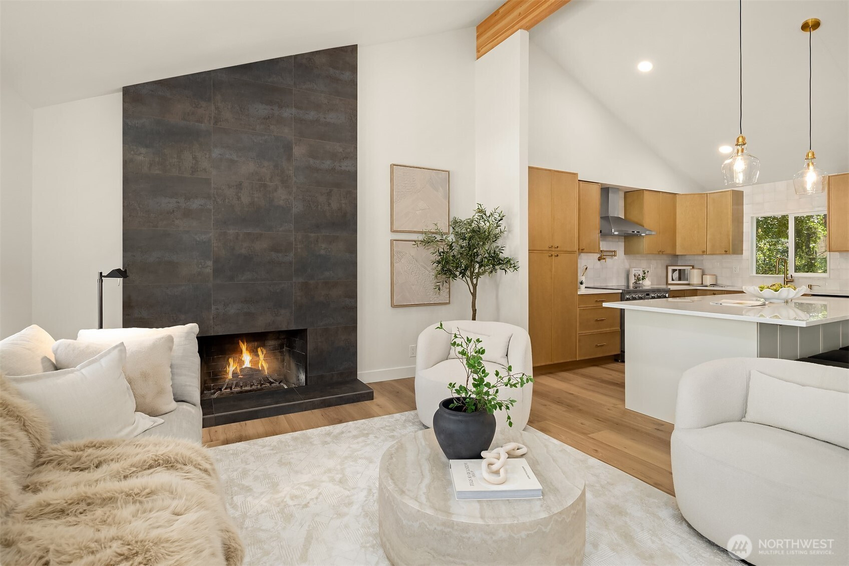 Beautifully reimagined Edmonds home just minutes from downtown and the waterfront. Thoughtfully updated throughout, this light-filled residence blends modern design with timeless comfort. Vaulted ceilings and expansive windows create an airy, open feel, while wide-plank flooring and designer finishes elevate every space. The stunning kitchen features custom cabinetry, sleek surfaces, premium appliances, and an oversized island, seamlessly connecting to the main living area anchored by a striking fireplace. Spacious bedrooms and spa-inspired baths offer a refined retreat, highlighted by clean lines and high-end fixtures. Set on a lush, landscaped lot surrounded by mature trees, the outdoor spaces provide both privacy and tranquility. Ideal location near downtown Edmonds shops, restaurants, parks, and waterfront amenities, with easy access to commuting routes. Turnkey, stylish, and perfectly positioned, this is Edmonds living at its best.
