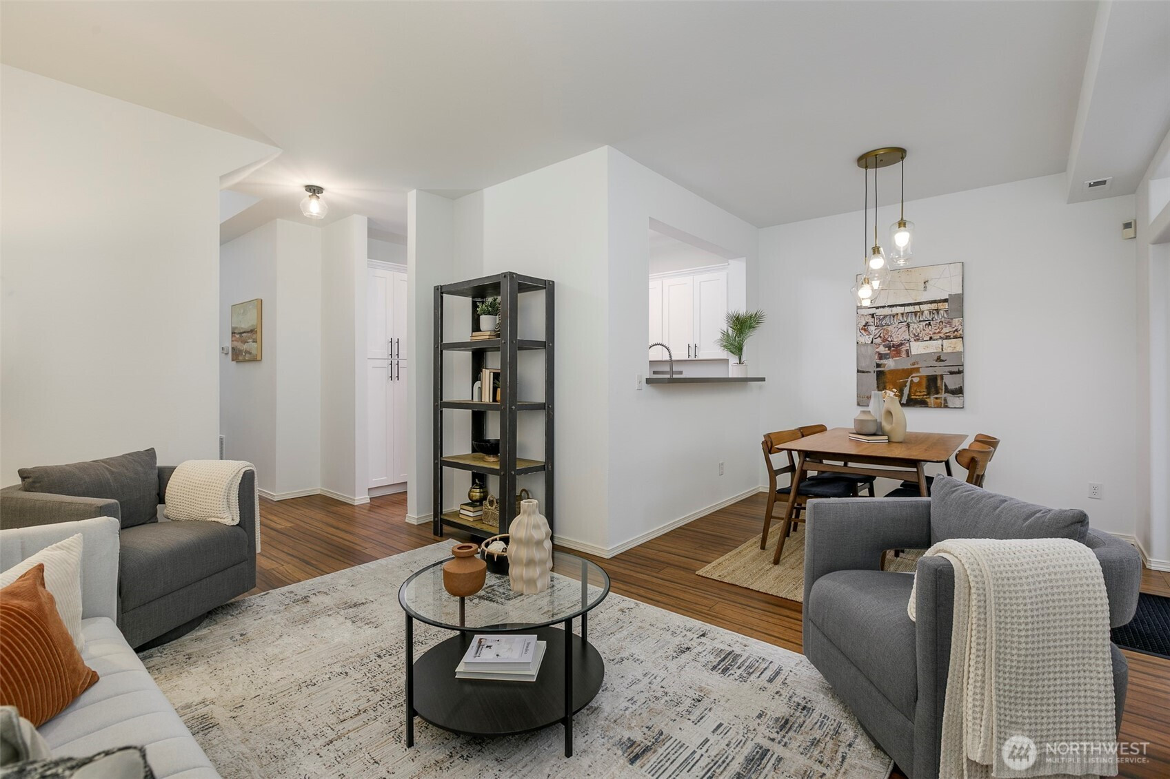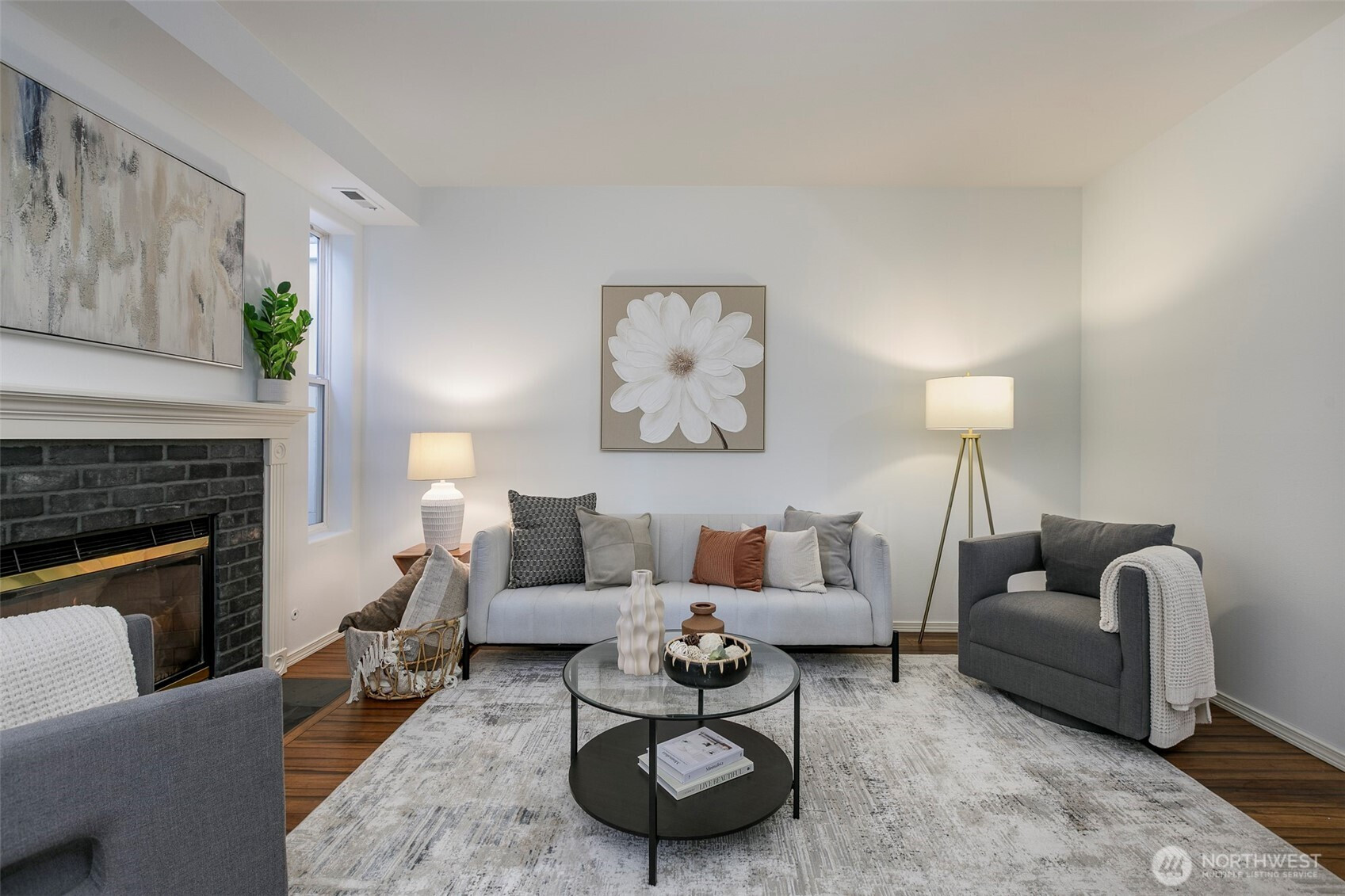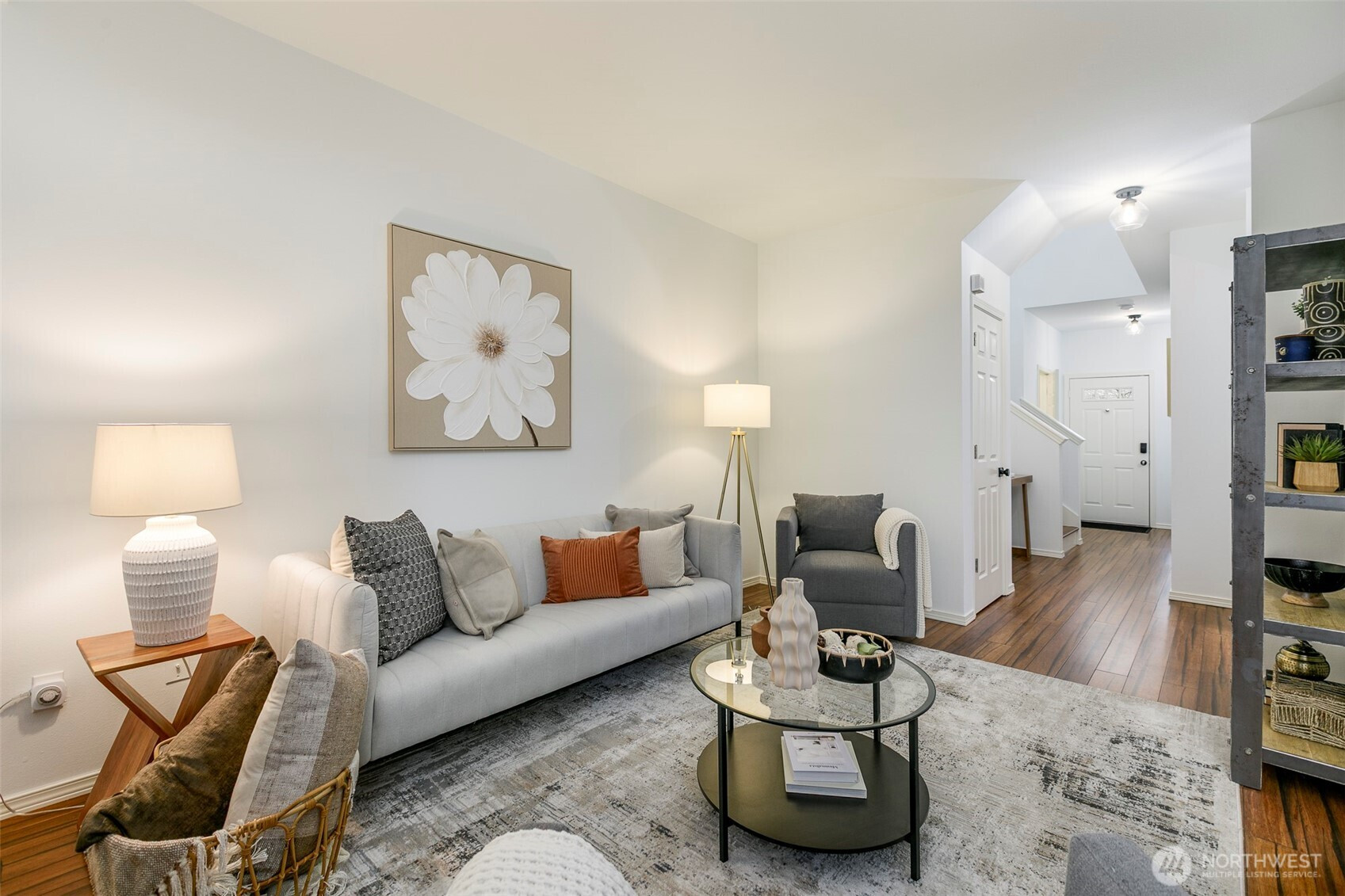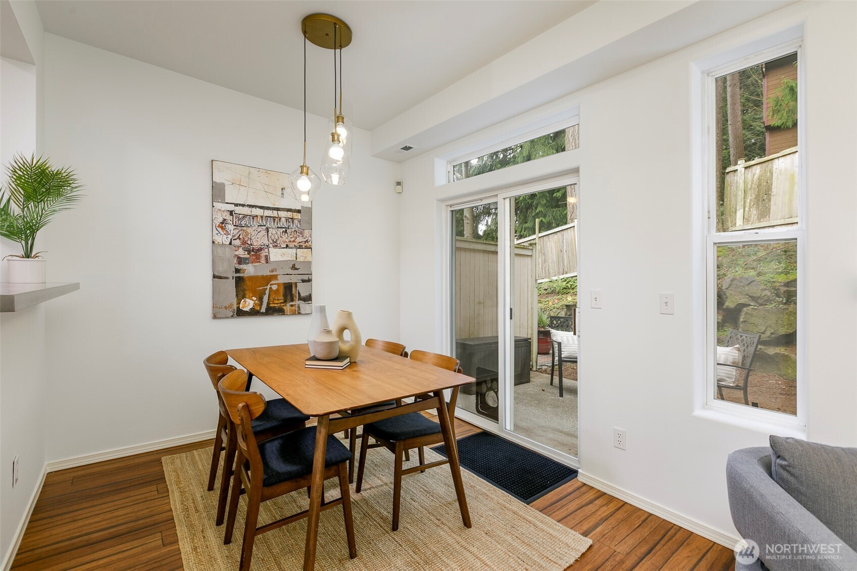 From the moment you step inside, dramatic ceiling height creates an immediate sense of openness, allowing natural light to move effortlessly throughout the main level. The recently updated kitchen features refreshed finishes & modern touches, opening seamlessly into the dining area & expansive living room anchored by a cozy gas fireplace. A convenient half bath adds functionality for guests, while a sliding glass door extends the living space to a private patio, perfect for morning coffee or dining alfresco! Upstairs, a striking skylight crowns the stairwell, bringing in abundant natural light & adding architectural character that sets this home apart. The upper level includes a generous primary suite with walk-in closet & en-suite bath, a 2nd bed, full bath, laundry closet, & an open loft ideal for a home office or additional flex space. An attached 1-car garage plus driveway parking provides everyday convenience. Recent improvements include fresh interior paint throughout, plush carpet in both beds, laminate tile flooring in both upstairs baths & the laundry closet, a new toilet in the primary bath, & a newly installed gas water heater. Seller-provided inspection report & HOA resale documents are available for buyer review. Ideally located just minutes from downtown Edmonds, its waterfront, dining, shops, & commuter routes.